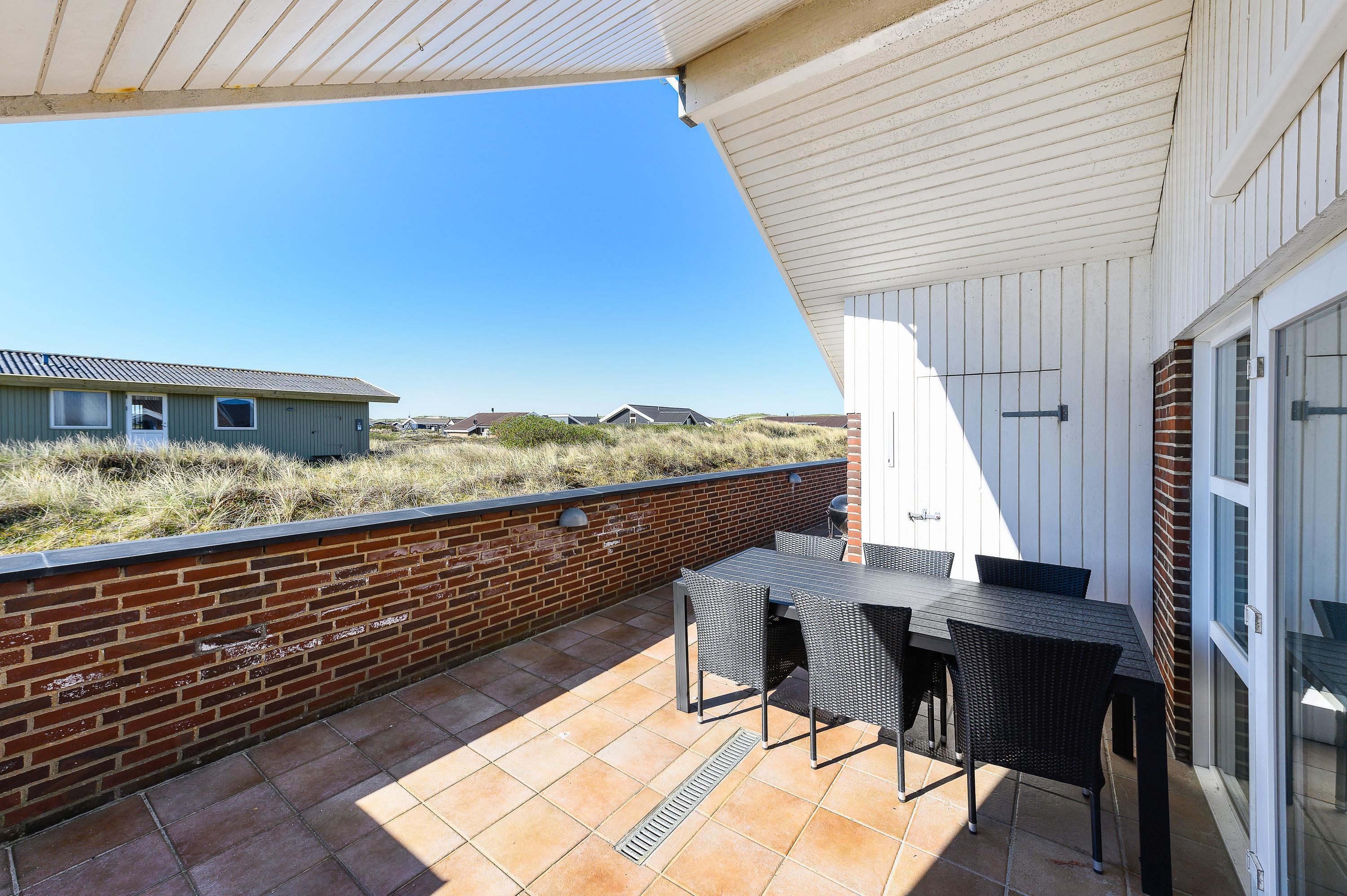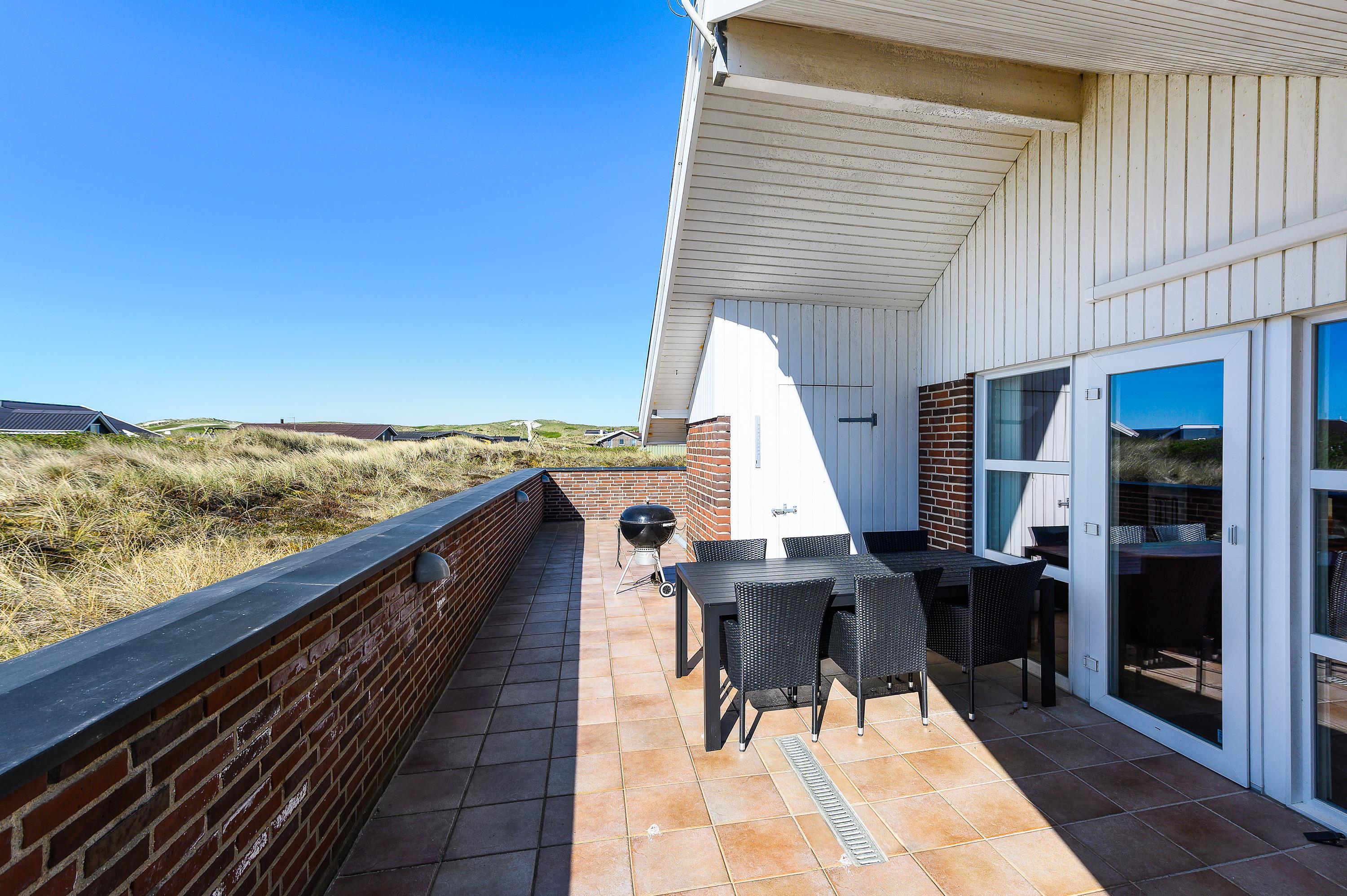 Om aftenen kan aftensmaden tilberedes på grillen, og familien kan samles omkring bordet til fællesspisning. Måske I laver en familiedyst og finder årets ferievinder? Der er i hvert tilfælde lagt op til fornøjelige timer udenfor på en dejlig lun sommeraften. Måske I bare sidder og nyder lyden af Vesterhavets brusen med et koldt glas vin i hånden.