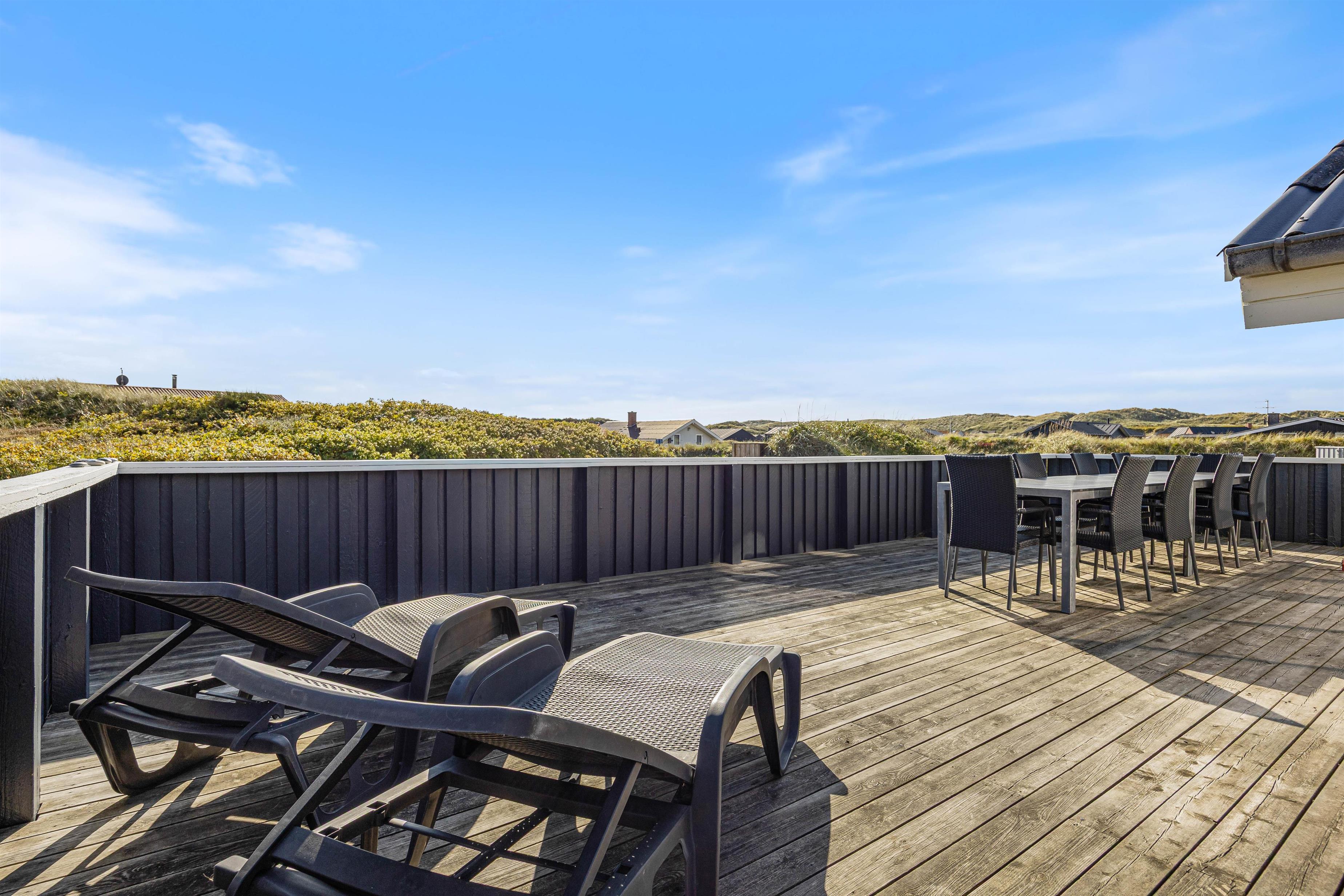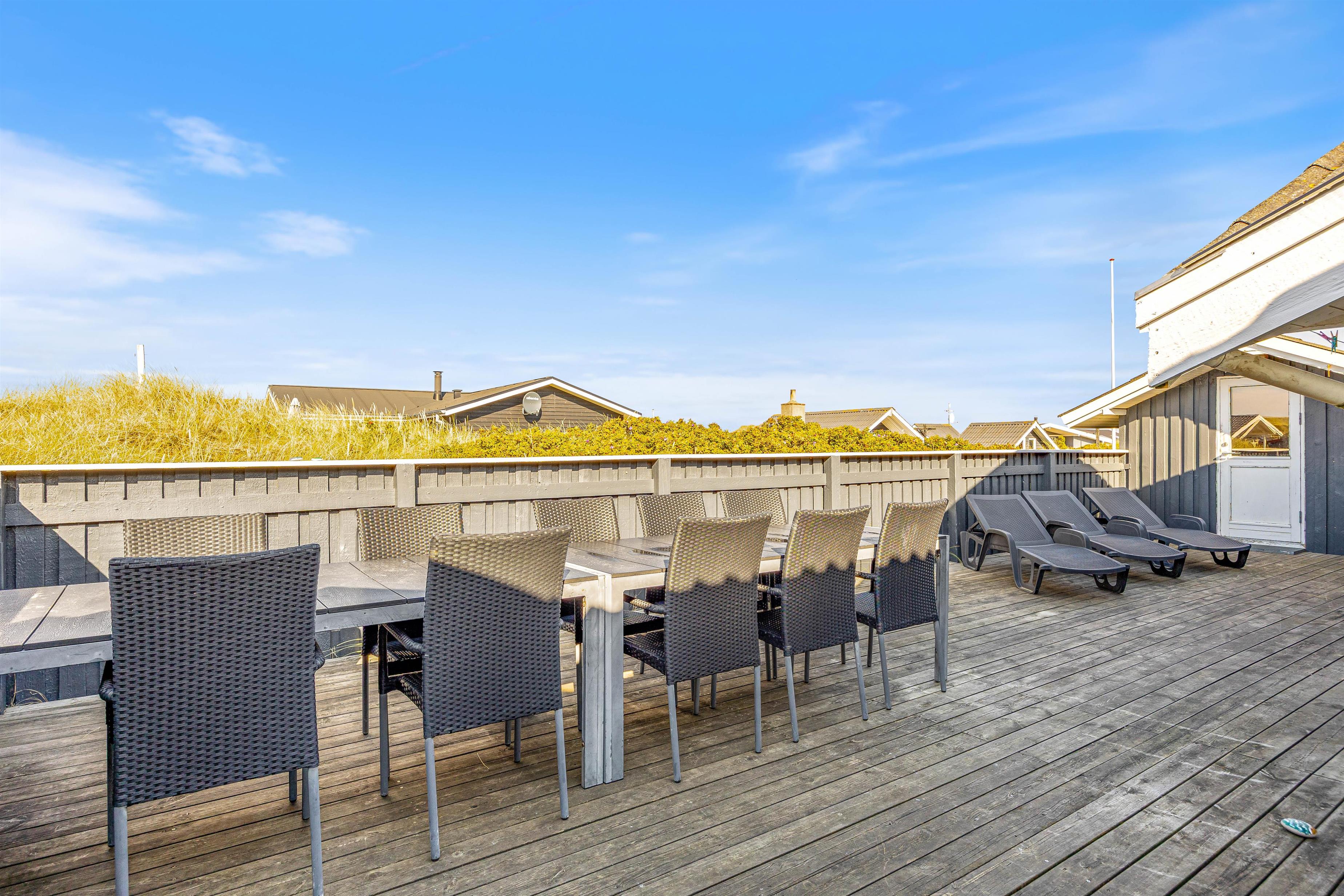 Nyd ferien på den store lukkede sydøst vendte terrasse. Slap af i liggestolene, luk øjnene og bare nyd solen og den friske luft, mens børnene spiller bold, gynger eller leger i sandkassen.