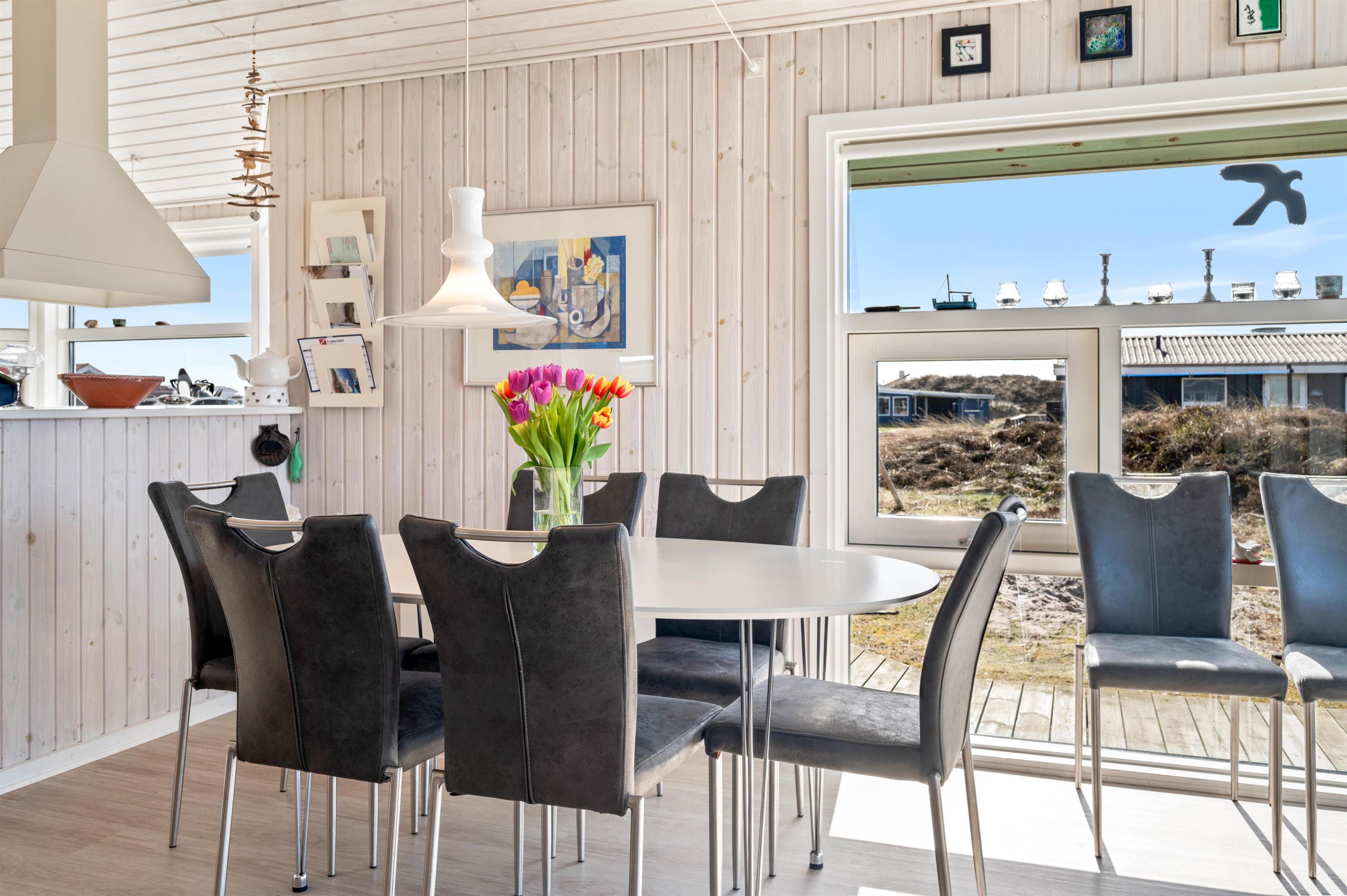 Feriehuset ligger kun få minutters gang fra gode bademuligheder på Bjerregård strand og tæt på Ringkøbing Fjord. Indkøbsmuligheder finder I blot et par kilometer væk, og ellers er det oplagt at lade udflugterne gå til Hvide Sande med alle butikkerne og det hyggelige havnemiljø.