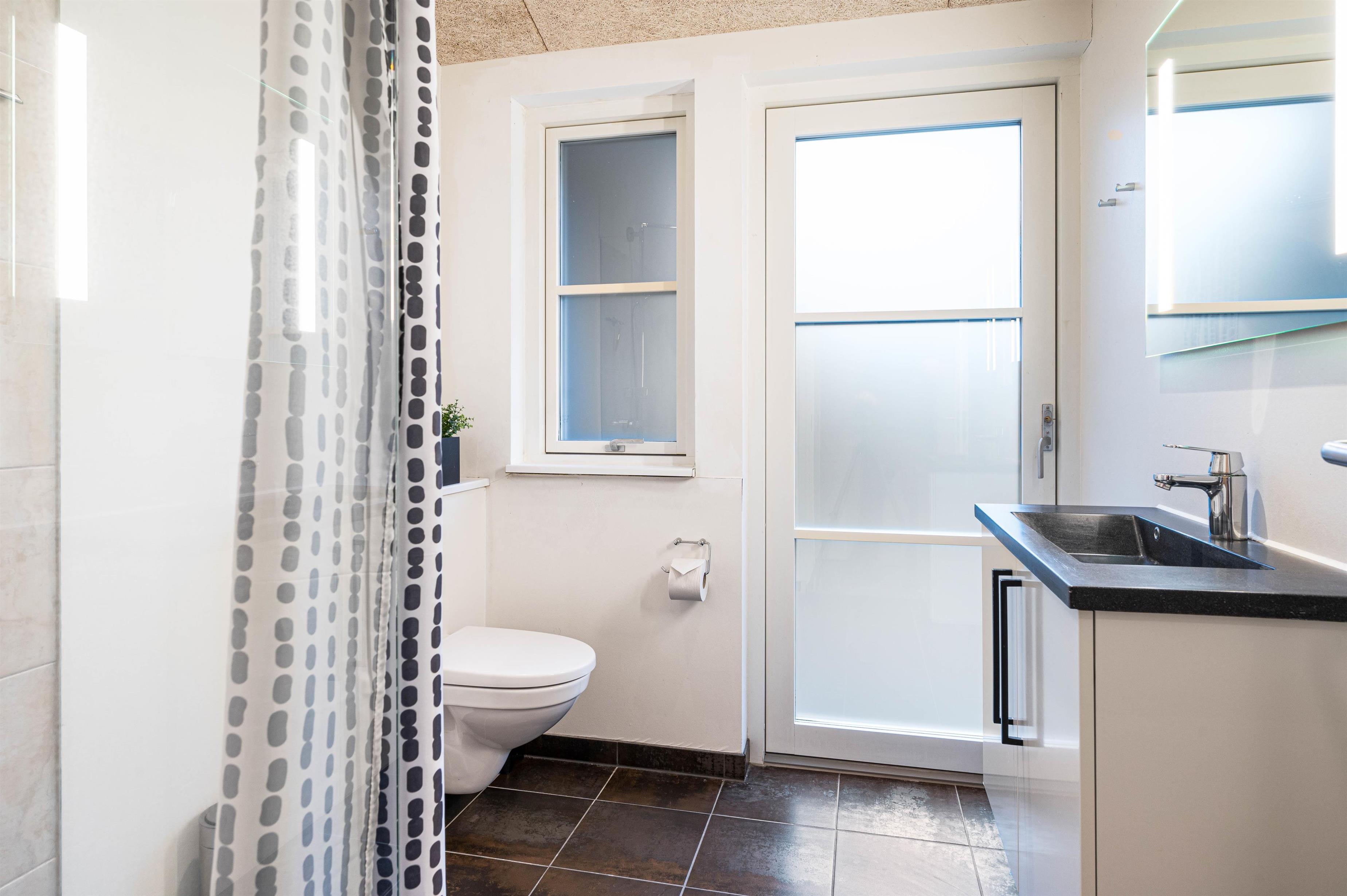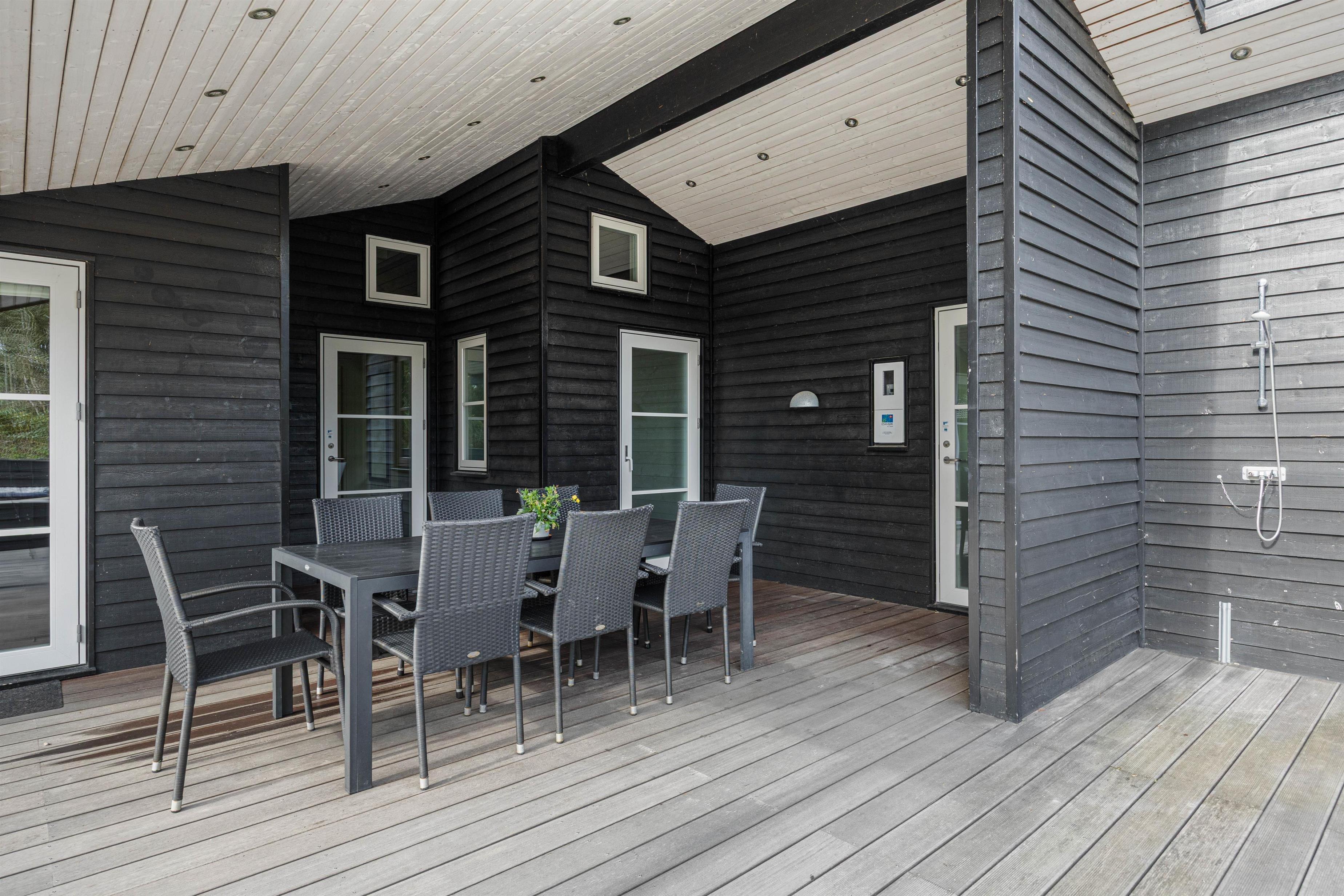 På terrassen er der også sat en udendørs bruser op – både med varmt og koldt vand. Så efter spa- og saunabesøg kan du blive kvikket op. Og efter en tur ved stranden kan du skylle sandet og salten af, og måske give hunden et lille bad. Bruseren kan bruges fra april til november .