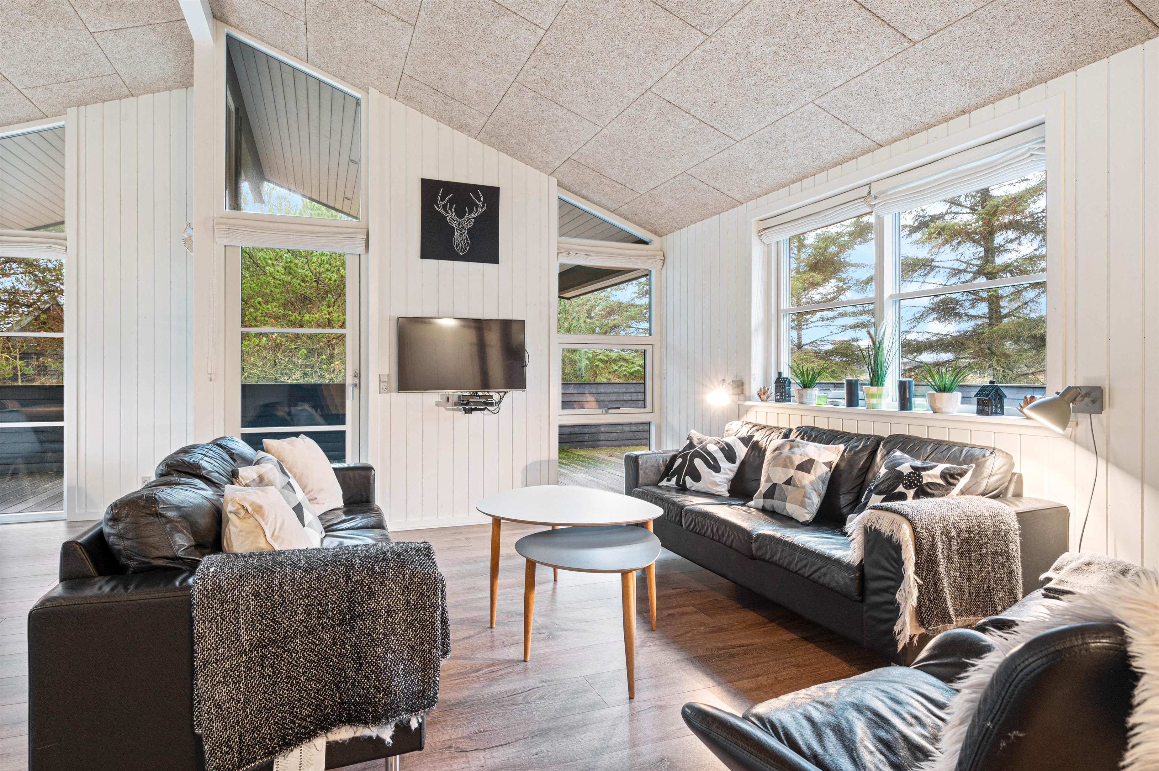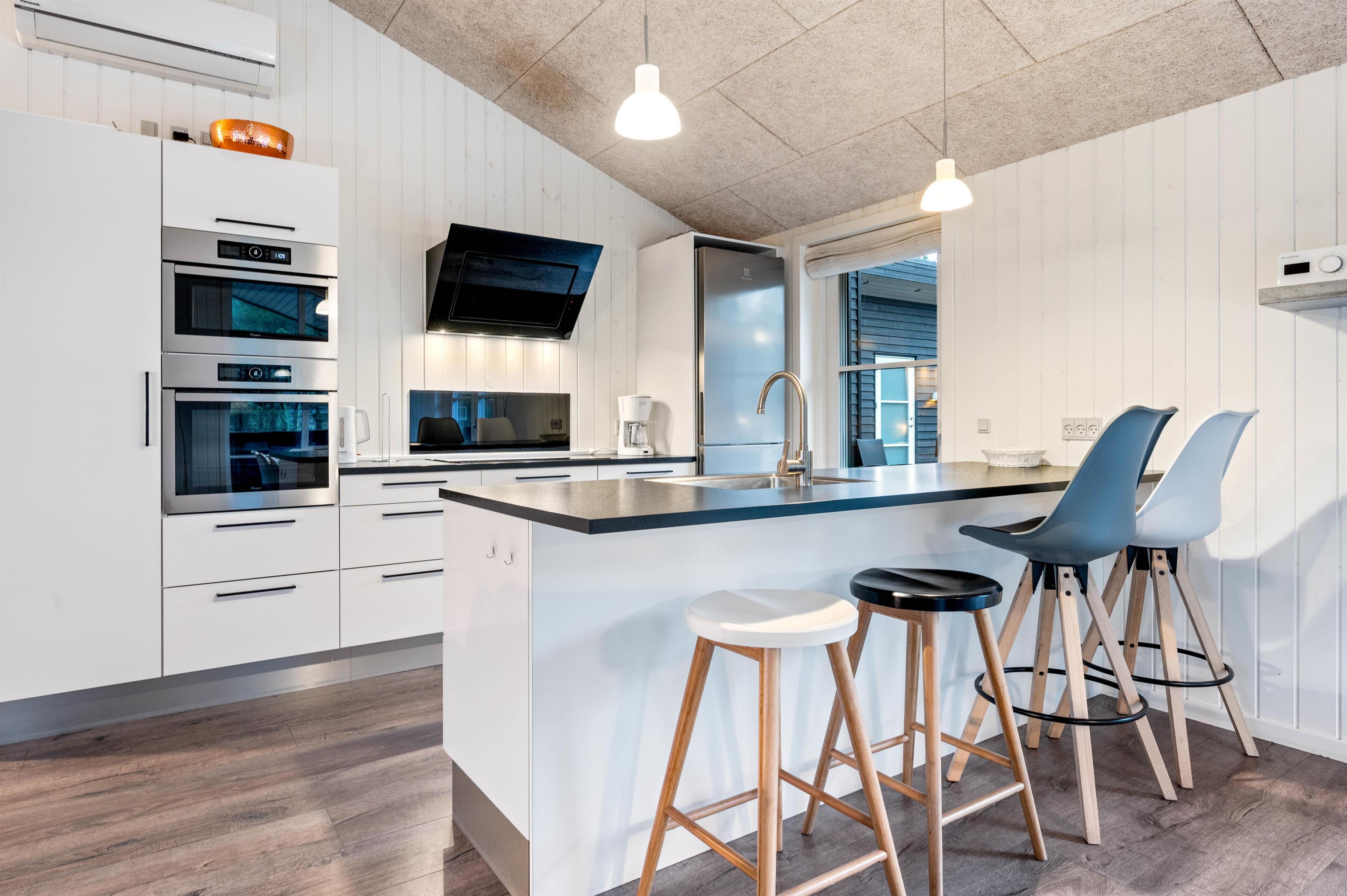 Den hyggelige stue bliver fuldendt af brændeovnen, som giver god varme og masser af hyggelig feriestemning, når I slapper af i sofaen med en god bog eller en film og et glas vin.