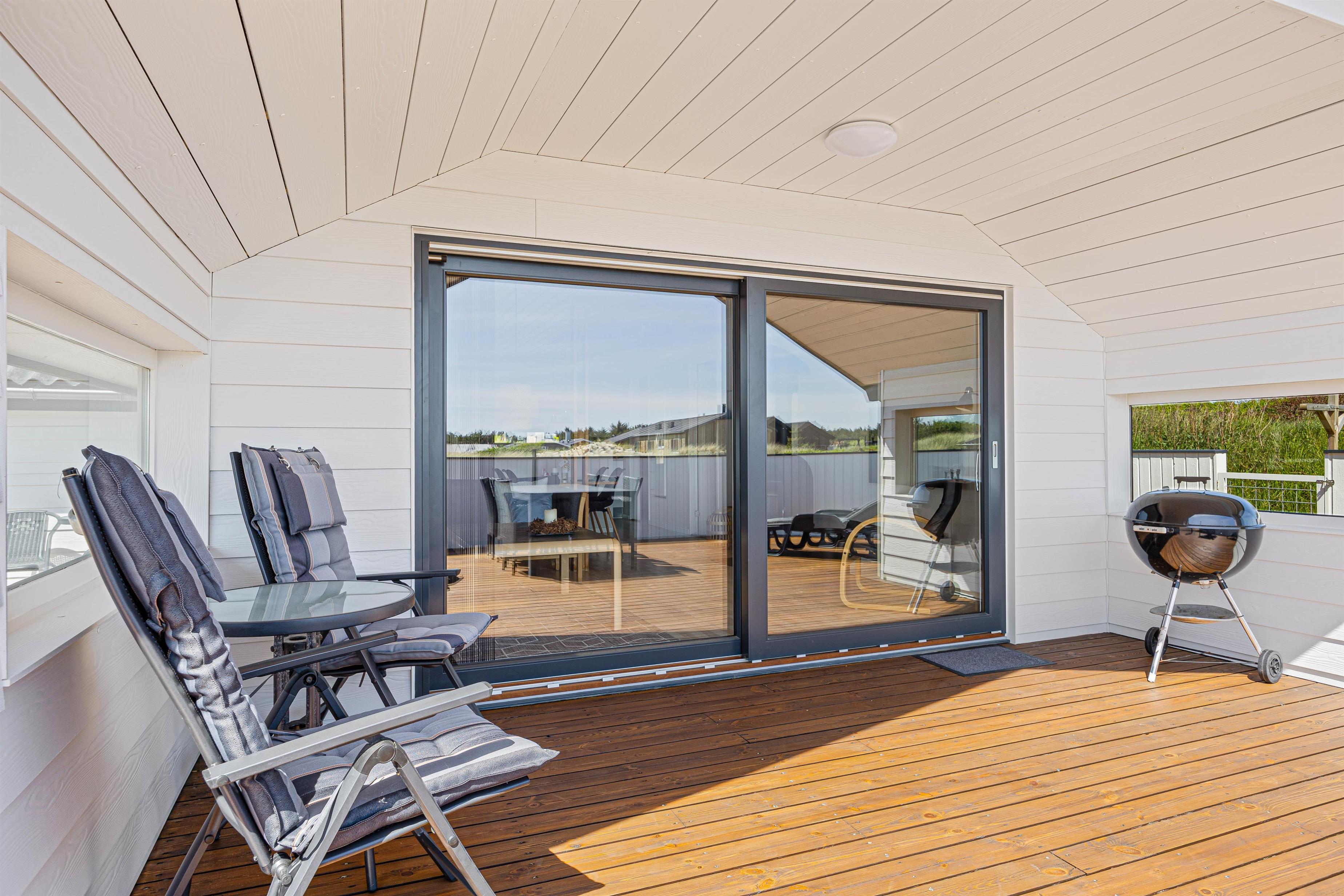 Feriehuset på Dortheasvej 24 har en dejlig stor og lukket terrasse, hvor du smide dig i liggestolen og nyde solen og den friske luft, mens børnene leger. Og da terrassen også er delvist overdækket og afskærmet, er den især godt egnet til en hyggelig grillaften – den perfekte afslutning på en dejlig feriedag.