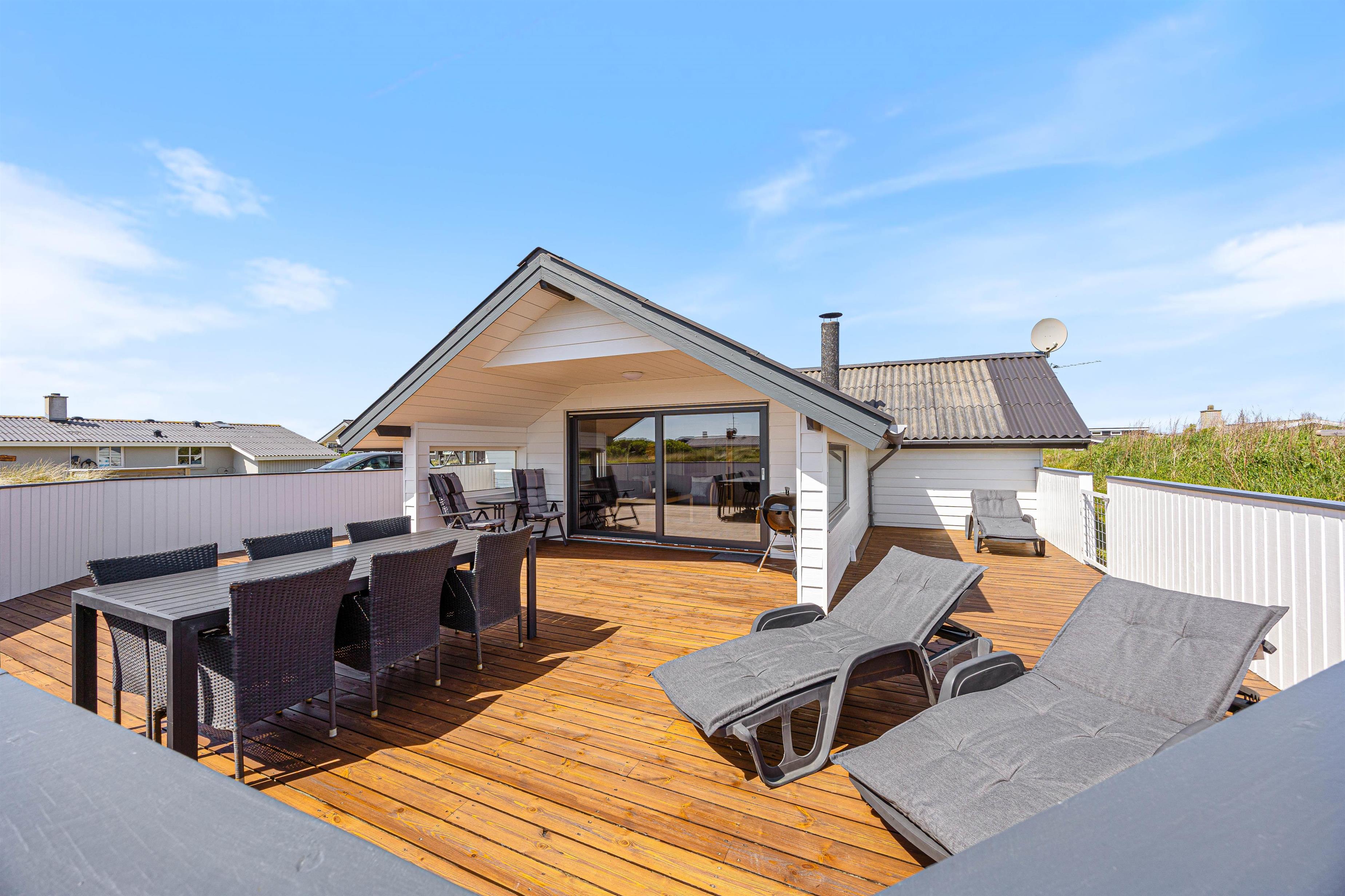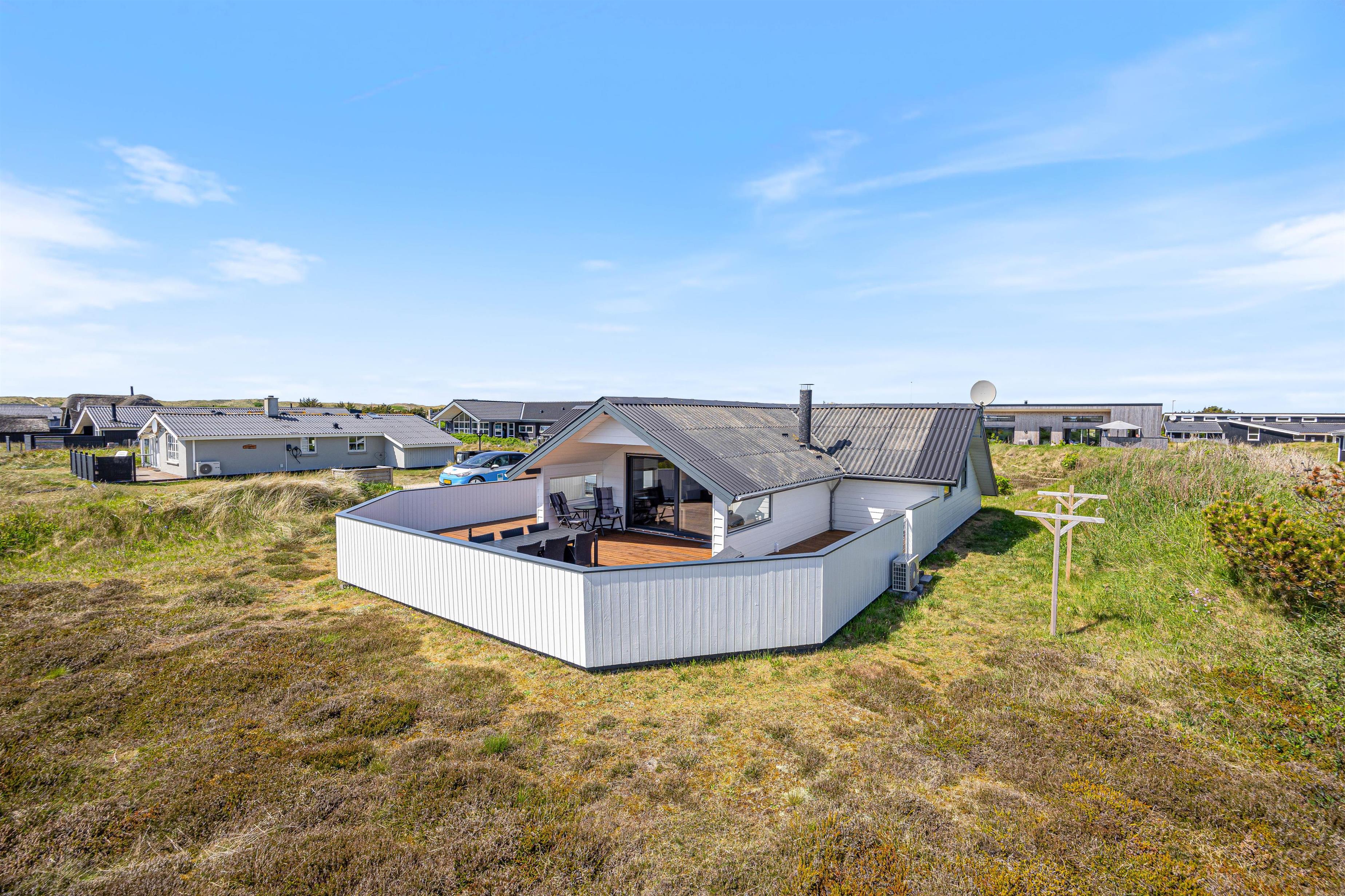 På en let afskærmet naturgrund kun 800 meter fra Vesterhavet ligger dette hyggelige og velindrettede feriehus med flot og smagfuld indretning. Feriehuset har en stor terrasse, hvor du kan slappe af og nyde solens stråler fra morgen til aften.