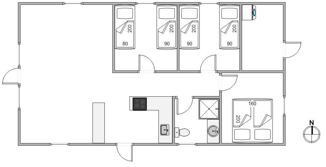 3 soveværelser giver god plads til op til 6 personer, hvad enten det er til en afslappende søvn eller en stille eftermiddag med en god bog. Badeværelset med bruser er funktionelt indrettet midt i feriehuset, så der er let adgang for alle.