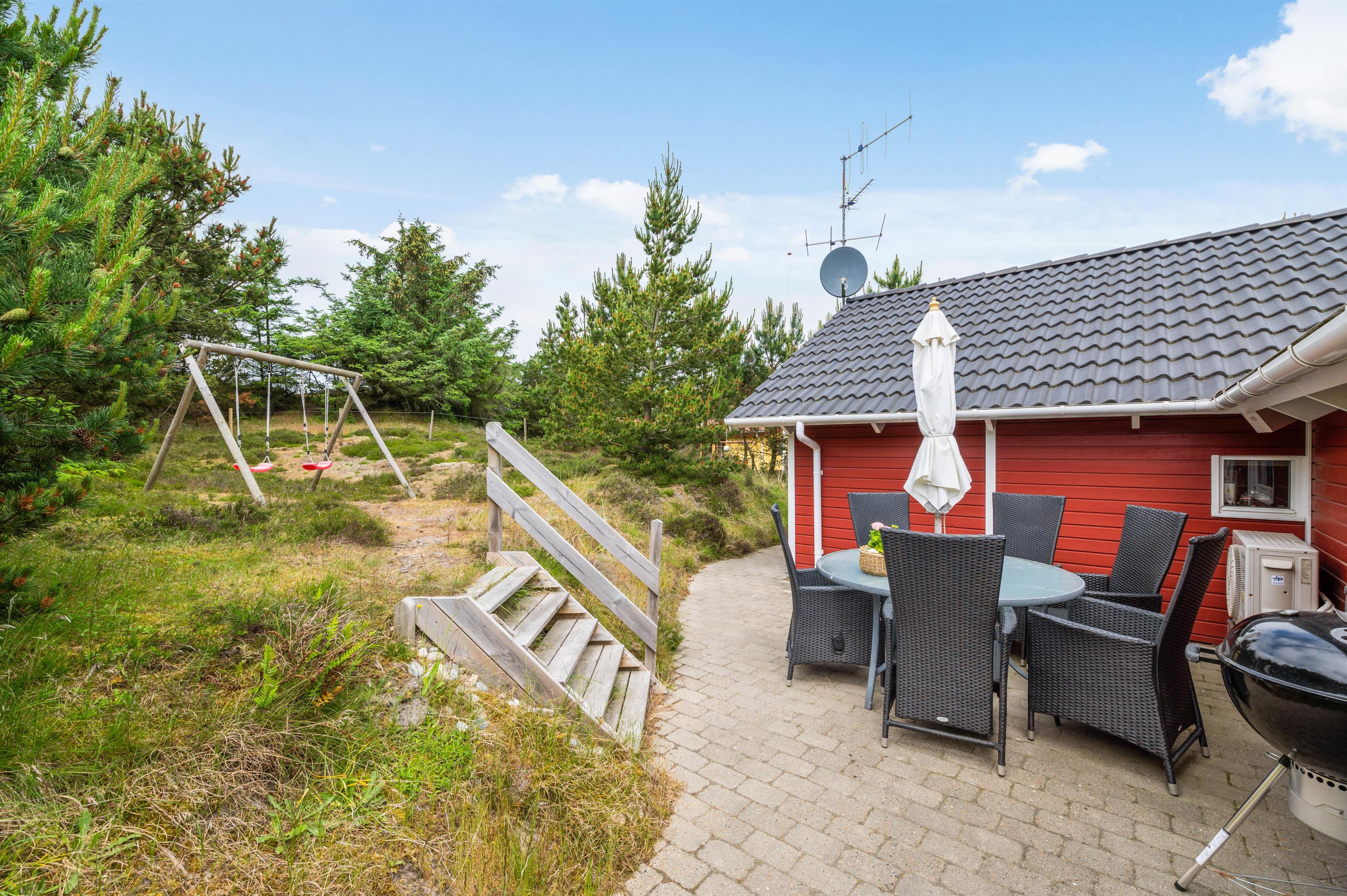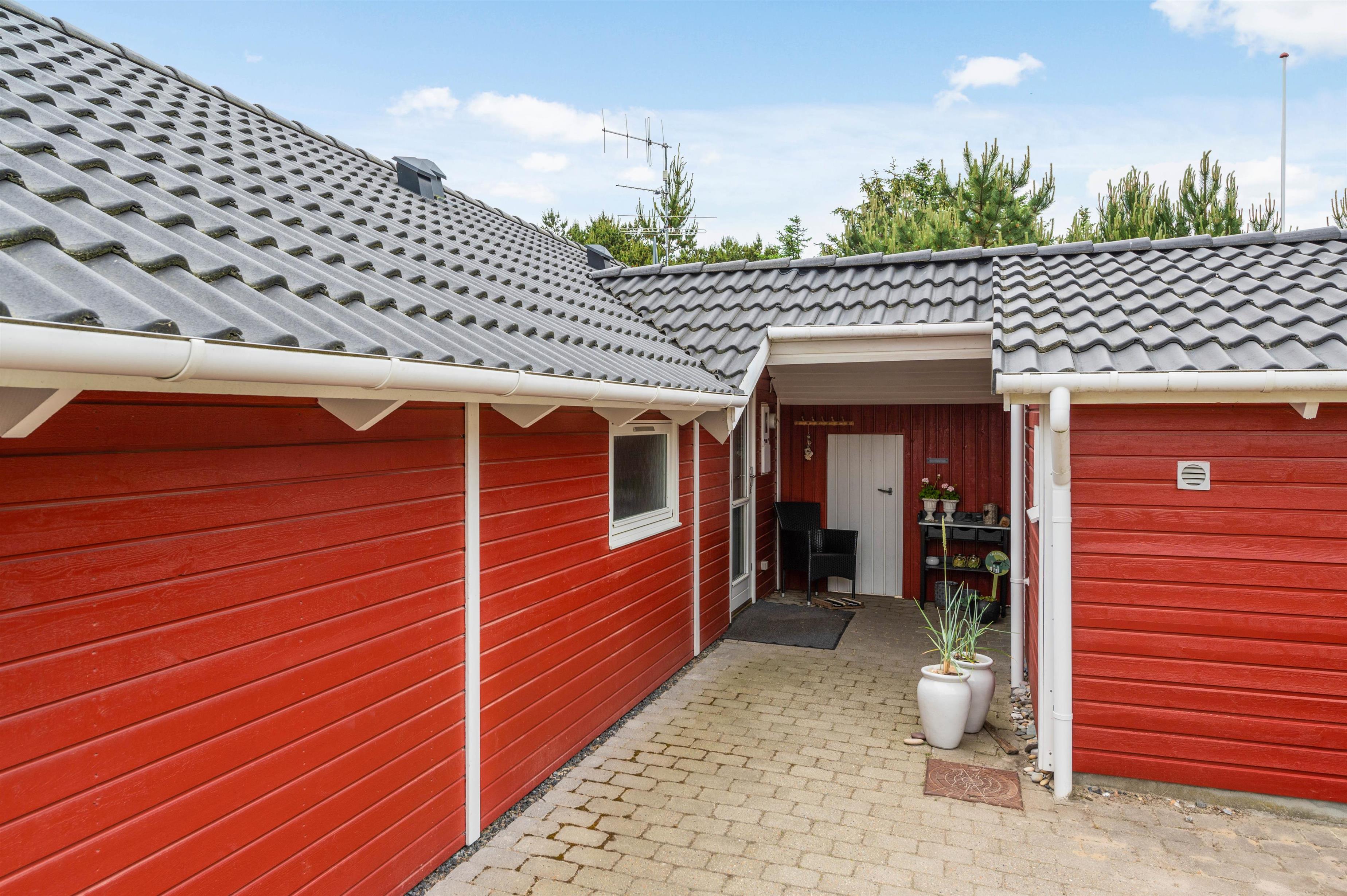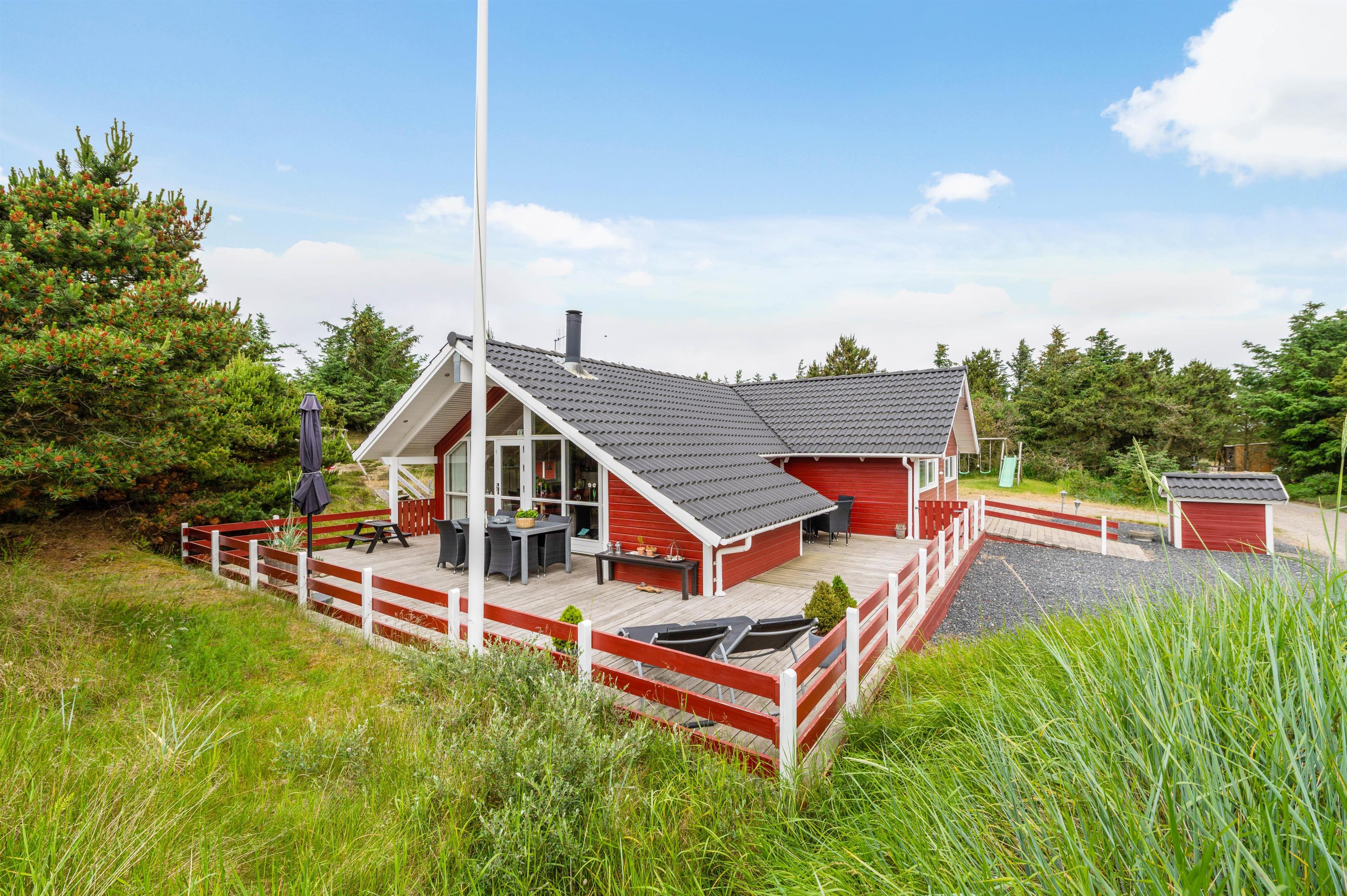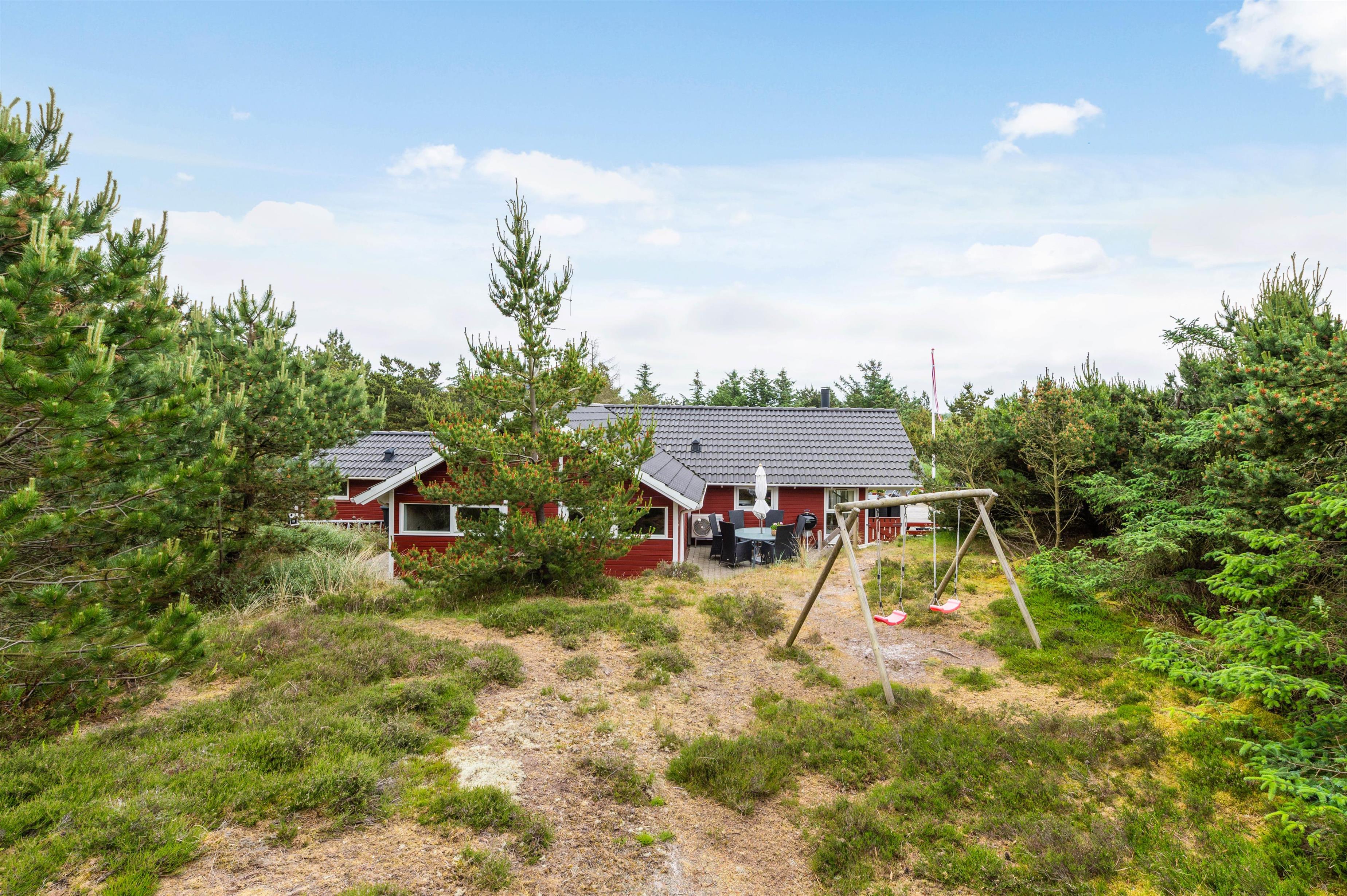 Sommerhuset ligger 700 meter fra Vesterhavet og den kilometerlange sandstrand, mens I blot har 400 meter til den lokale købmand, hvor I kan købe alt fra nybagte rundstykker til lækkert grillkød.