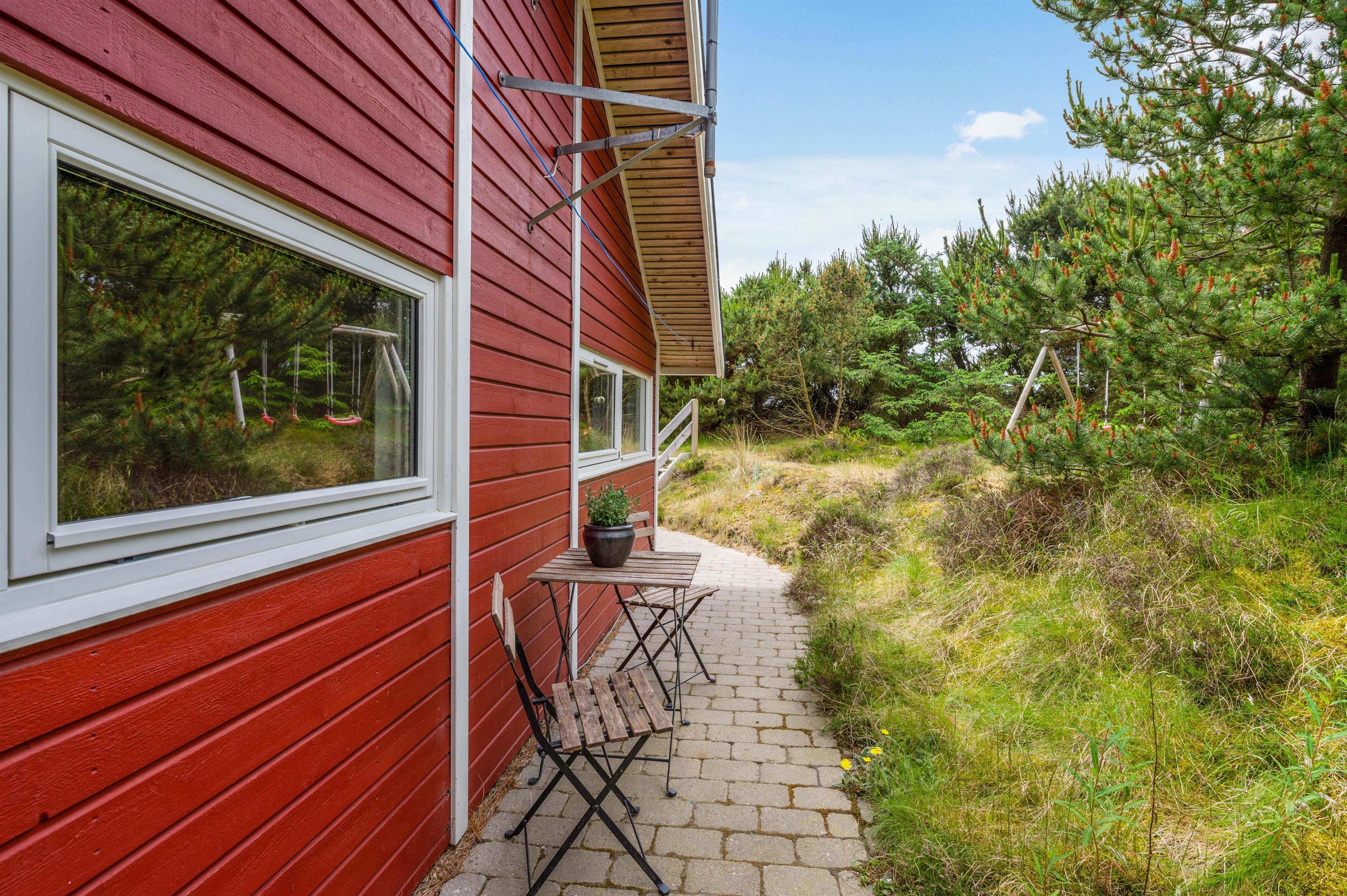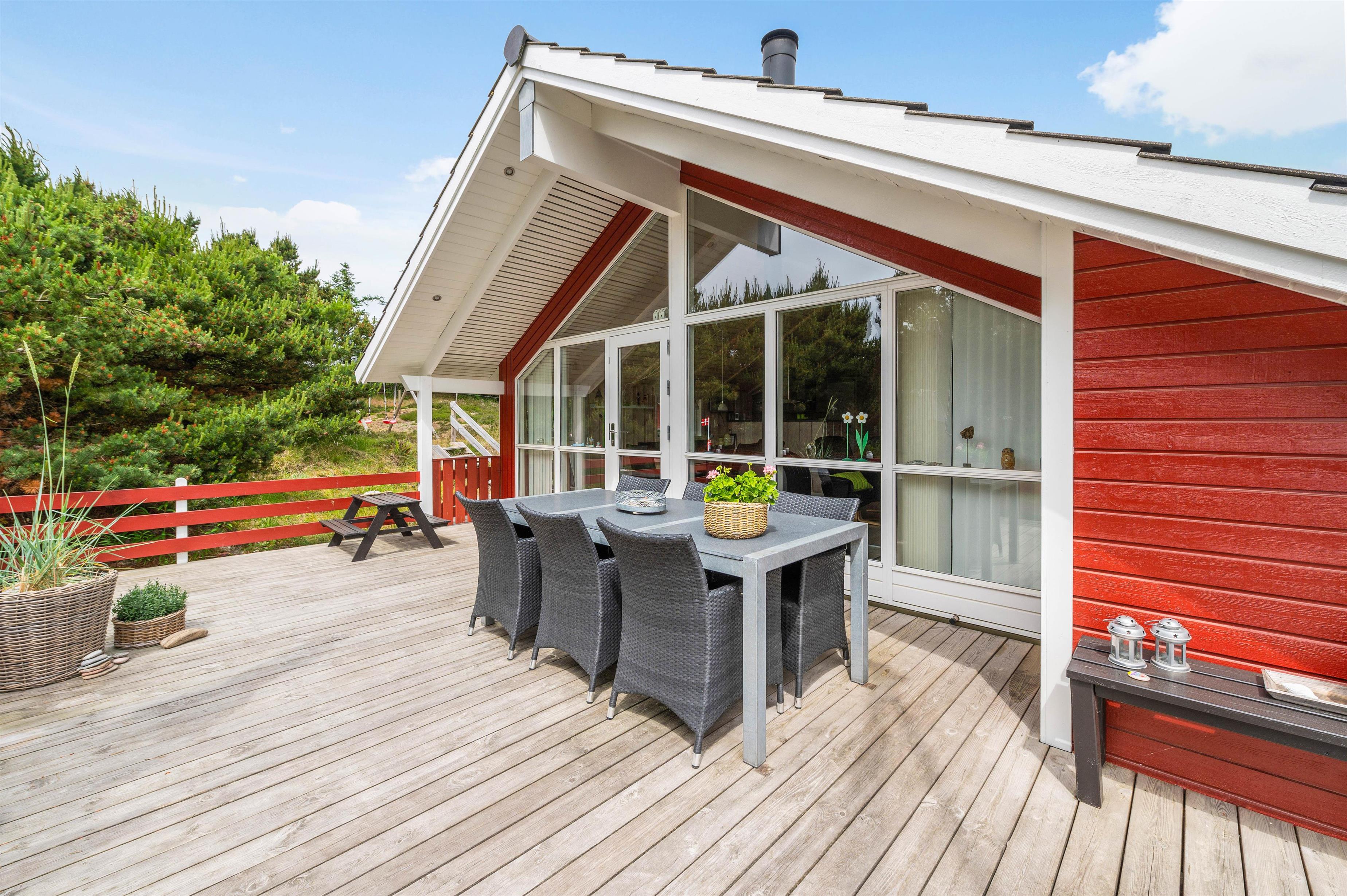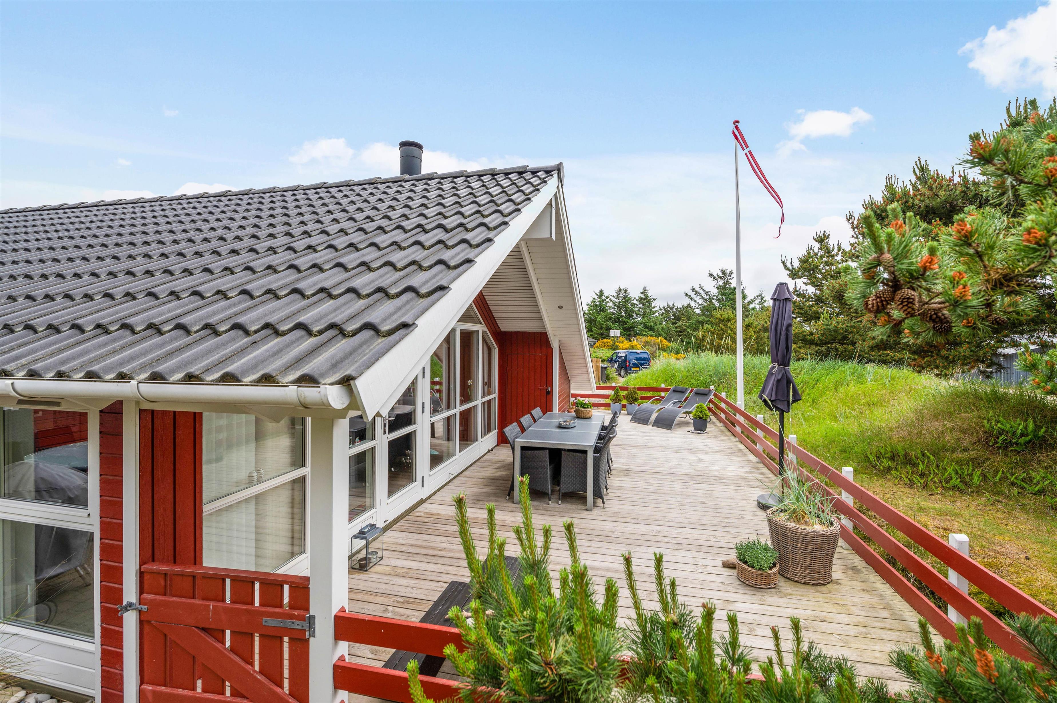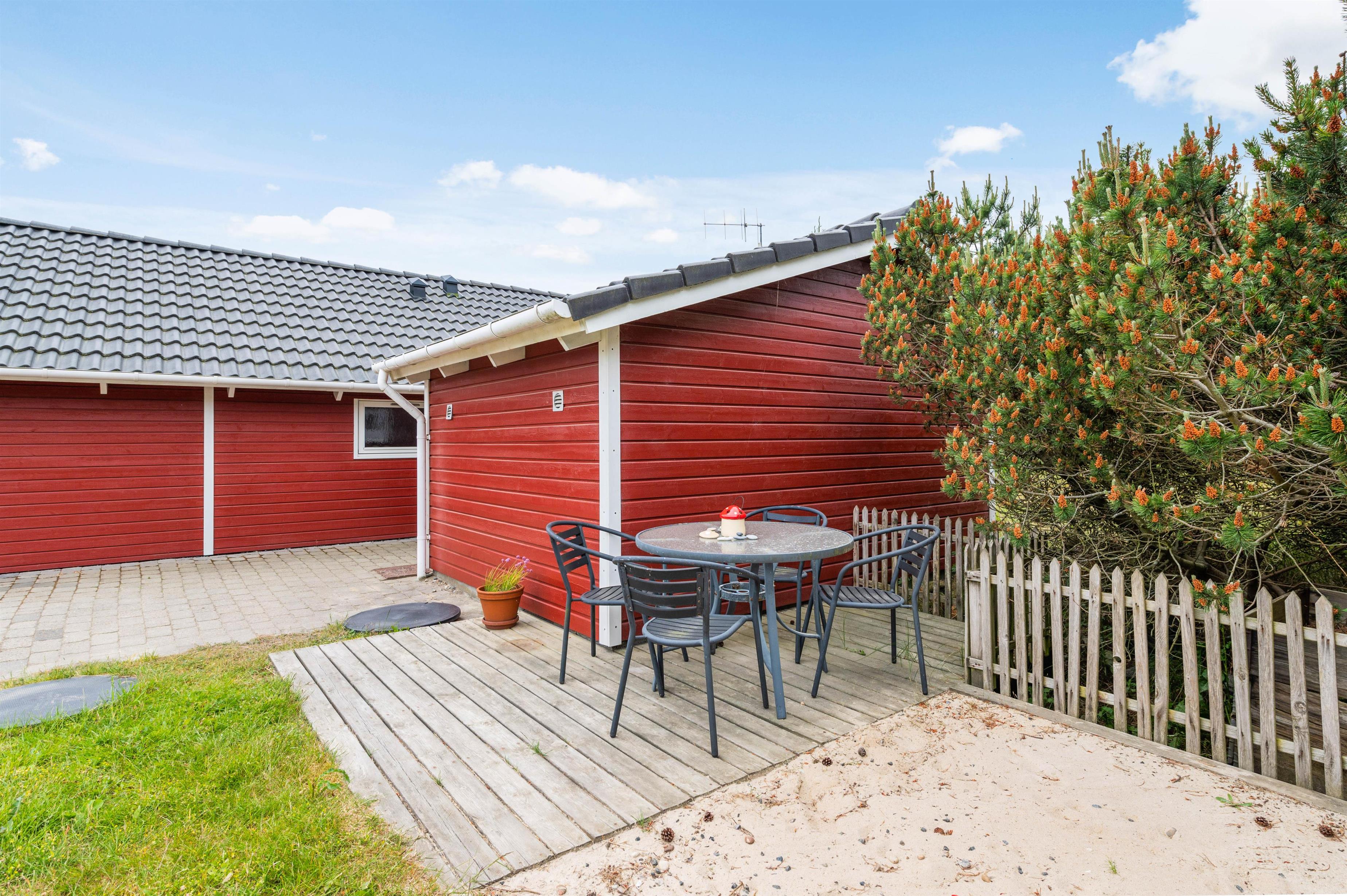 Sommerhuset ligger 700 meter fra Vesterhavet og den kilometerlange sandstrand, mens I blot har 400 meter til den lokale købmand, hvor I kan købe alt fra nybagte rundstykker til lækkert grillkød.