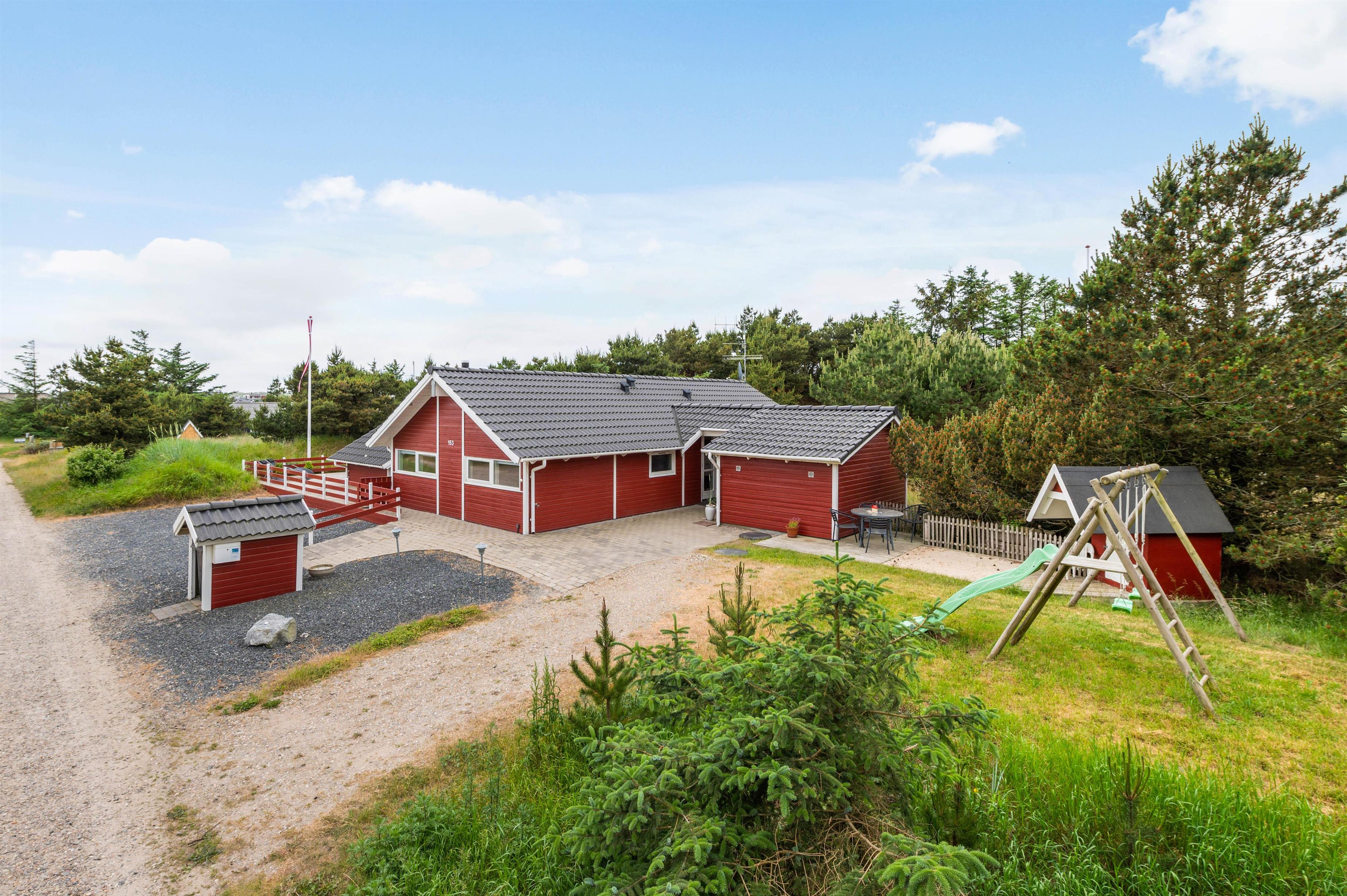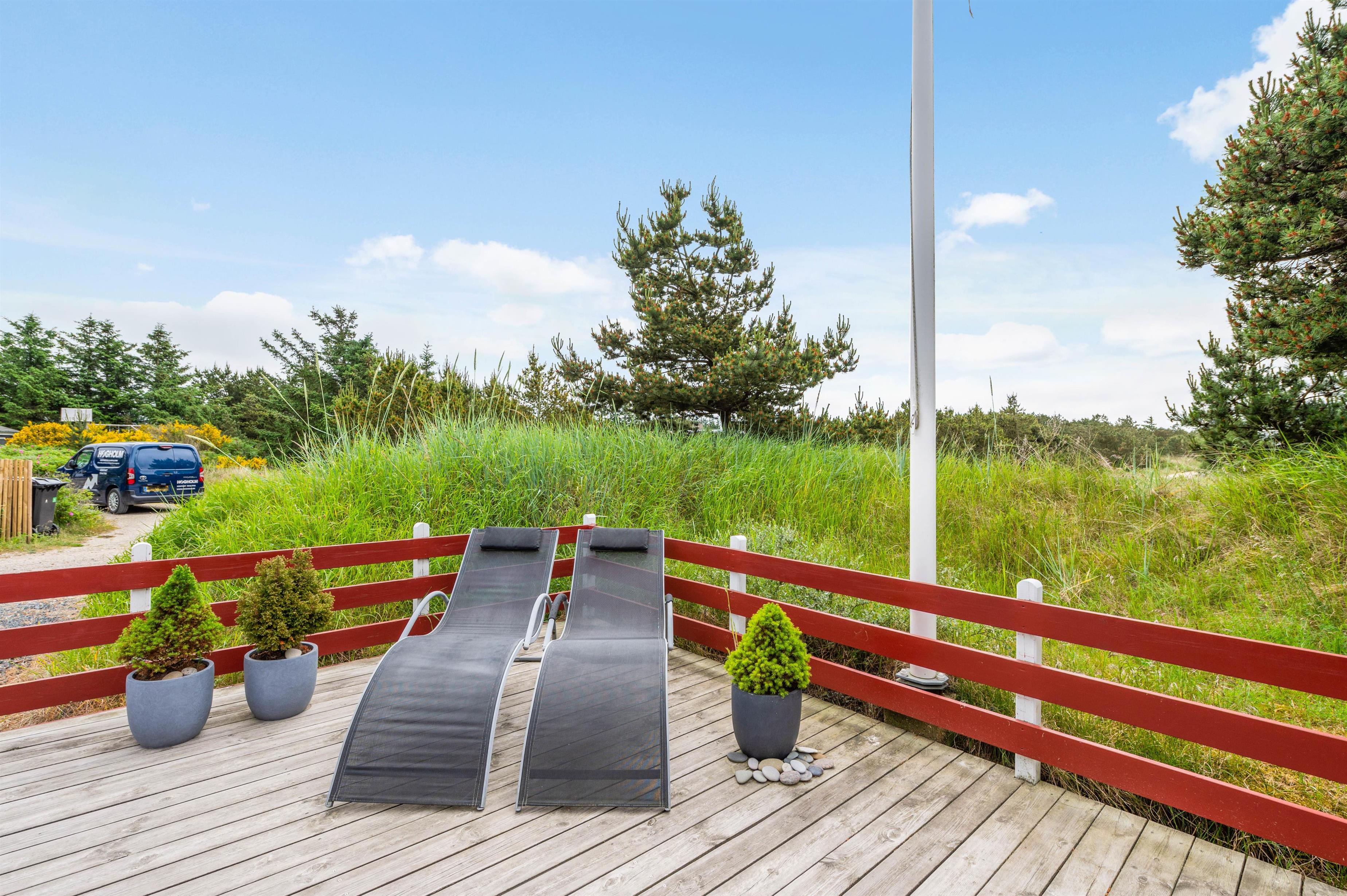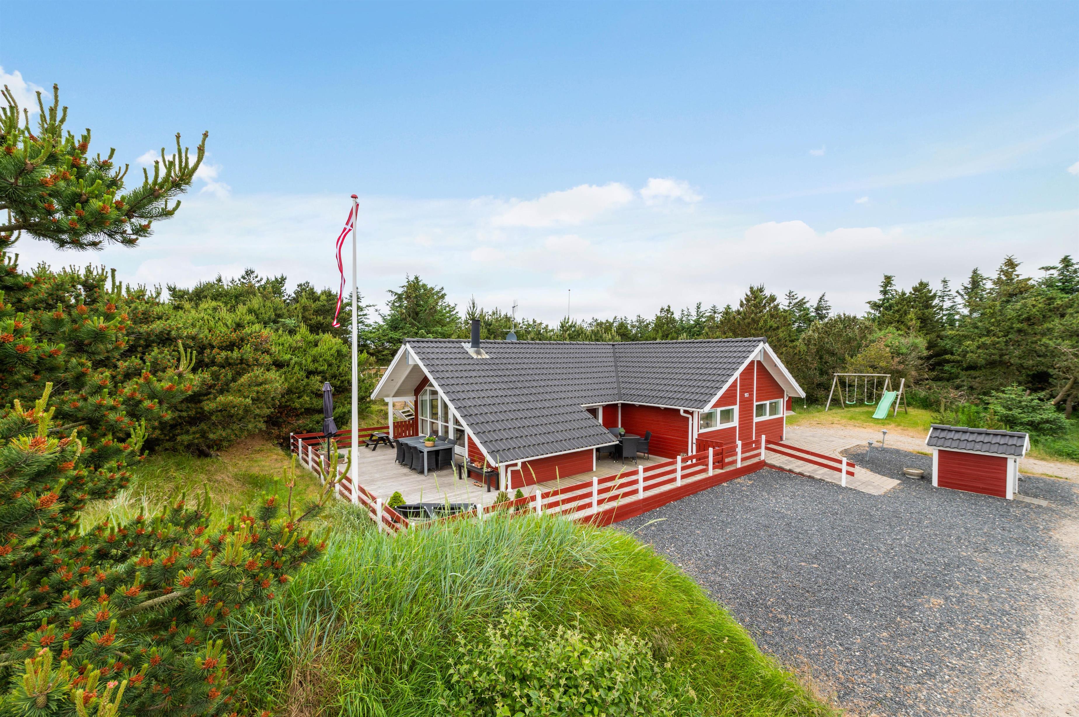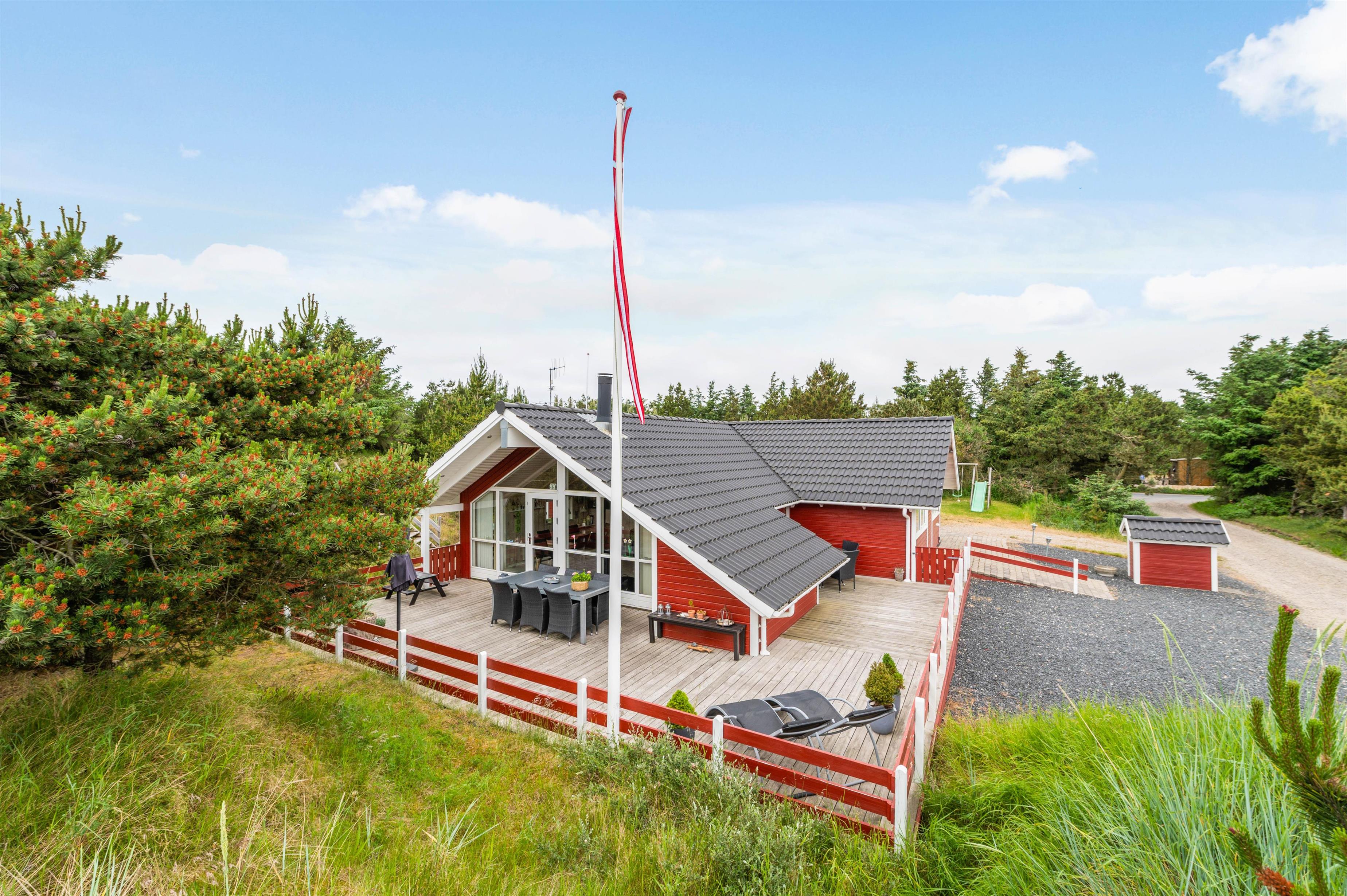 Sommerhuset ligger 700 meter fra Vesterhavet og den kilometerlange sandstrand, mens I blot har 400 meter til den lokale købmand, hvor I kan købe alt fra nybagte rundstykker til lækkert grillkød.