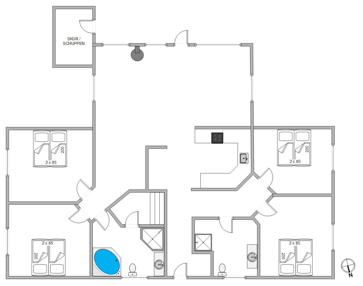 Dette dejlige sommerhus i Bjerregård, er den perfekte ramme om en dejlig ferie. Sommerhuset er meget hyggeligt indrettet med flotte og komfortable møbler. Feriehuset har plads til 8 personer i de 2 separate soveafdelinger, som også har eget badeværelse. Altså et godt valg, hvis I f.eks. er 2 familier der rejser sammen. Et badeværelse er desuden udstyret med boblebad til 2 personer og sauna til 2-3 personer.