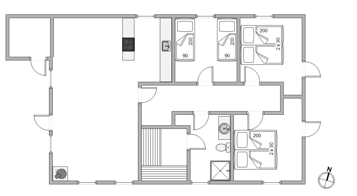 I det veludstyrede og moderne køkken med induktionsovn er der god plads til at lave mad sammen, og som prikken over i’et sørger opvaskemaskinen for opvasken, så I kan nyde aftenerne i hinandens selskab.