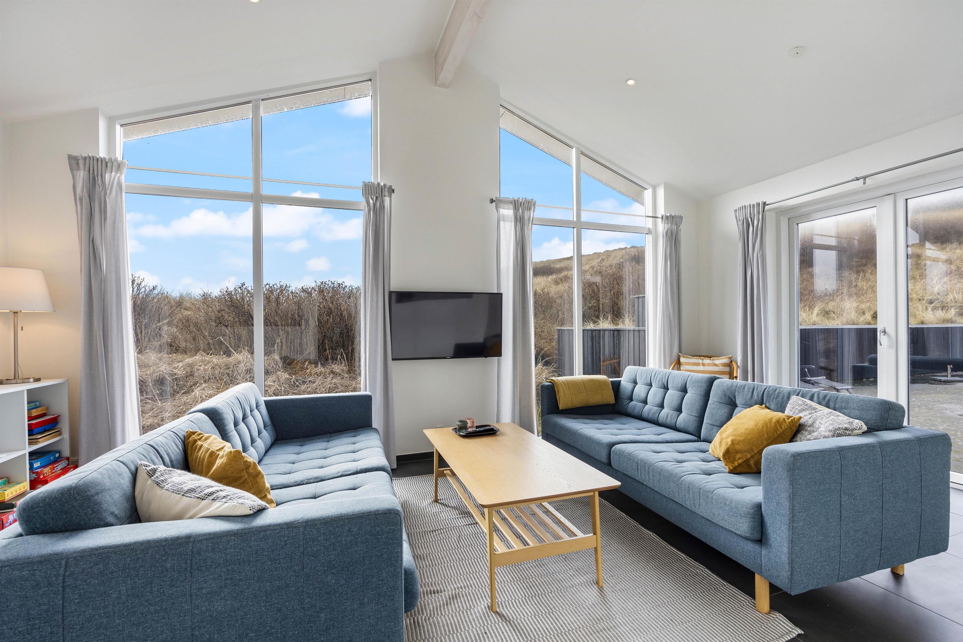 I tilbygningen, som er placeret mod sydøst, finder du sommerhusets anden stue, hvor der er klinkegulv med gulvvarme og endnu et fladskærms-TV. Dette sommerhus har desuden gratis trådløst internet, vaskemaskine og tørretumbler.
