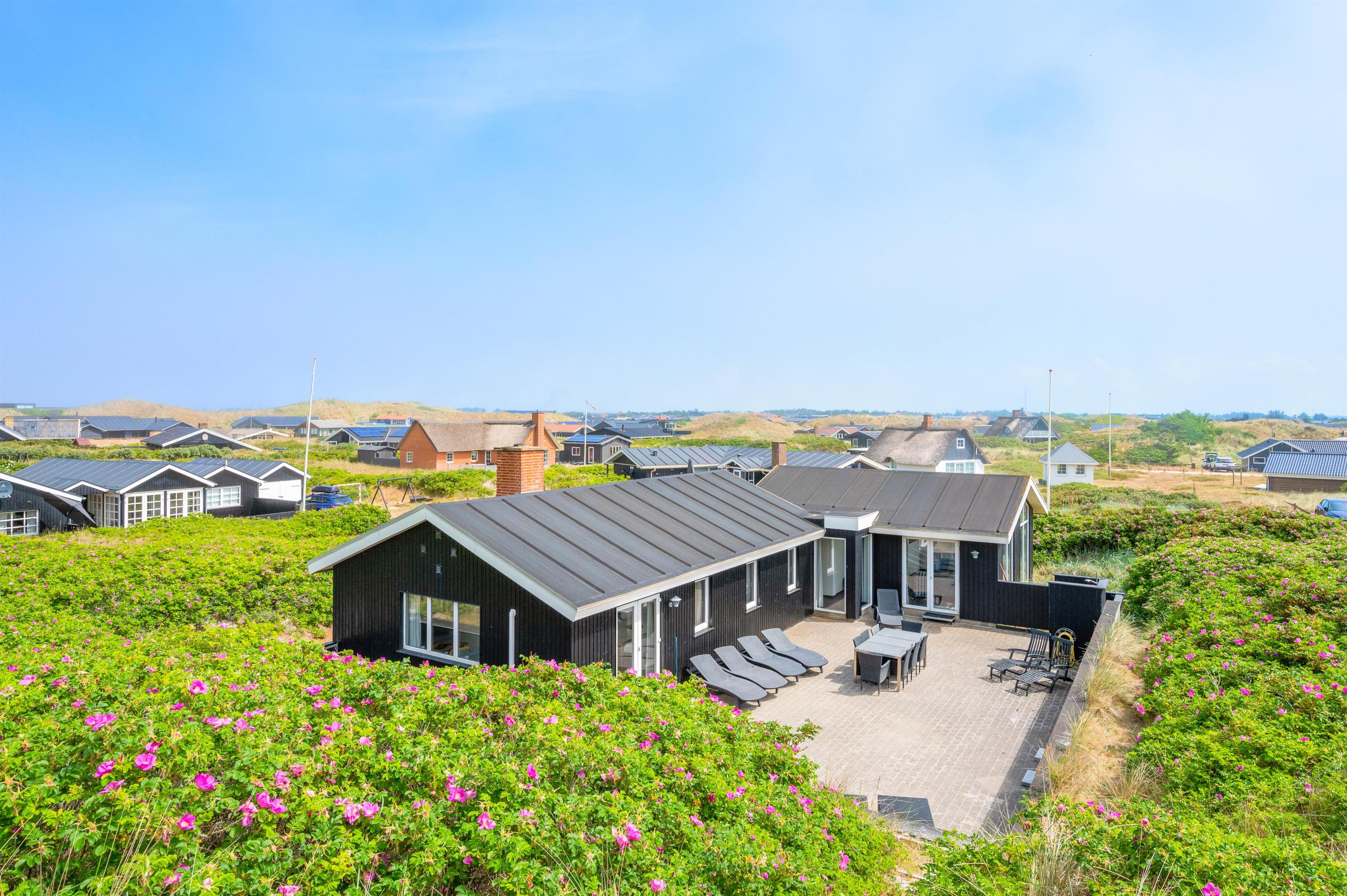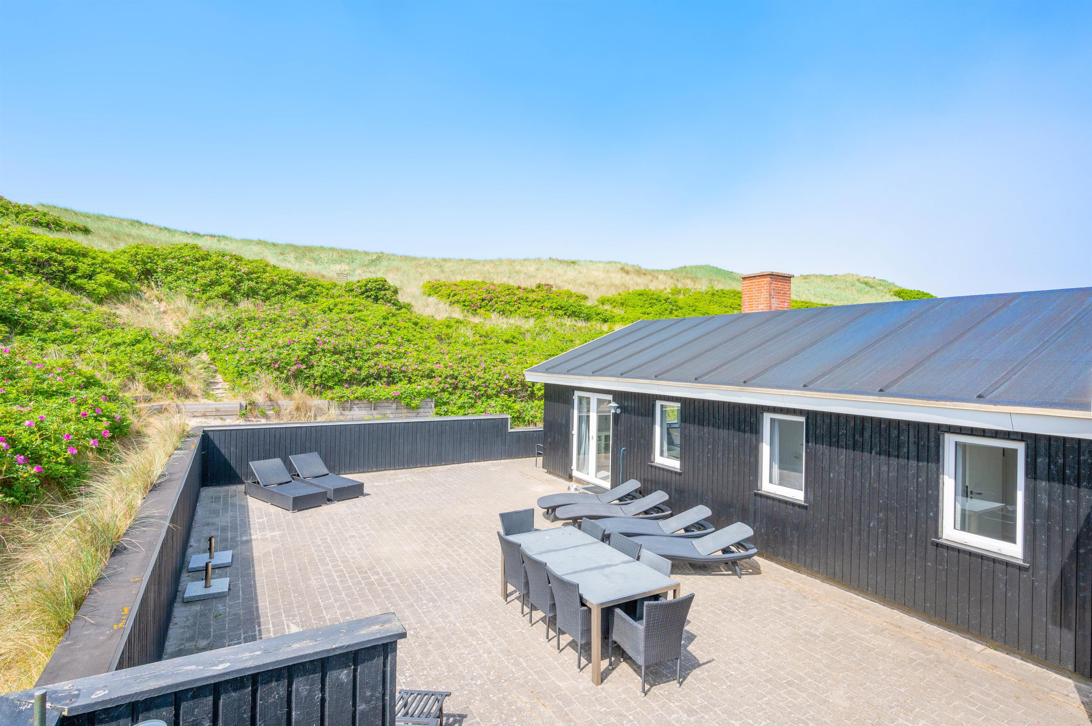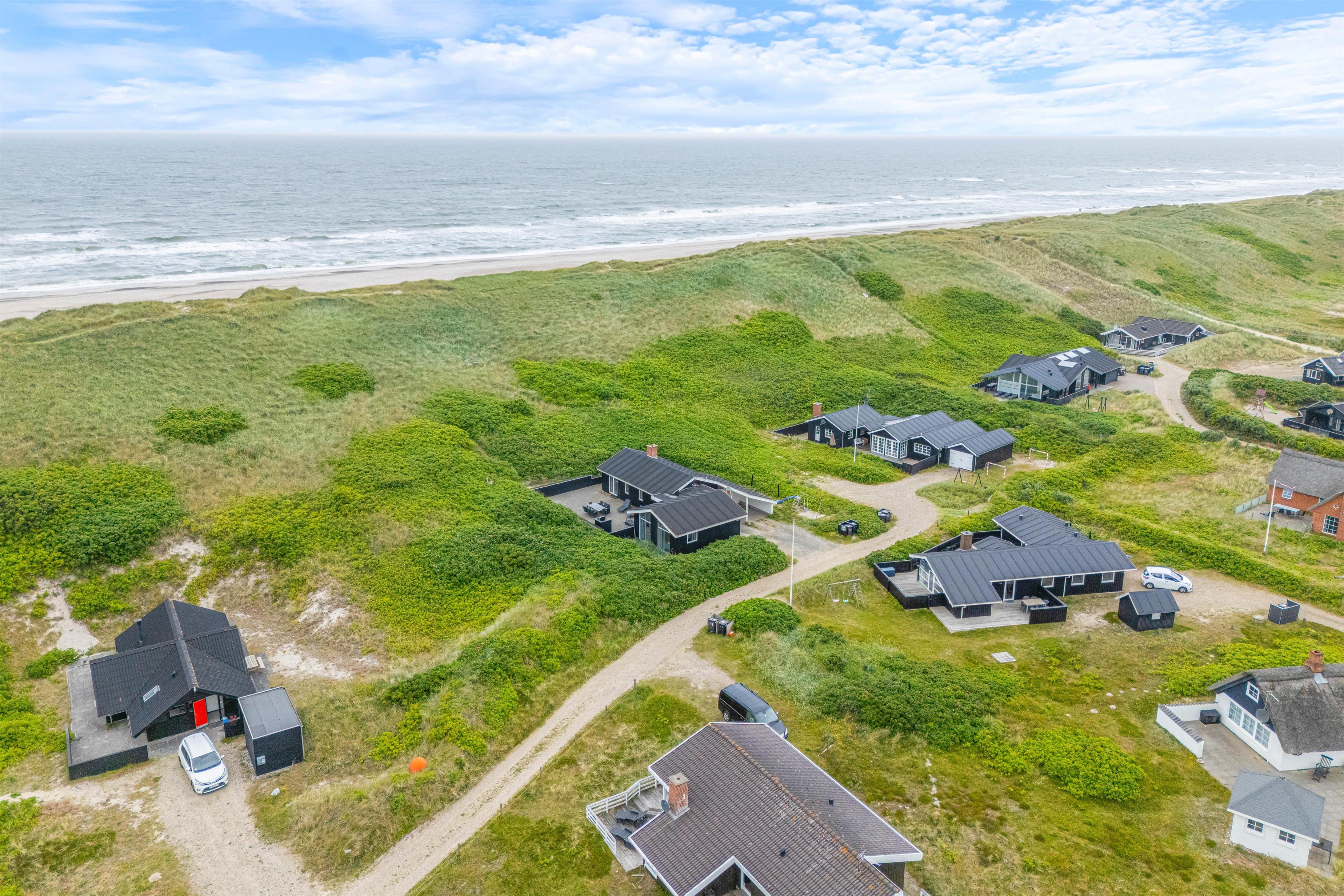 Dette indbydende sommerhus ligger skønt i yderste klitrække kun 50 meter fra havet, og er en hel unik mulighed for en ferie helt tæt de lange smukke sandstrande. Der hører en rummelig, helt lukket terrasse til sommerhuset, placeret mod sydvest - og derfor anvendelig det meste af dagen.