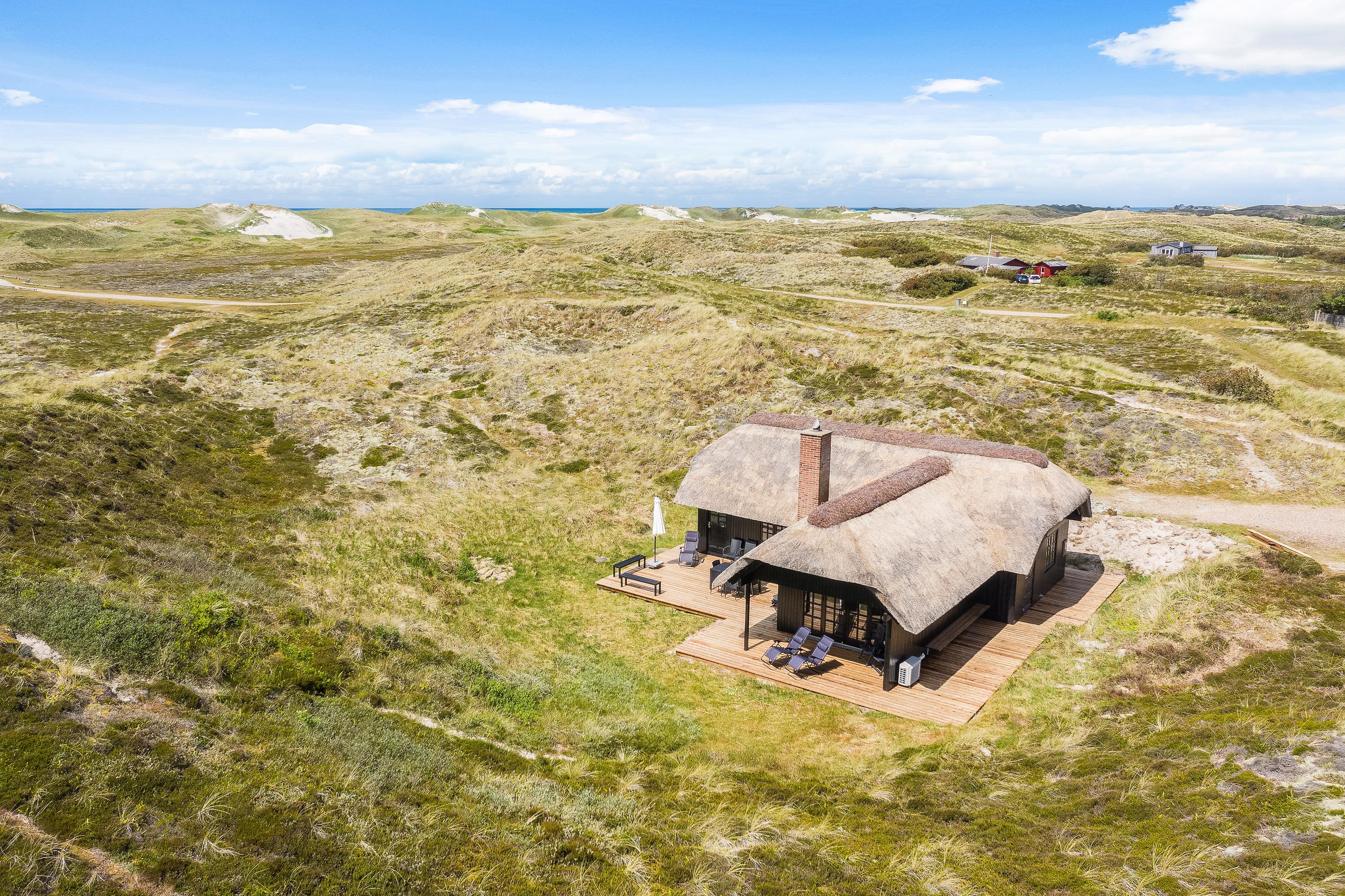 Kun 400 meter fra denne stråtækte perle ligger Vesterhavet og den endeløse sandstrand, som året rundt indbyder til forfriskende gåture langs vandet.