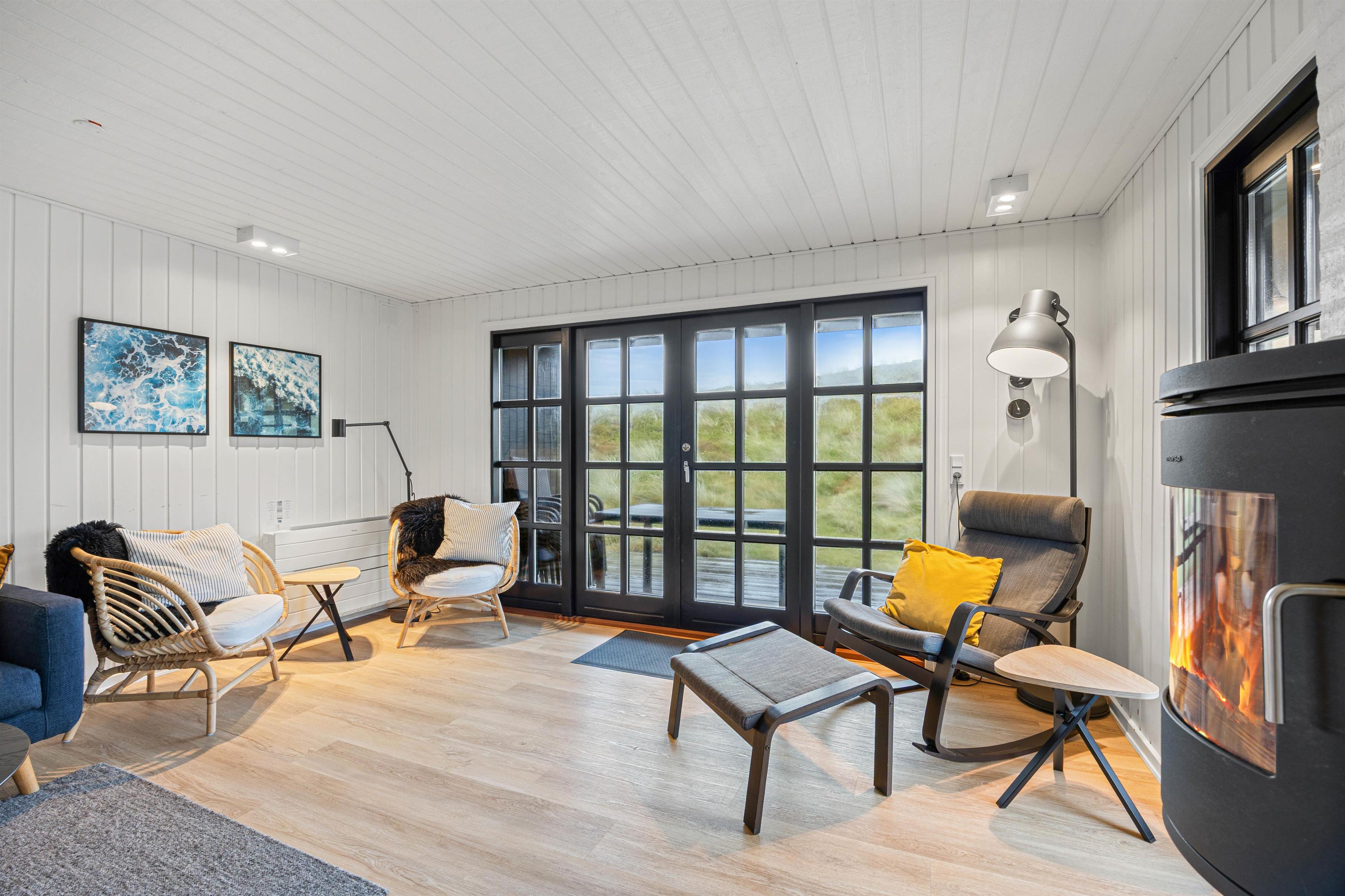 Slap af i skønne lyse omgivelser med brændeovn
