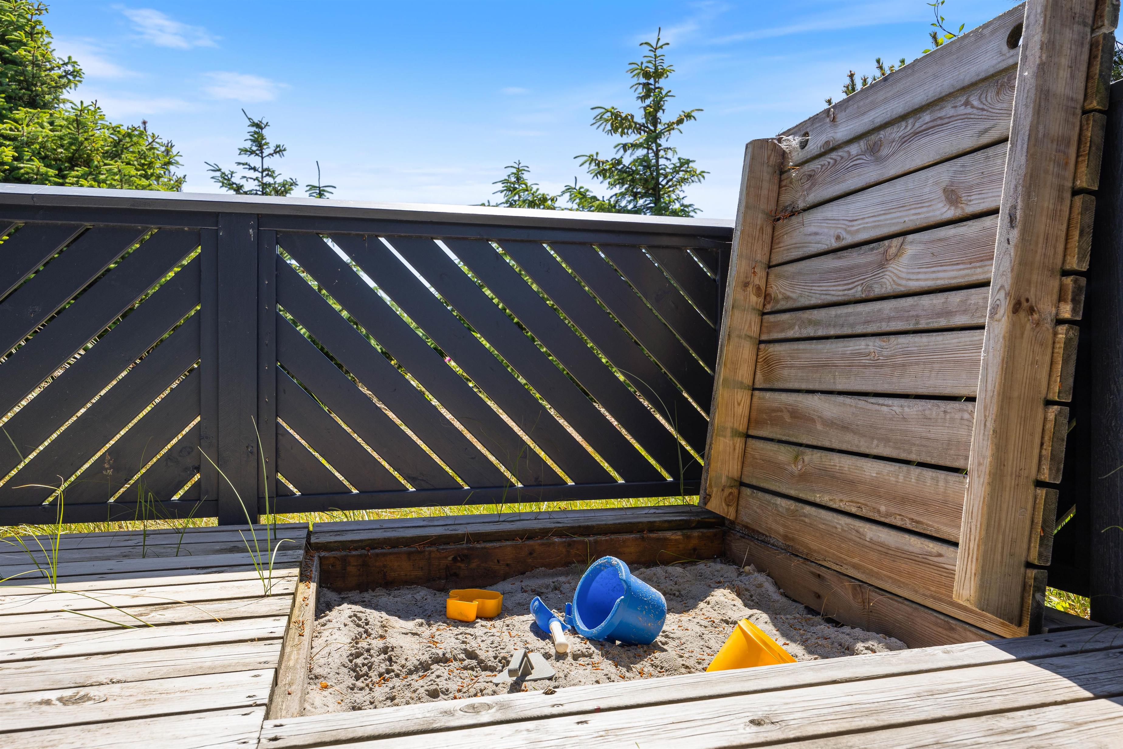 For de yngste gæster er der en sandkasse og en gynge, så de kan lege, mens I nyder eftermiddagskaffen i solen.