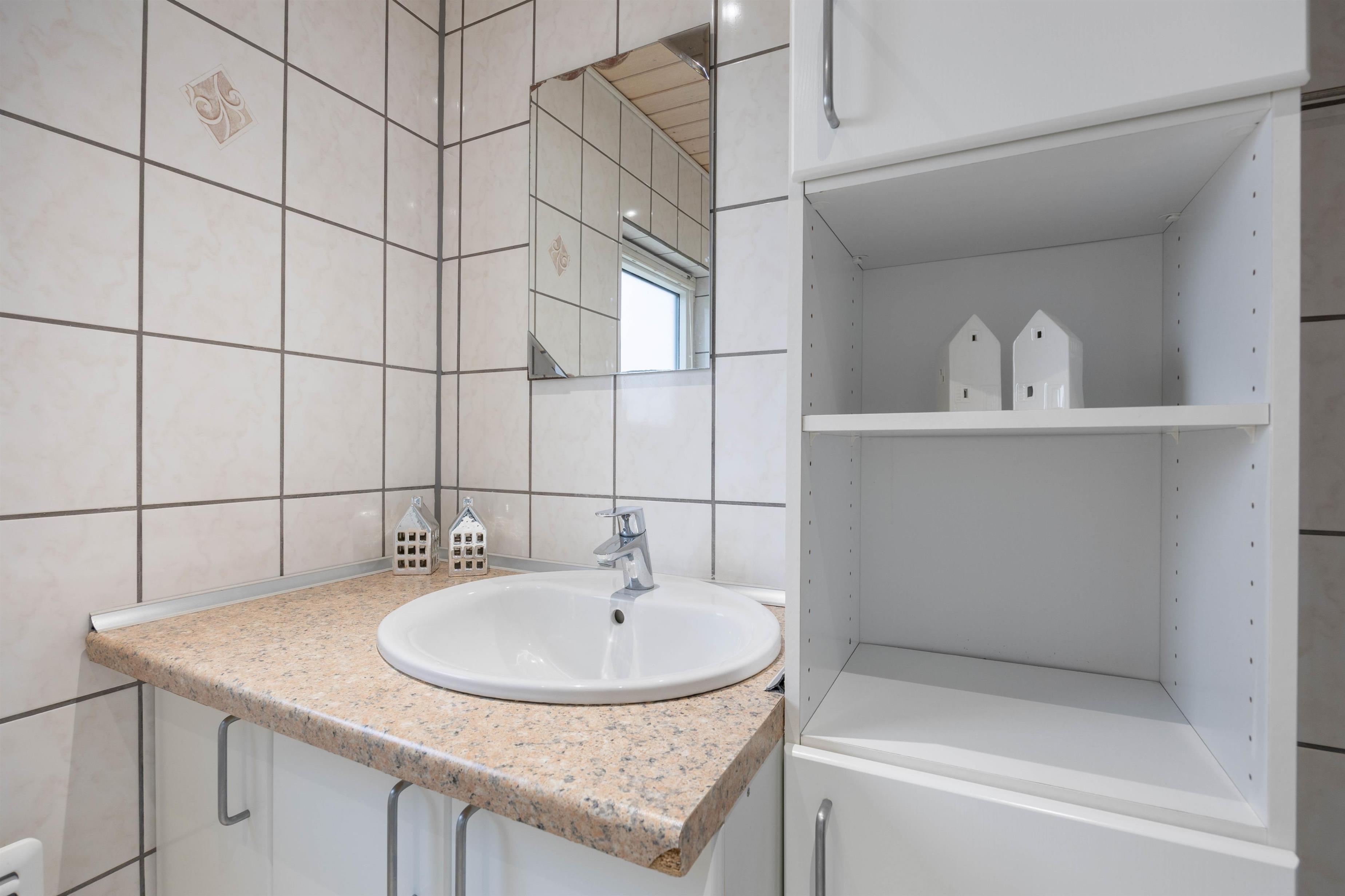 På badeværelset er der gulvvarme, og som et ekstra plus er der både vaskemaskine og tørretumbler i feriehuset.