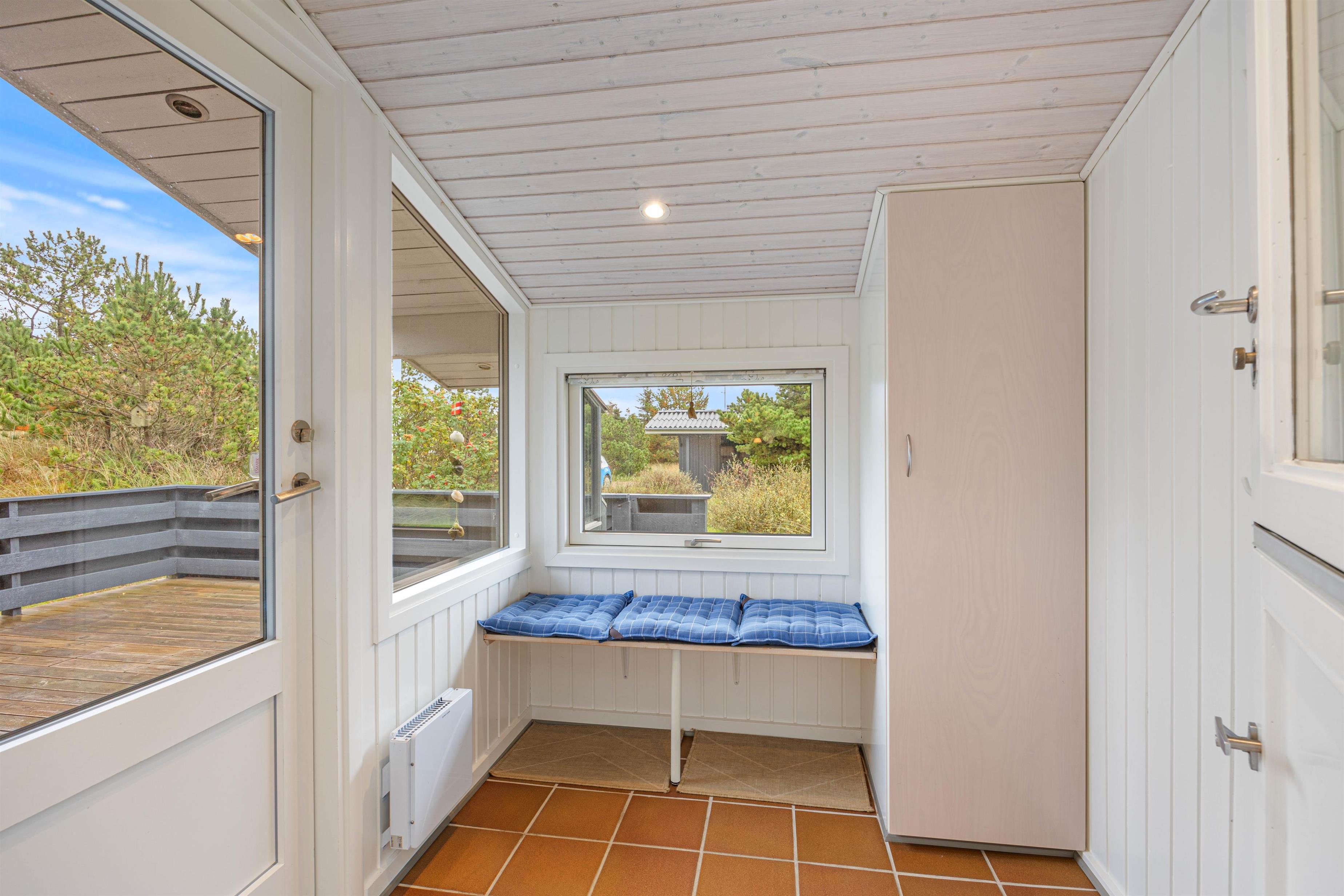 Fra stuen kommer I ud på de to terrasser, hvor havemøblerne allerede står klar til jer. Den ene terrasse er helt lukket, og her kan I roligt lade børnene lege uden at skulle holde opsyn med dem og i stedet læse en god bog i solen. Den anden terrasse er delvist overdækket, så I til hver en tid kan nyde naturomgivelserne i den friske luft eller tilberede et lækkert feriemåltid på grillen.
