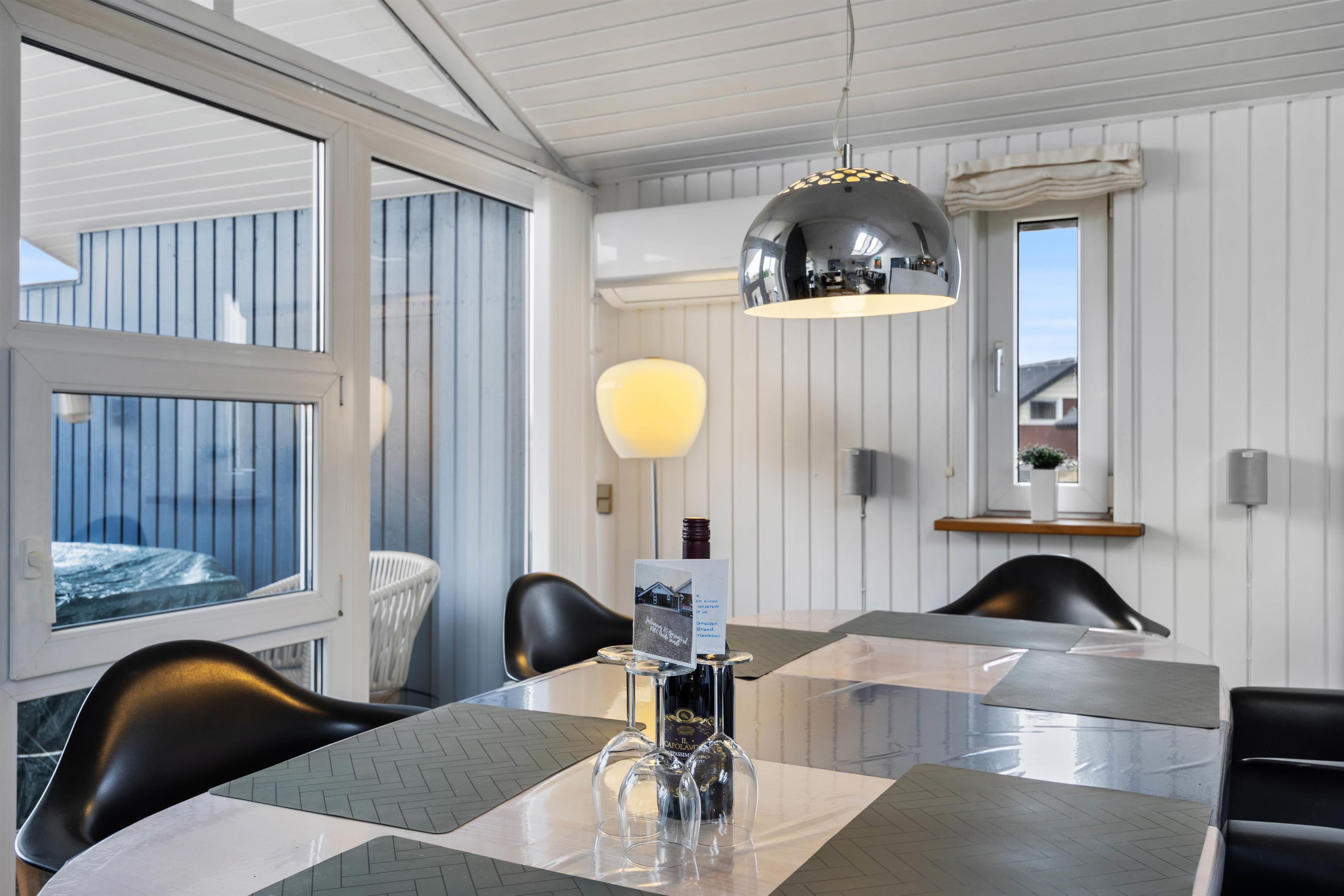 Indvendigt er sommerhuset også renoveret og løbende vedligeholdt. Alle rum er lyse og indbydende. Der er lyse trævægge og lofter, lyse trægulve i alle rum, bortset fra entre, badeværelser og køkken. Den gode entre er rummelig og har en smart opbevaring af fodtøj.