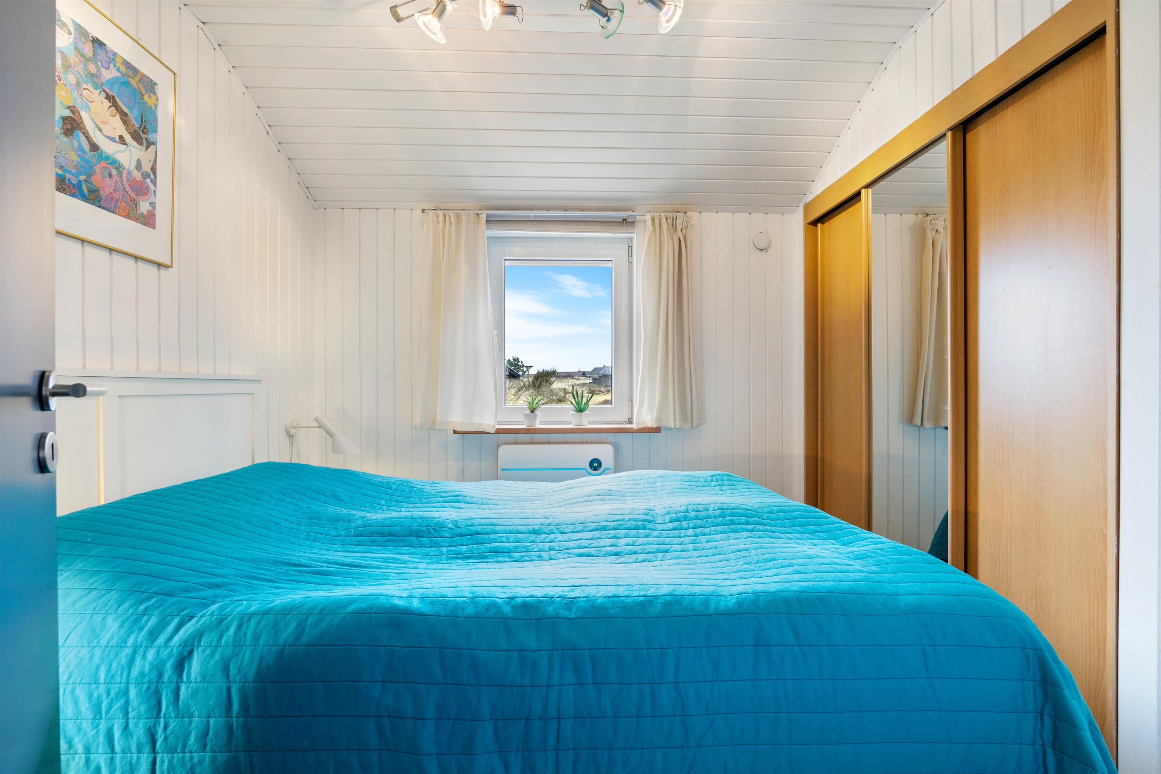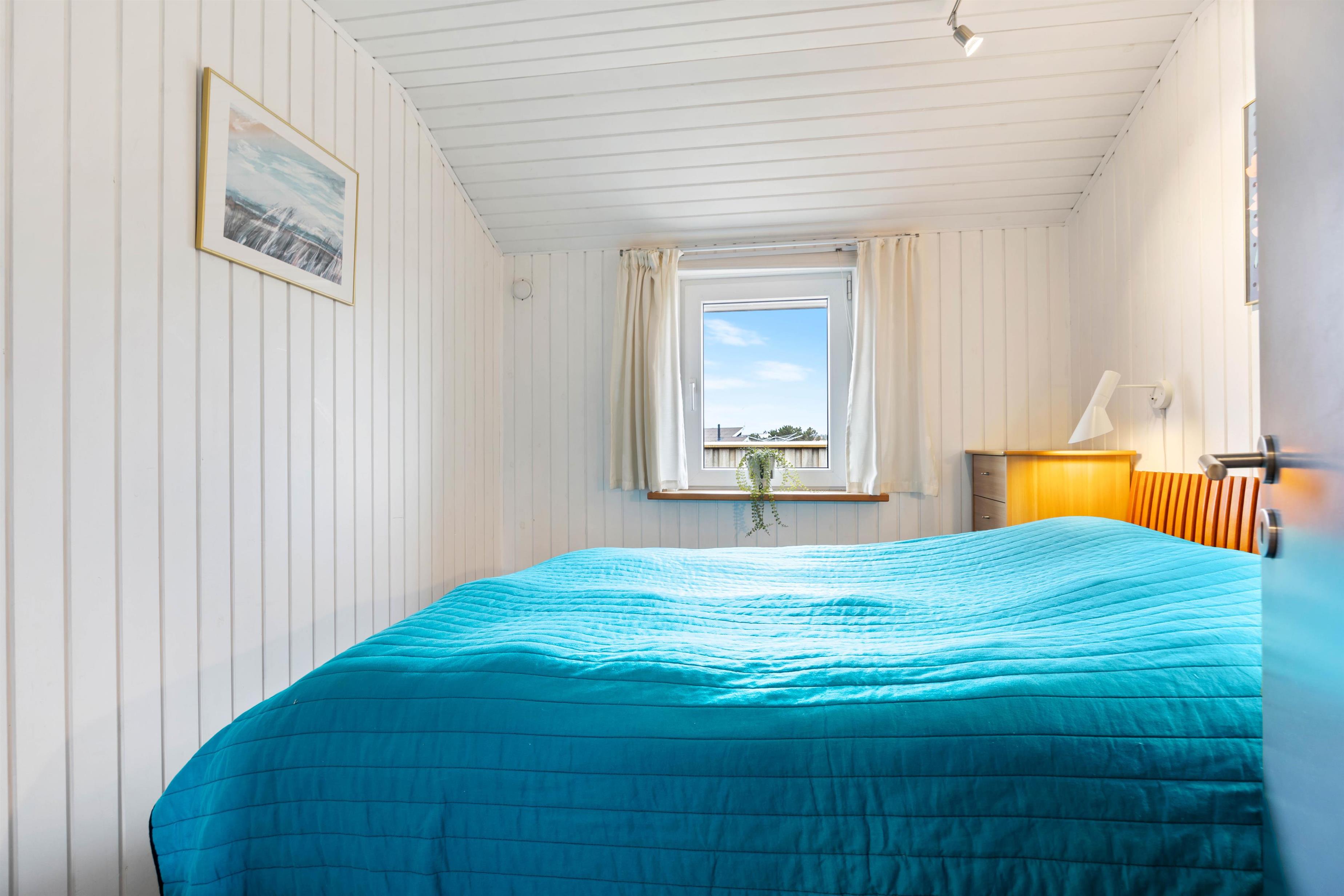 Der er 3 soveværelser, 2 med dobbeltseng og det sidste værelse med 2 enkelt senge. Derudover er der en madras på hemsen.