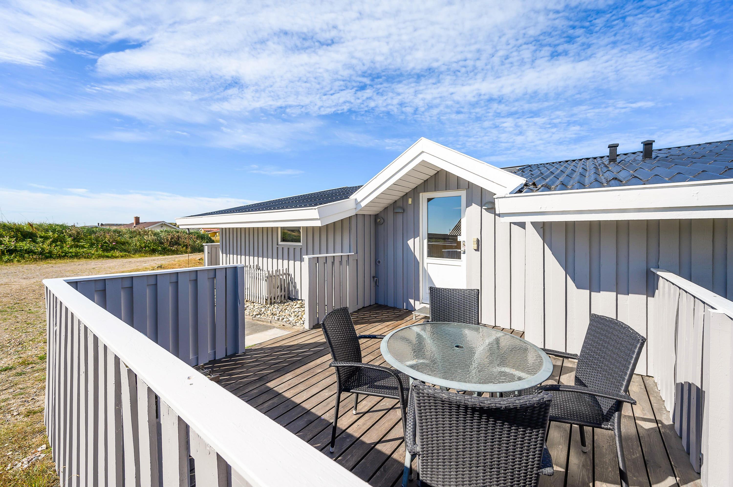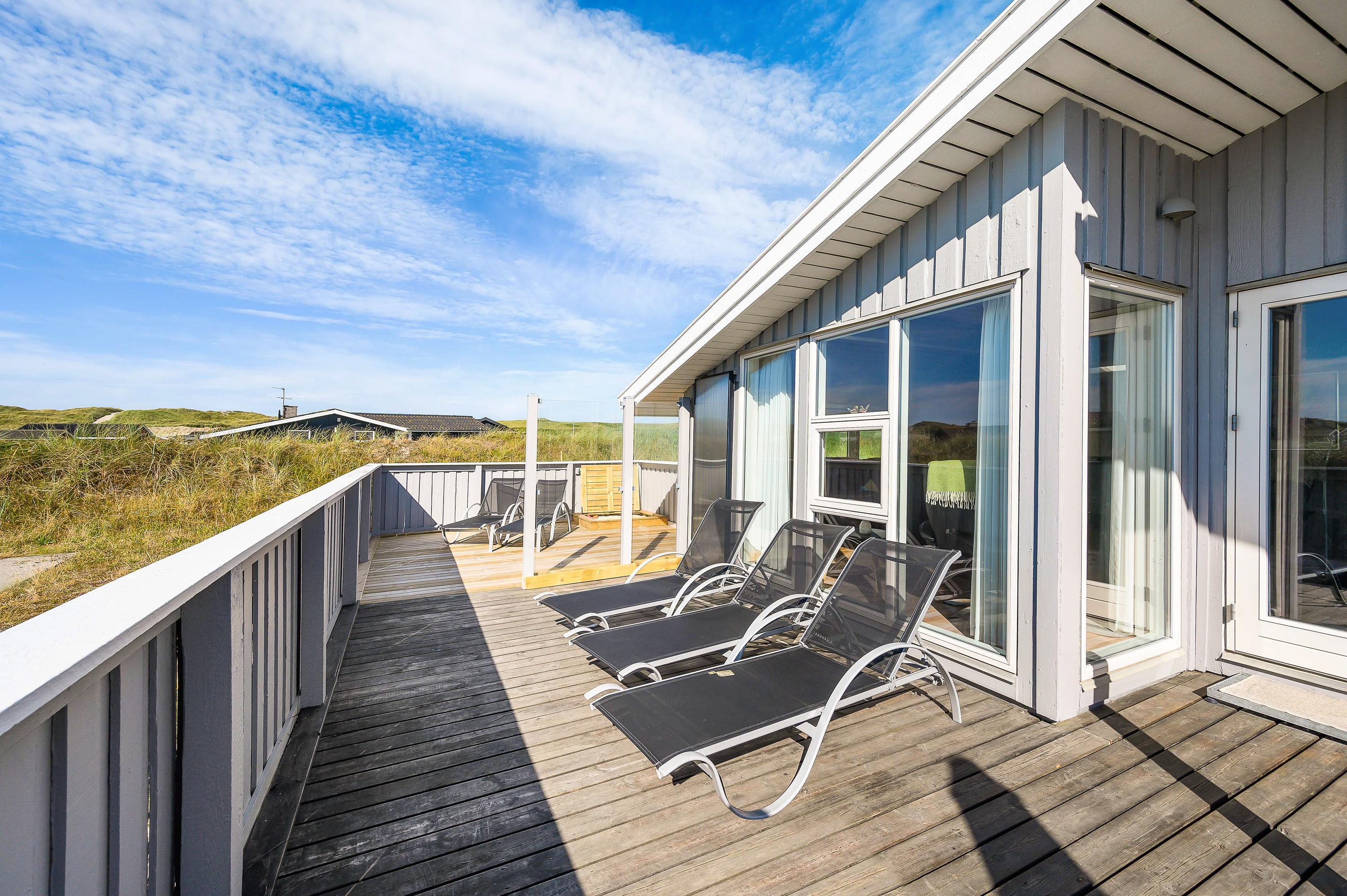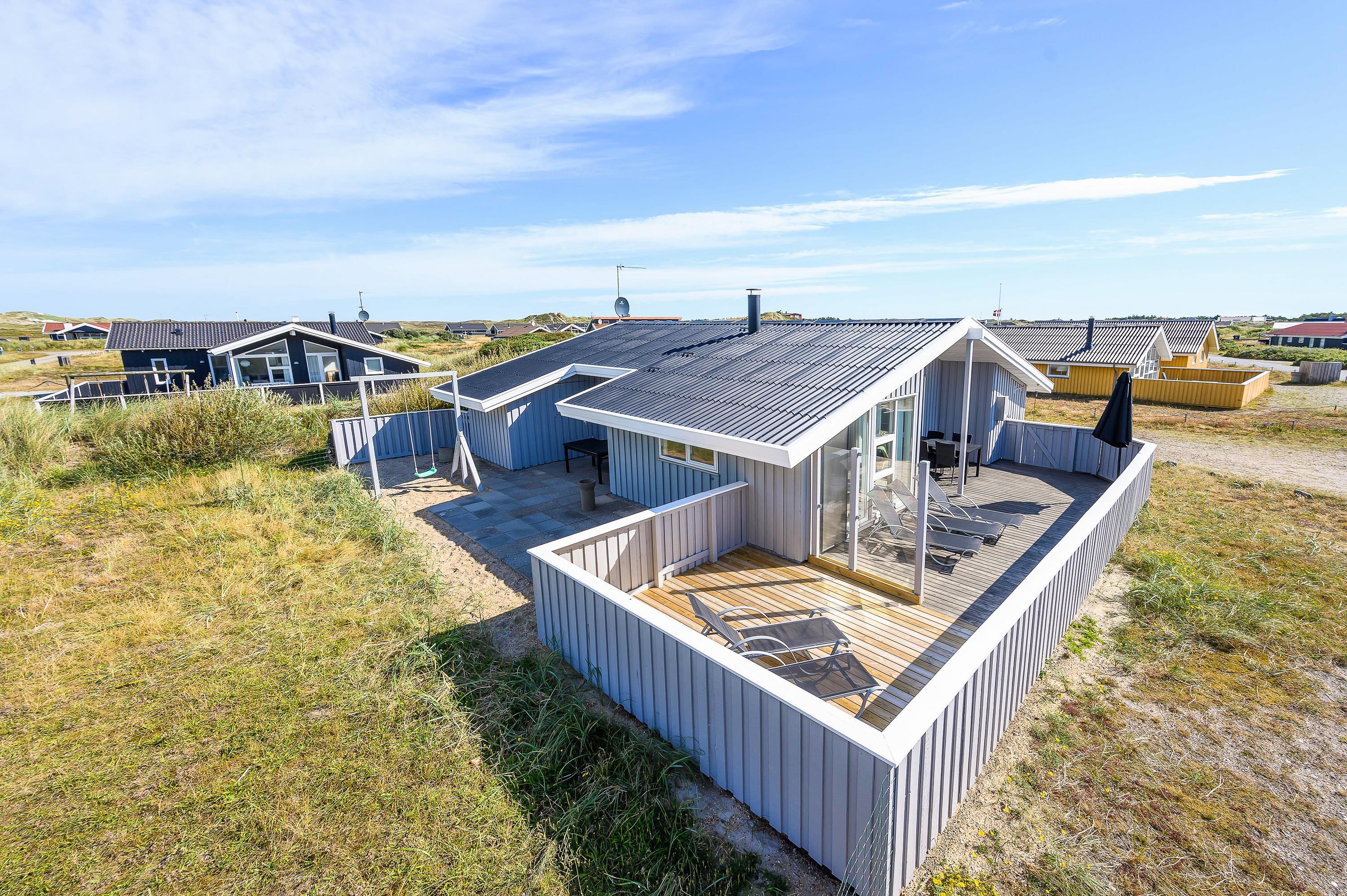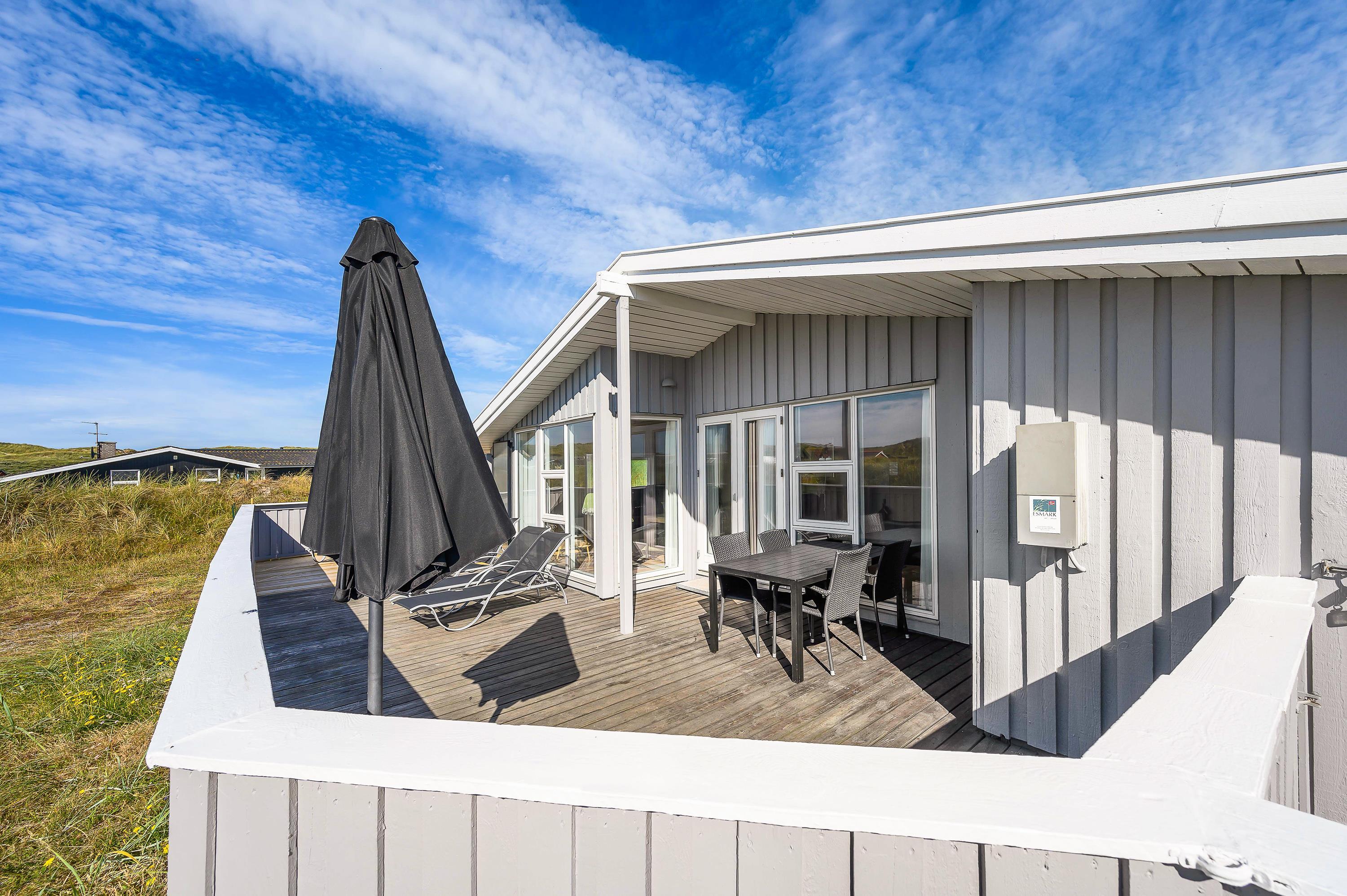 Beliggenheden på Holmsland Klit mellem hav og fjord giver masser af muligheder for aktiviteter f. eks. surfing, lystfiskeri eller vandskiløb (kabelpark) i Hvide Sande – eller hvad med en tur på golfbanen i Søndervig? På de store afskærmede og møblerede terrasser mod øst, syd og vest kan både solen og den friske havluft nydes i ro og fred. For børnene er der både gyngestativ og sandkasse.