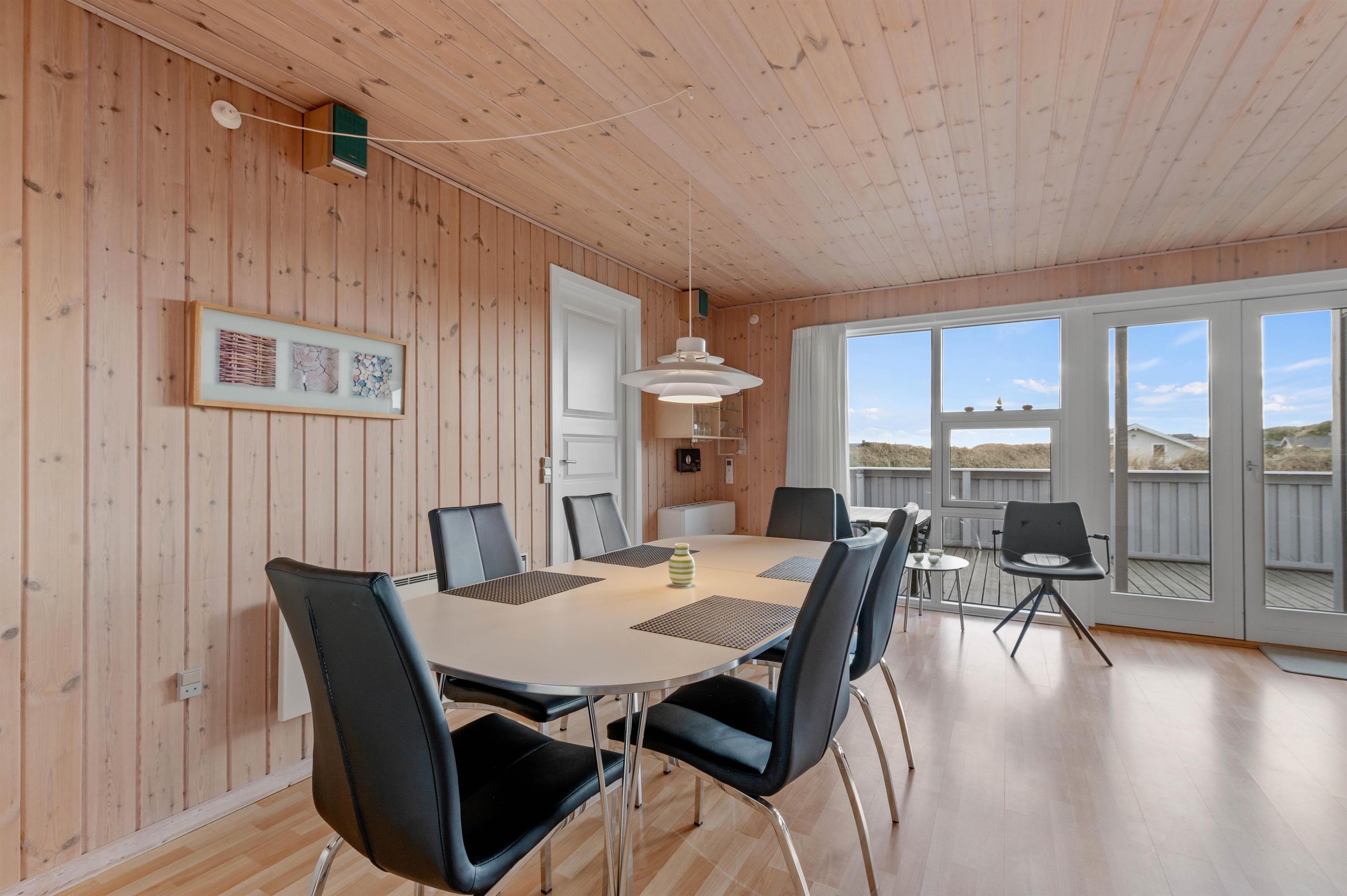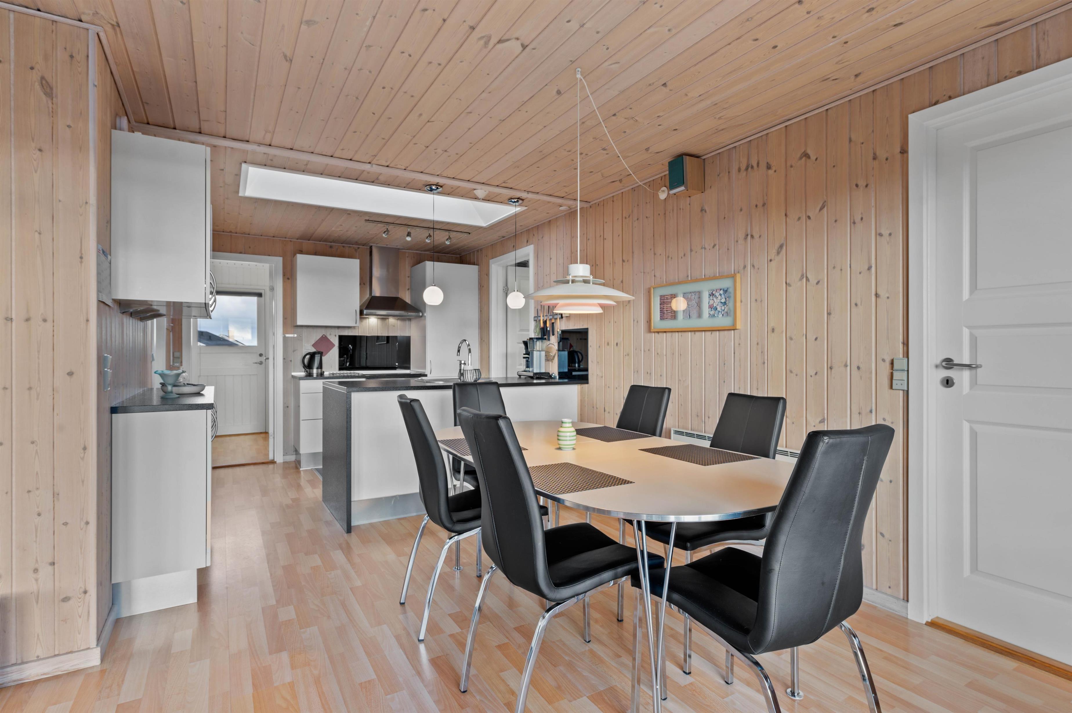 Sommerhusets indretning er overordnet meget lys og venlig med træbeklædte vægge og lofter - her vil I hurtigt føle jer hjemme.