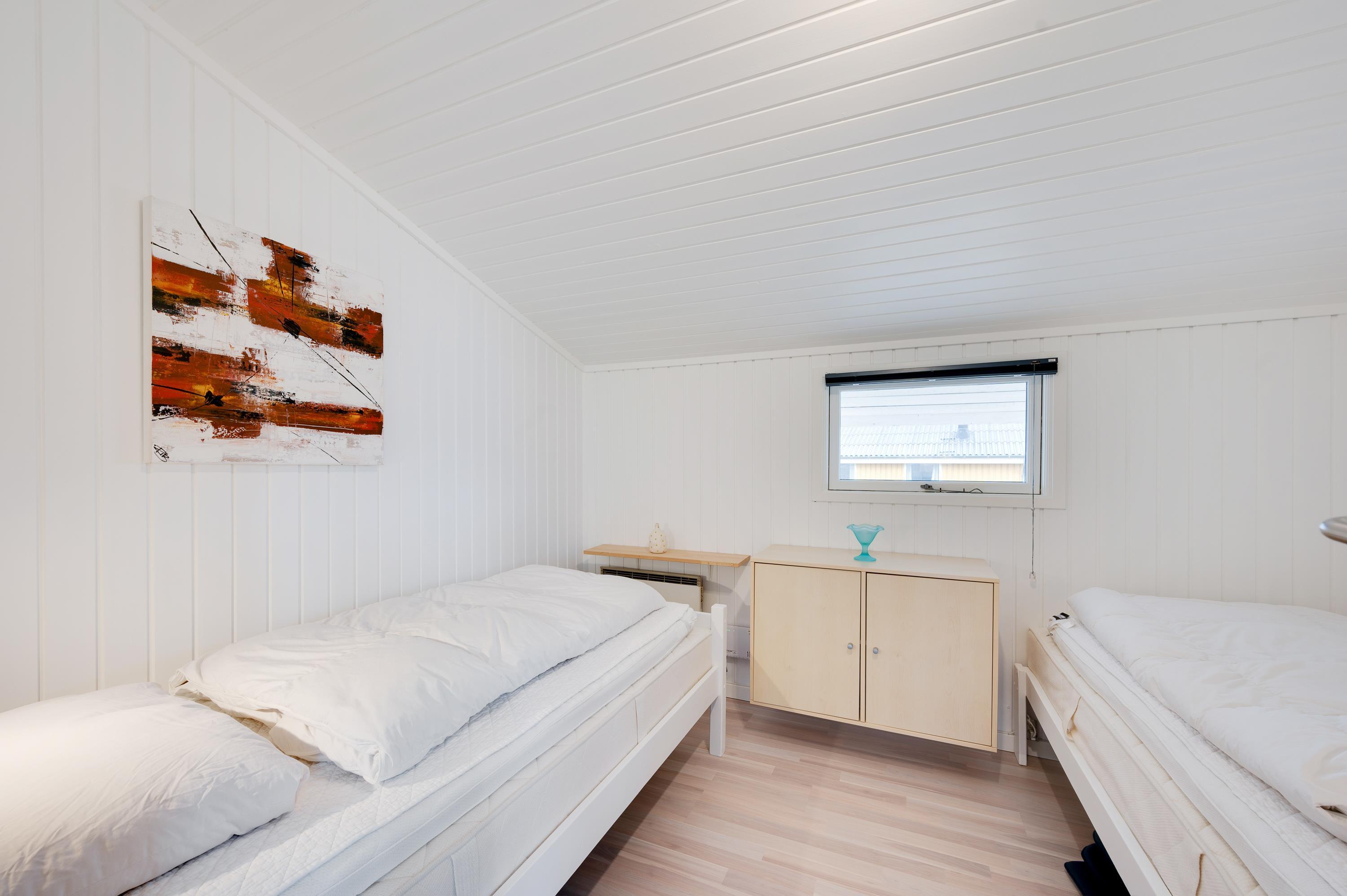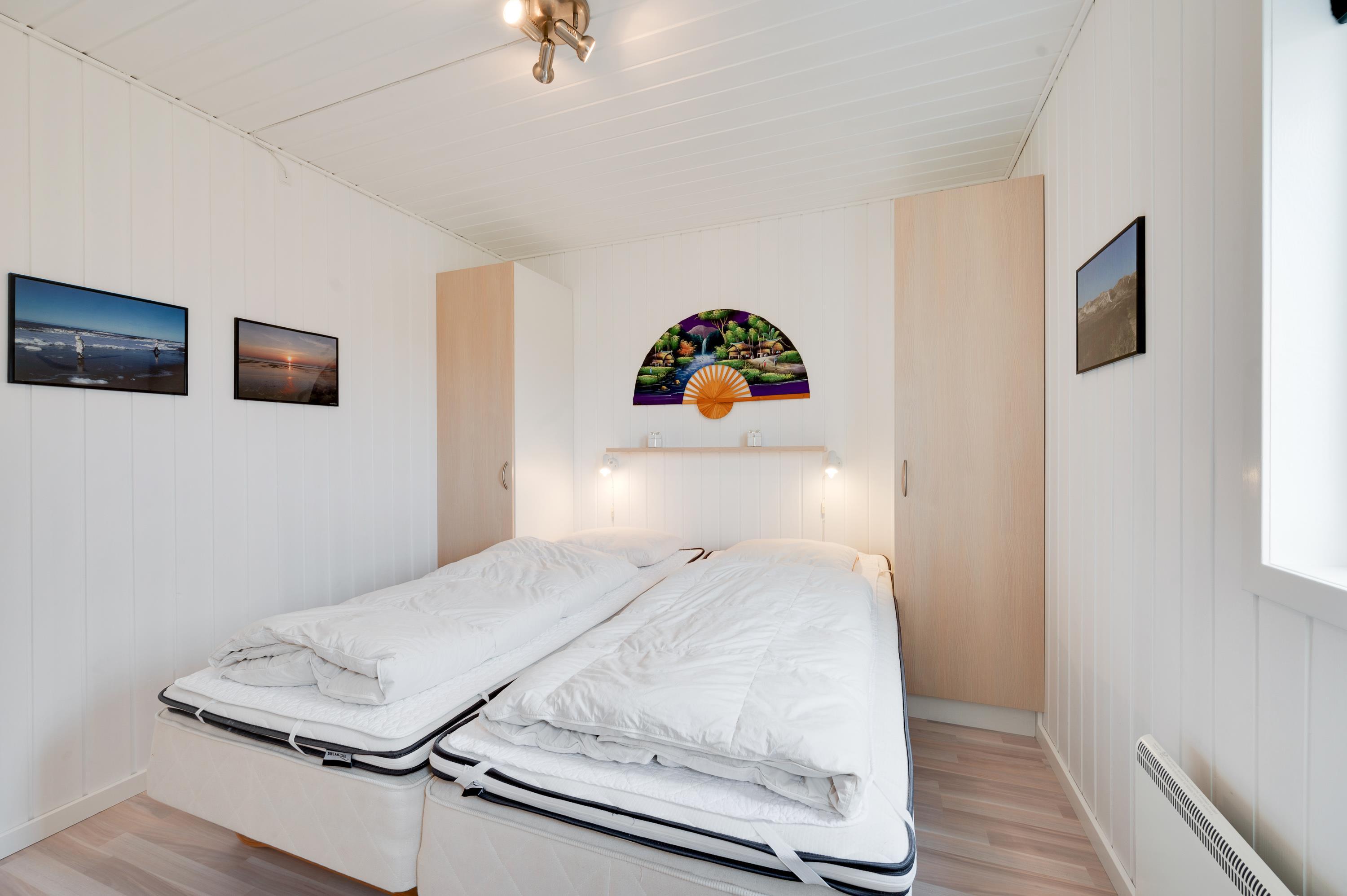 Efter en begivenhedsrig ferie venter 3 soveværelser på jer i sommerhuset, som er udstyret med 2 dobbeltsenge og 2 enkeltsenge. Soveværelserne er også lyse og venlige og tilbyder hyggelige tilflugter til en afslappet nattesøvn.