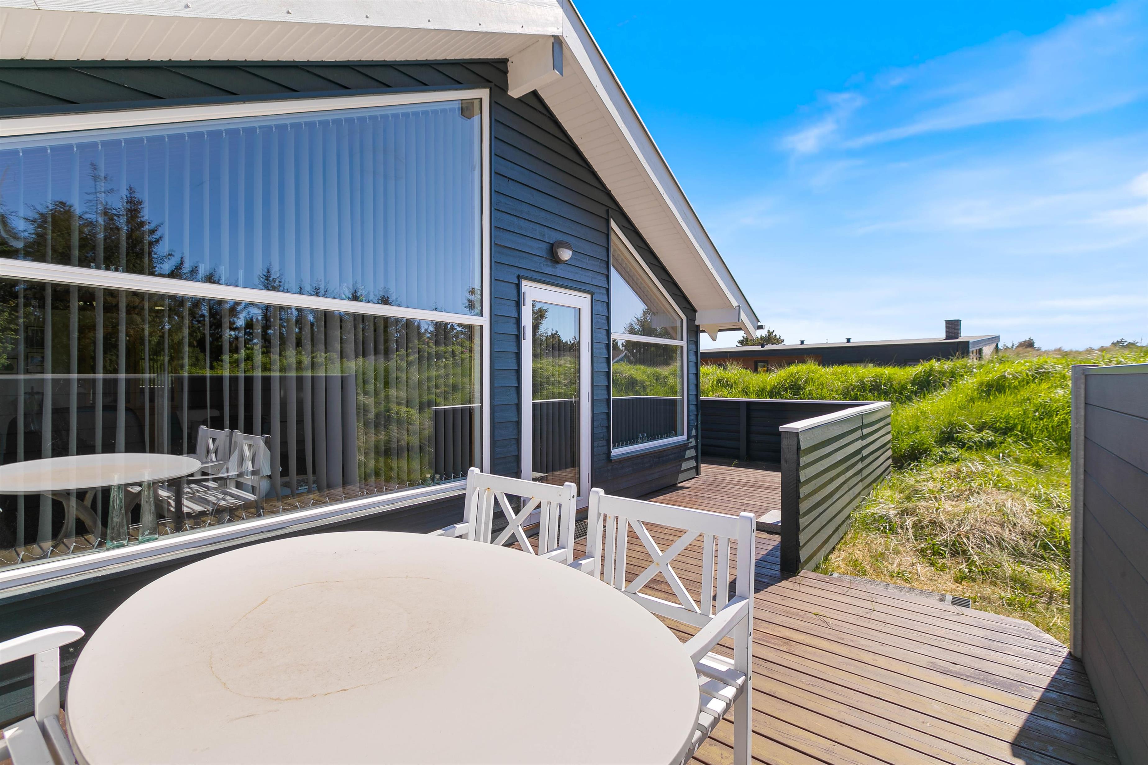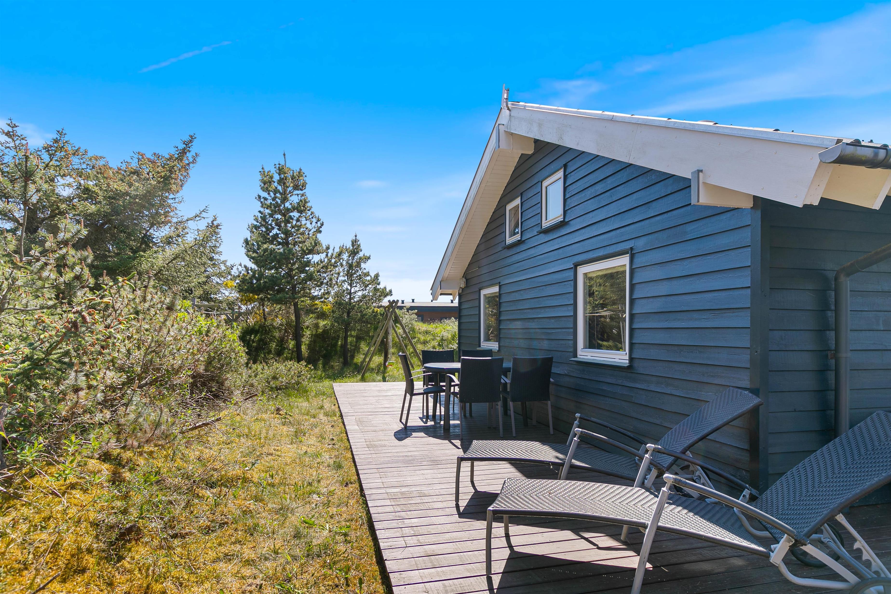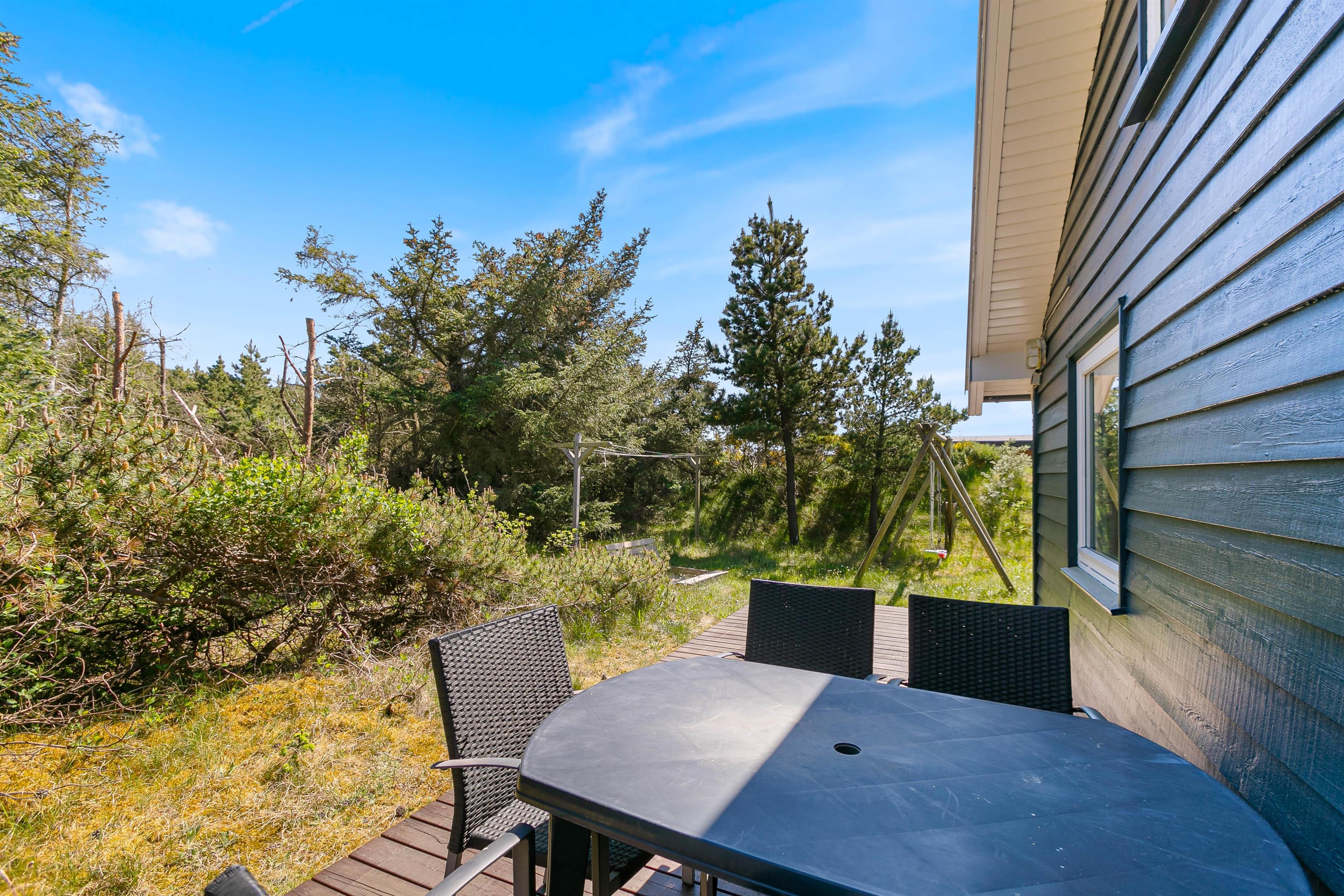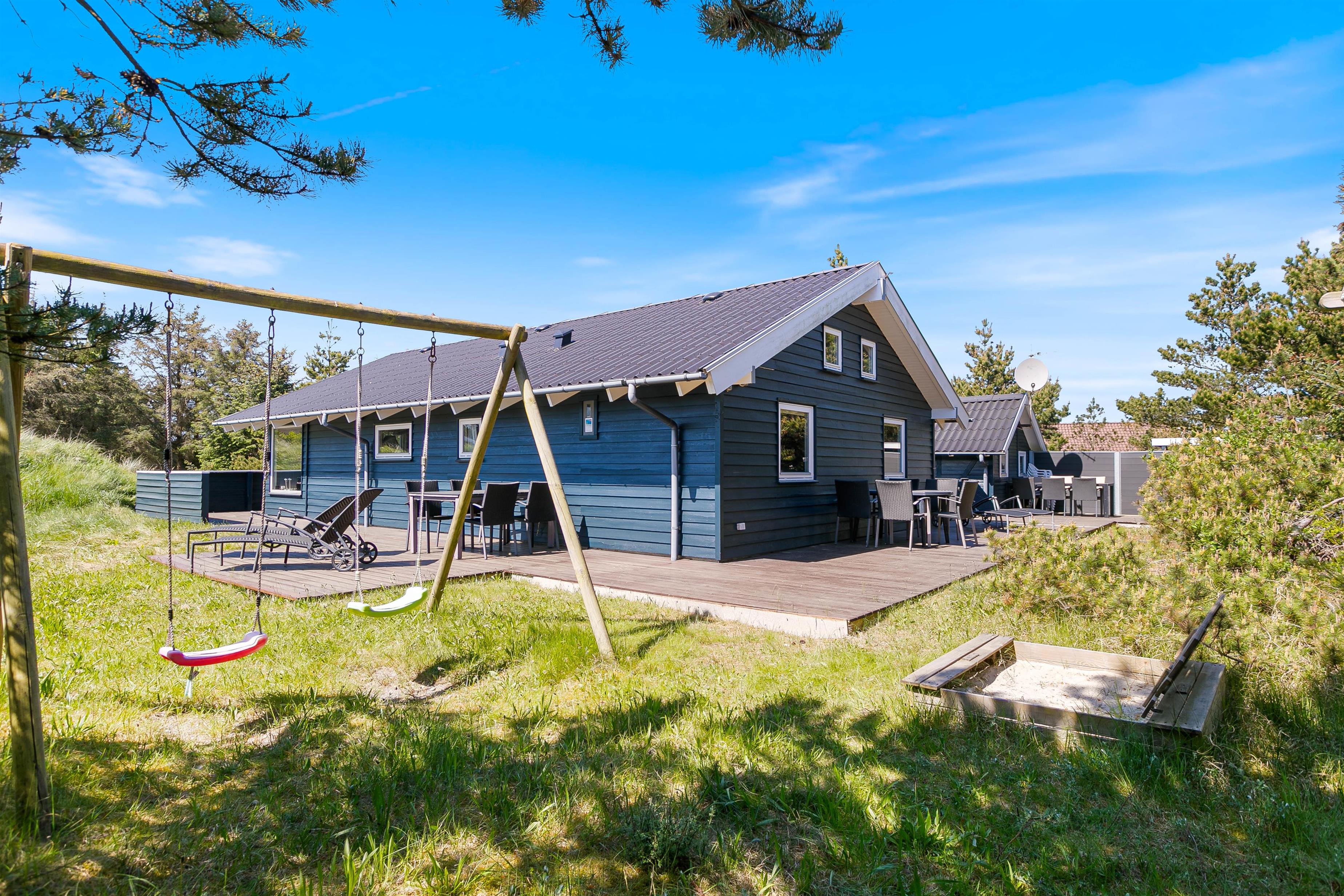 Terrasserne er placeret med omhu omkring feriehuset, hvilket giver god mulighed for at være i sol, i skygge eller i læ for vinden. De er godt møbleret, så I kan nyde ferien i fulde drag. Nyd solskinstimerne med en god bog, tilbered et lækkert måltid på grillen og lad børnene lege – her er både sandkasse og gynger opsat.