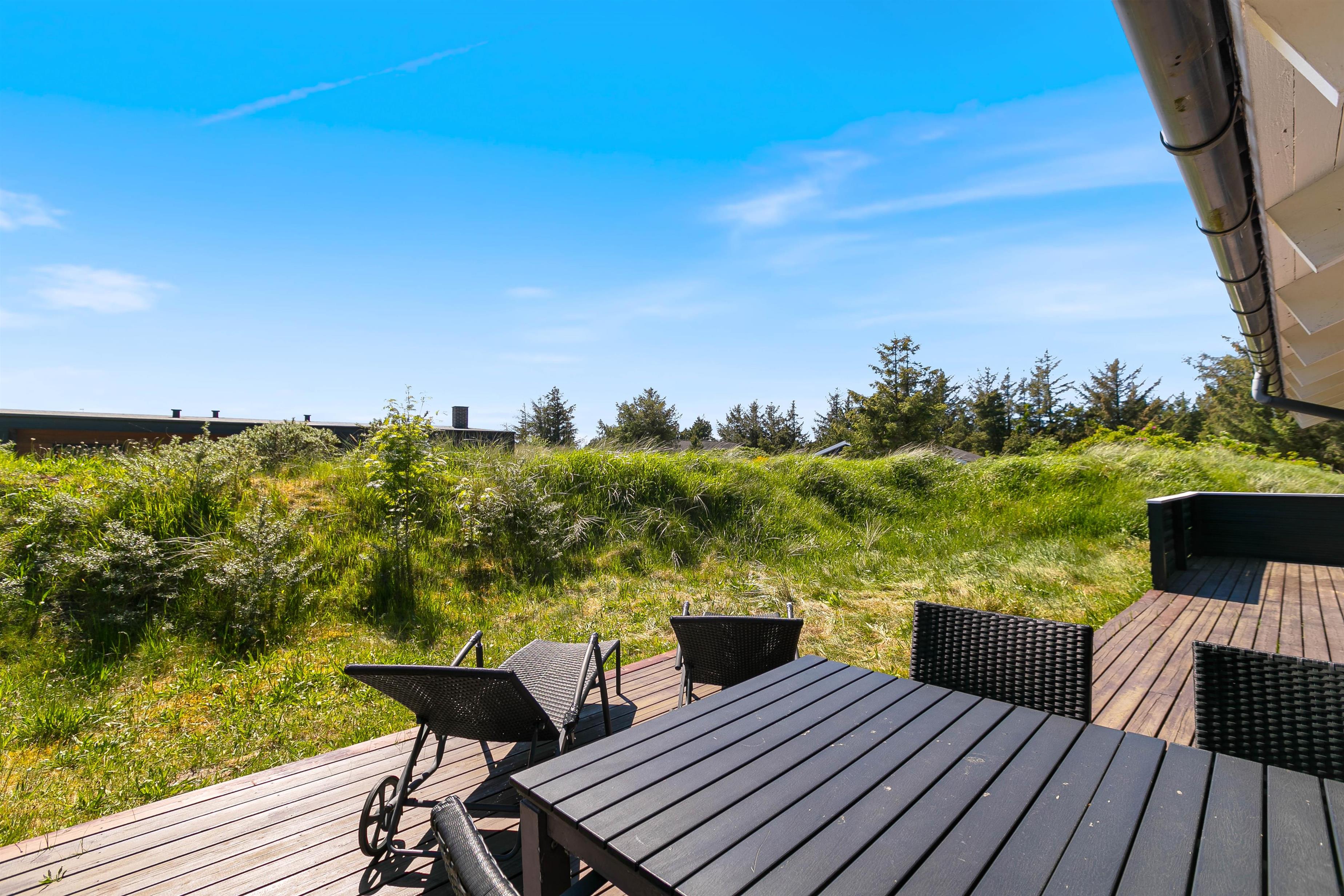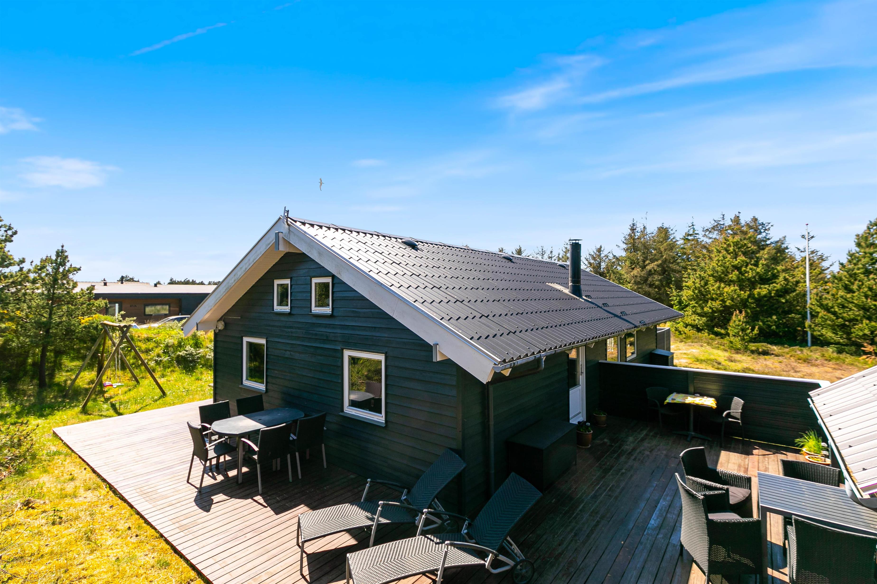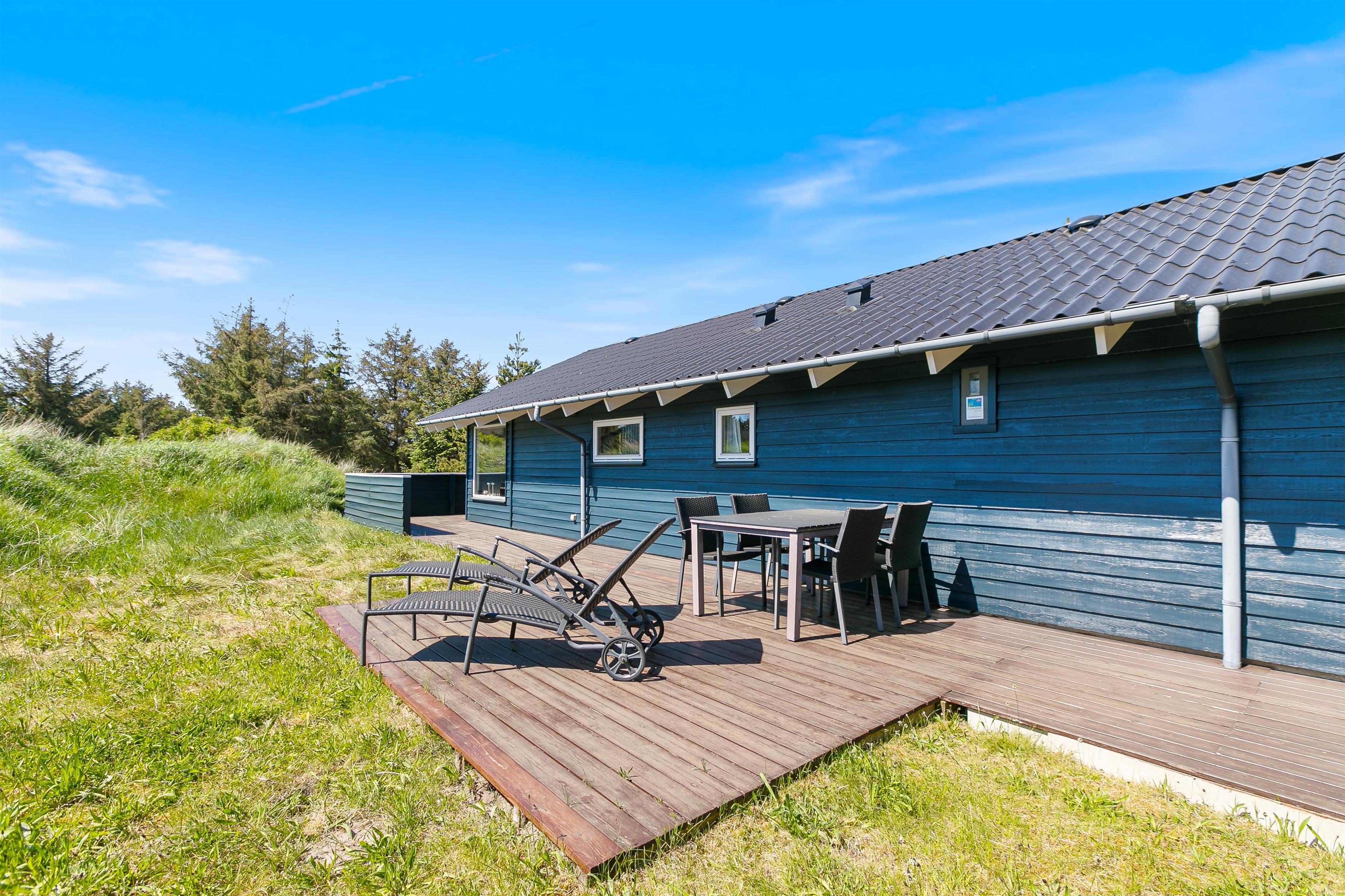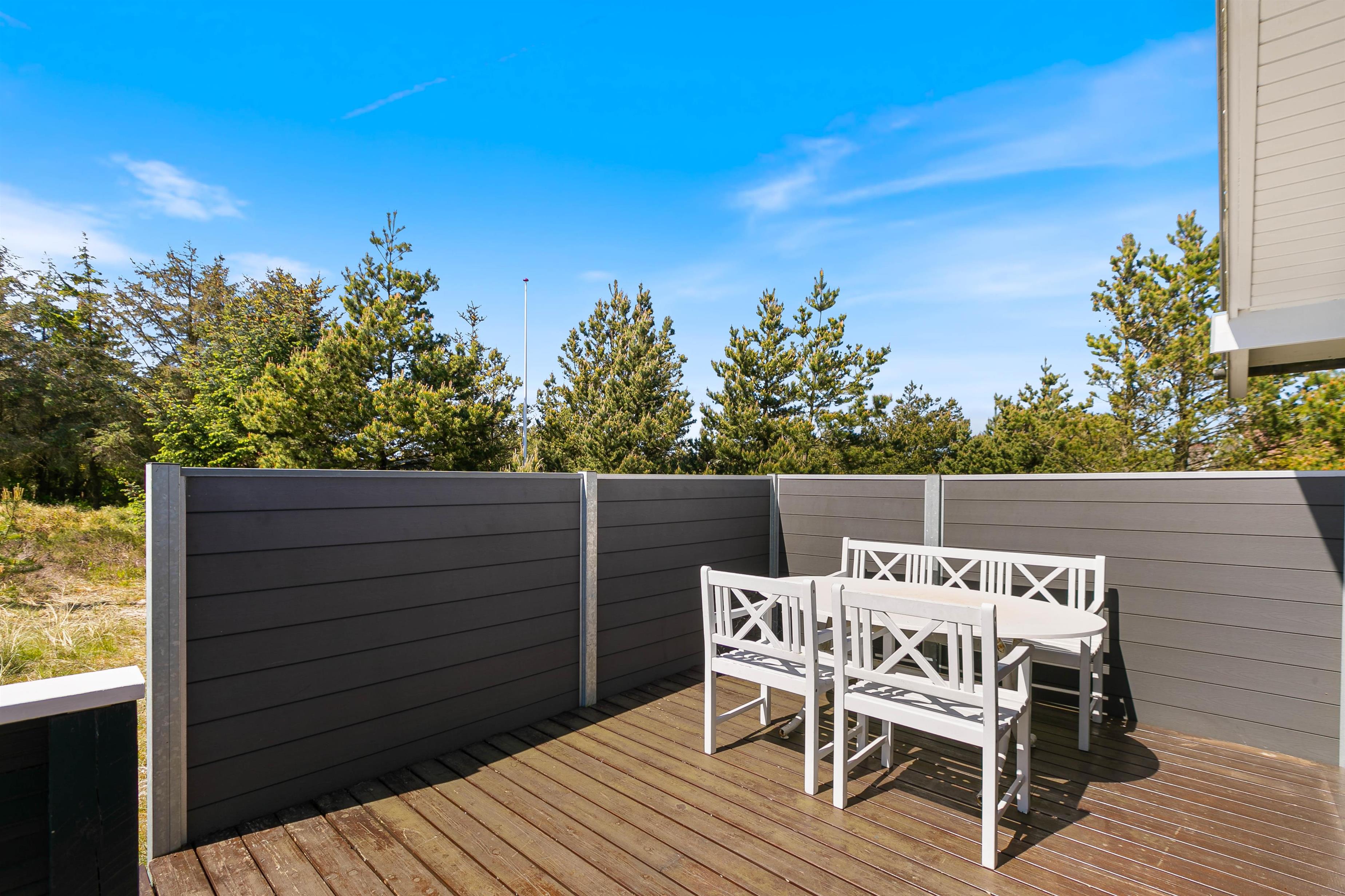 Terrasserne er placeret med omhu omkring feriehuset, hvilket giver god mulighed for at være i sol, i skygge eller i læ for vinden. De er godt møbleret, så I kan nyde ferien i fulde drag. Nyd solskinstimerne med en god bog, tilbered et lækkert måltid på grillen og lad børnene lege – her er både sandkasse og gynger opsat.
