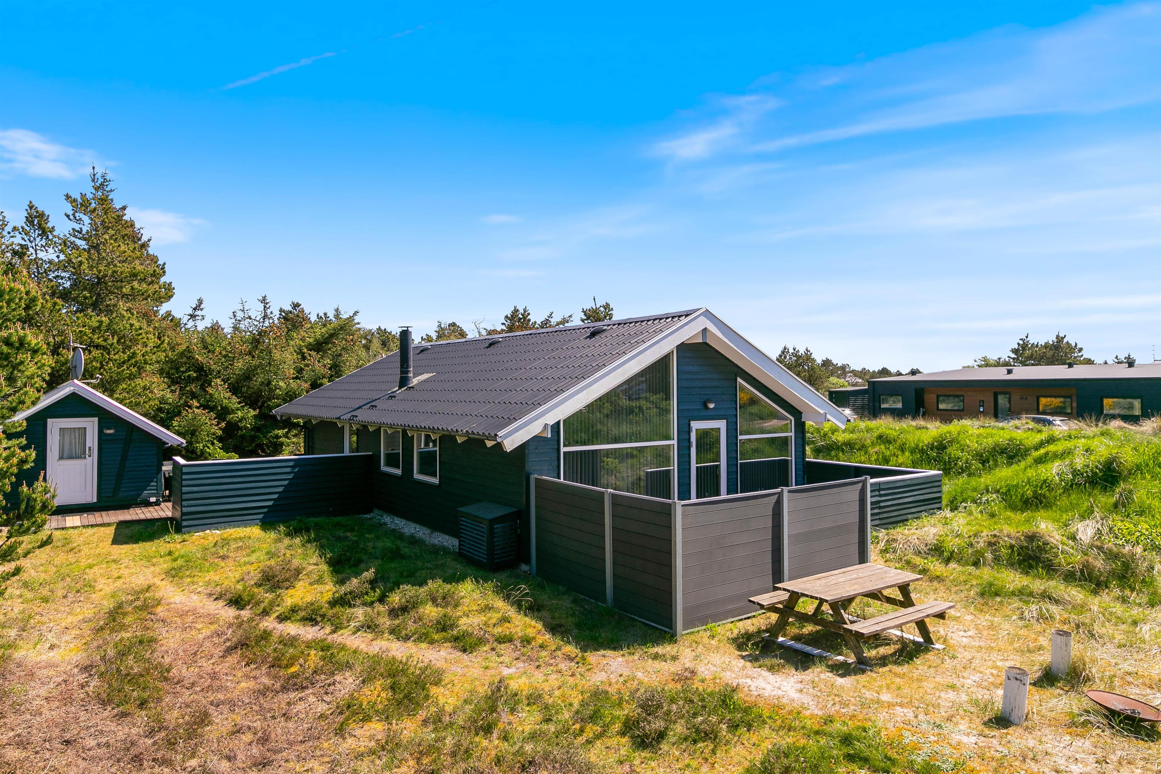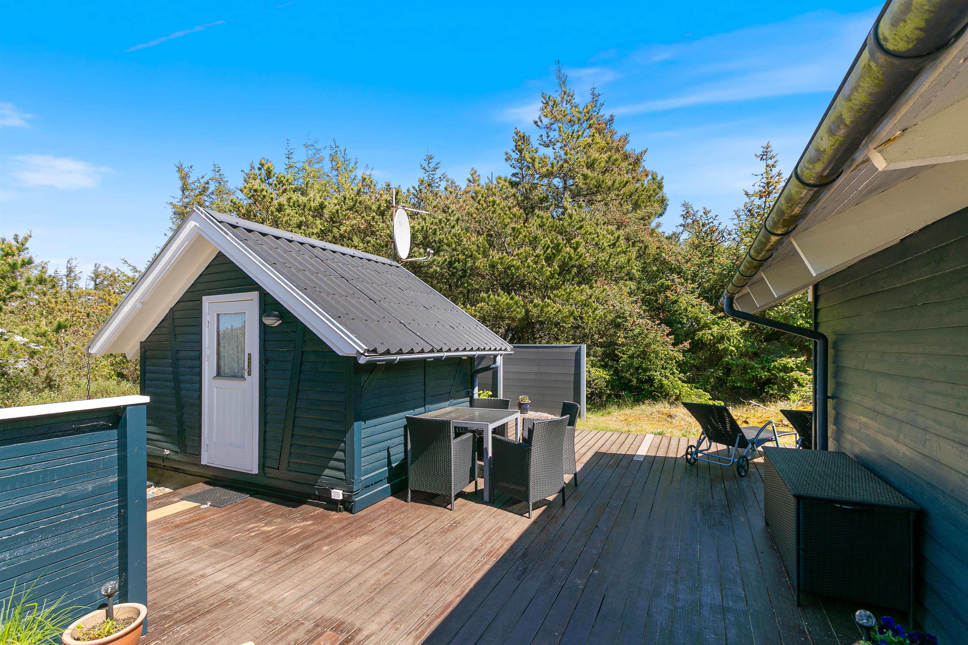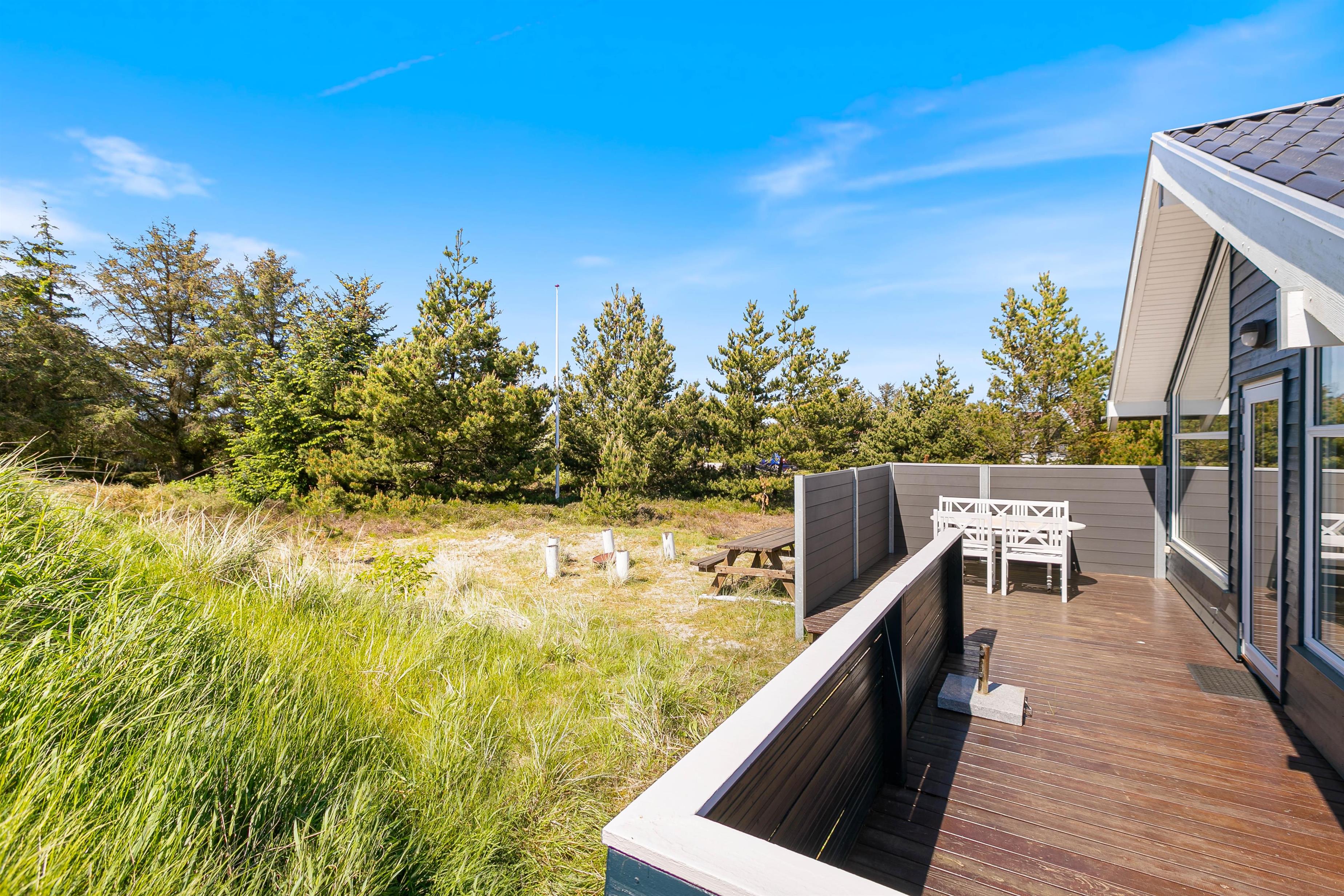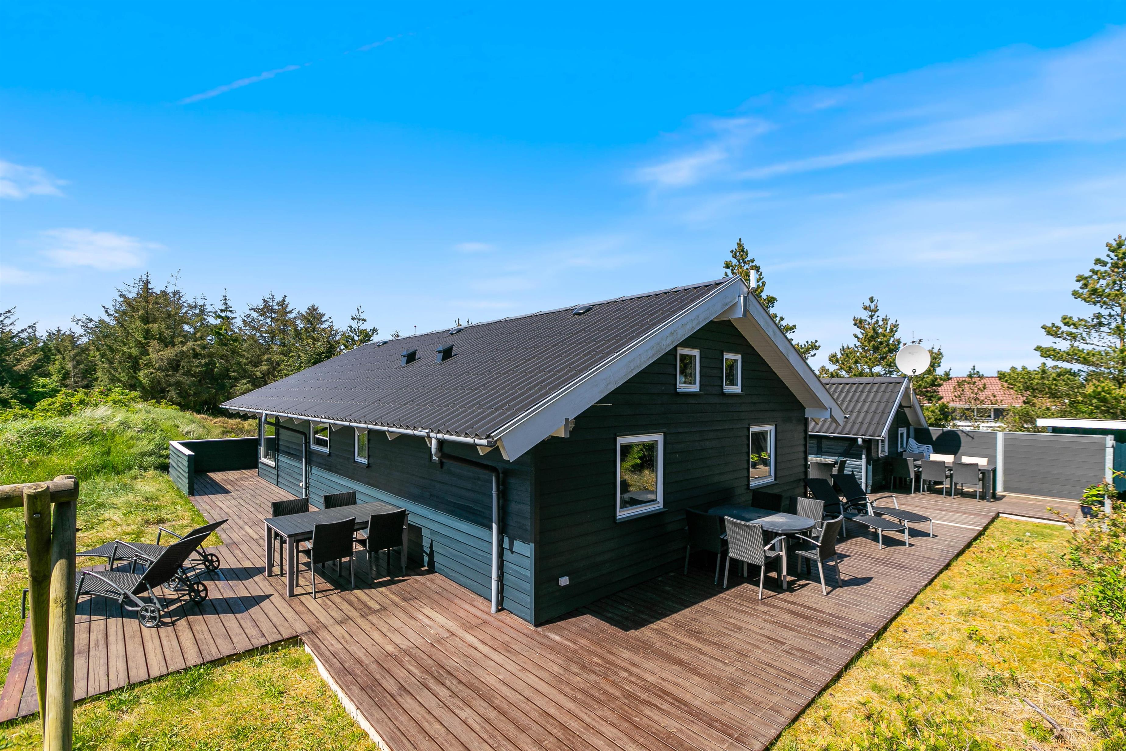 Terrasserne er placeret med omhu omkring feriehuset, hvilket giver god mulighed for at være i sol, i skygge eller i læ for vinden. De er godt møbleret, så I kan nyde ferien i fulde drag. Nyd solskinstimerne med en god bog, tilbered et lækkert måltid på grillen og lad børnene lege – her er både sandkasse og gynger opsat.