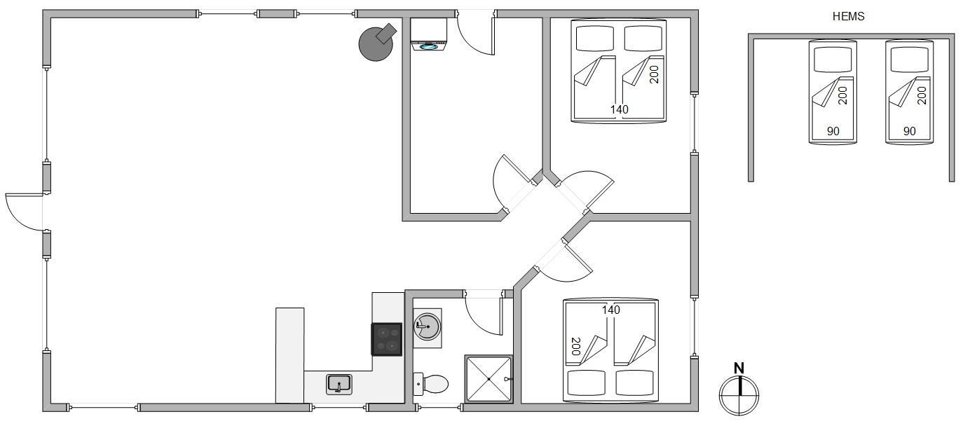 I får et godt veludstyret feriehjem, hvor der bestemt ikke mangler noget; alle hverdagens hjælpere står klar til at gøre ferien så afslappende og ukompliceret som muligt. Efter maden står opvaskemaskinen for opvasken, og vaskemaskinen og tørretumbleren bliver et hit blandt børnefamilierne. Blandt familiens store børn bliver hemsen helt sikkert også et hit – heroppe findes 2 af feriehusets sovepladser, mens de resterende 4 er fordelt på 2 værelser.