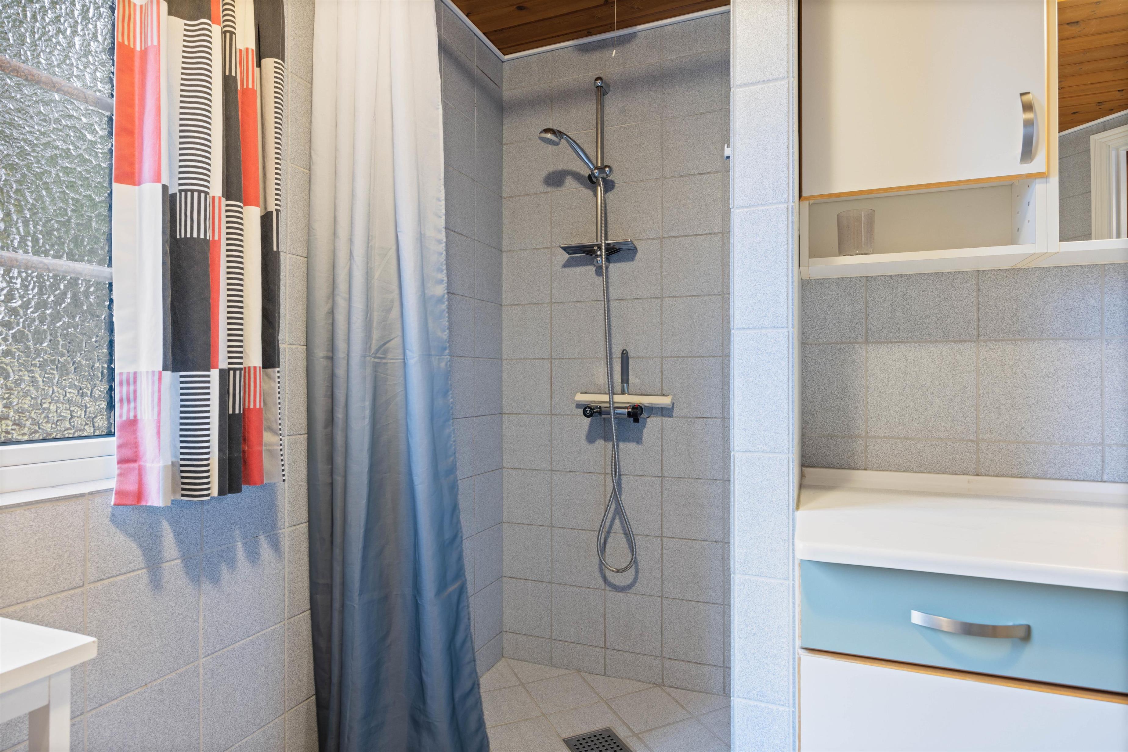 Sommerhuset har 3 fine dobbeltværelser med komfortable senge og på badeværelset er der gulvvarme og en sauna. Desuden er der en vaskemaskine, så I kan vaske tøj, hvis det bliver nødvendigt.