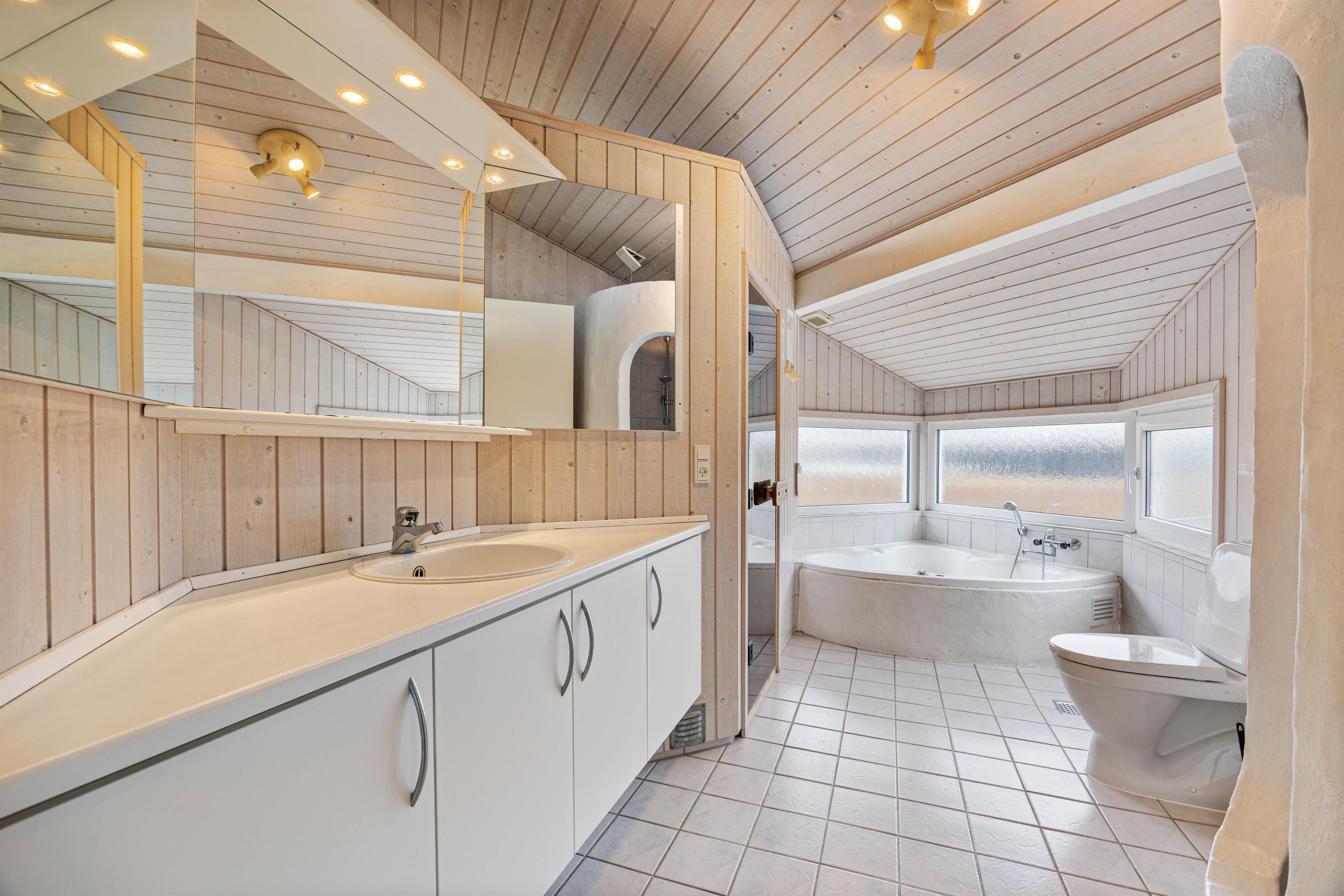 Når I vil skrue op for forkælelsen, har sommerhuset både sauna og tømmespa, så du kan give kroppen en velfortjent pause. Med 2 badeværelser undgår I kø om morgenen, og gulvvarme i badeværelset giver en ekstra behagelig start på dagen, uanset årstid.