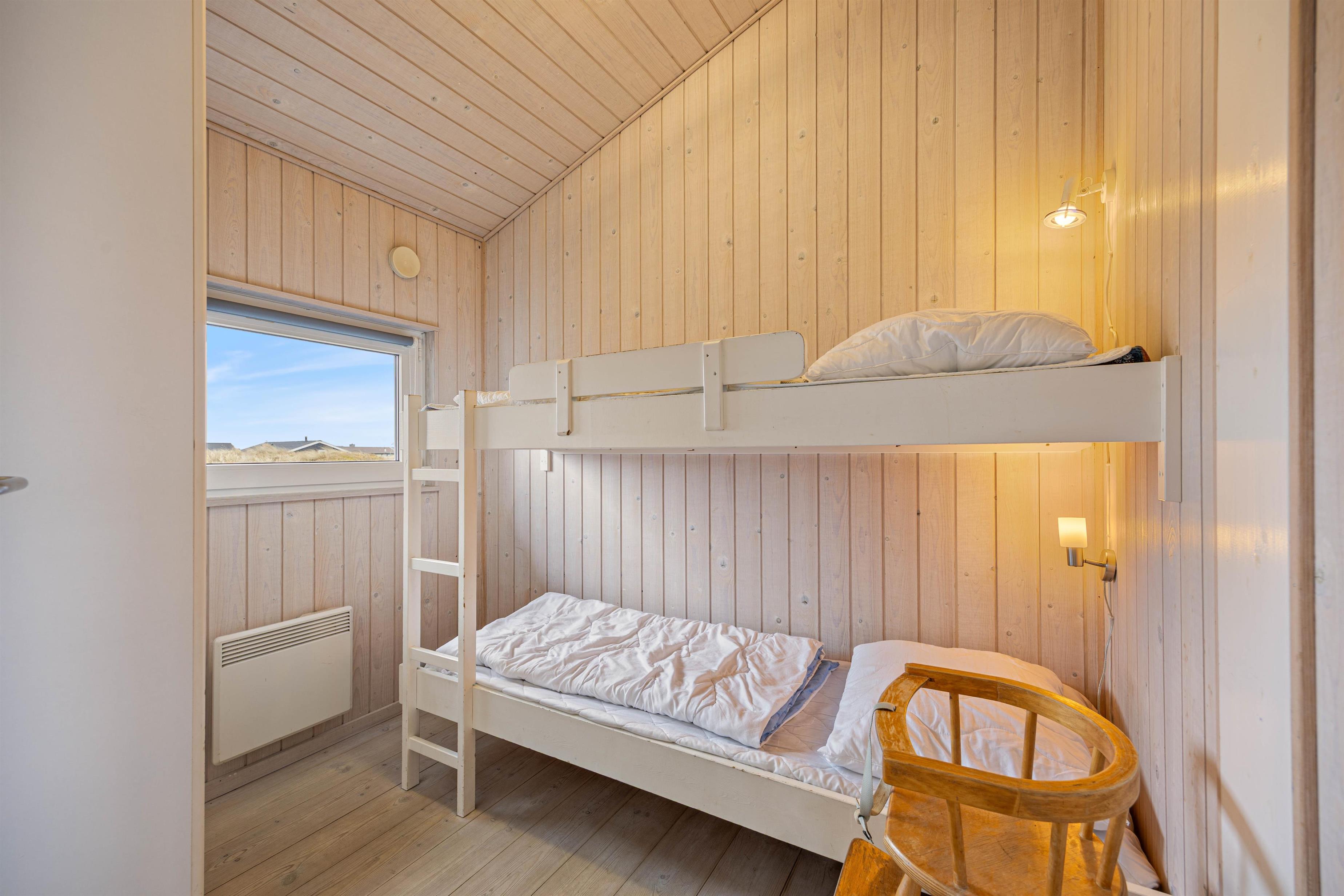Sommerhuset har 4 soverum, så I kan fordele jer på en måde, der passer til jeres behov. Her er 2 dobbeltsenge, 2 enkeltsenge, samt 1 køjeseng, som ofte er et hit hos de yngste. Med denne fordeling er det let at skabe en ferie, hvor alle kan finde ro.