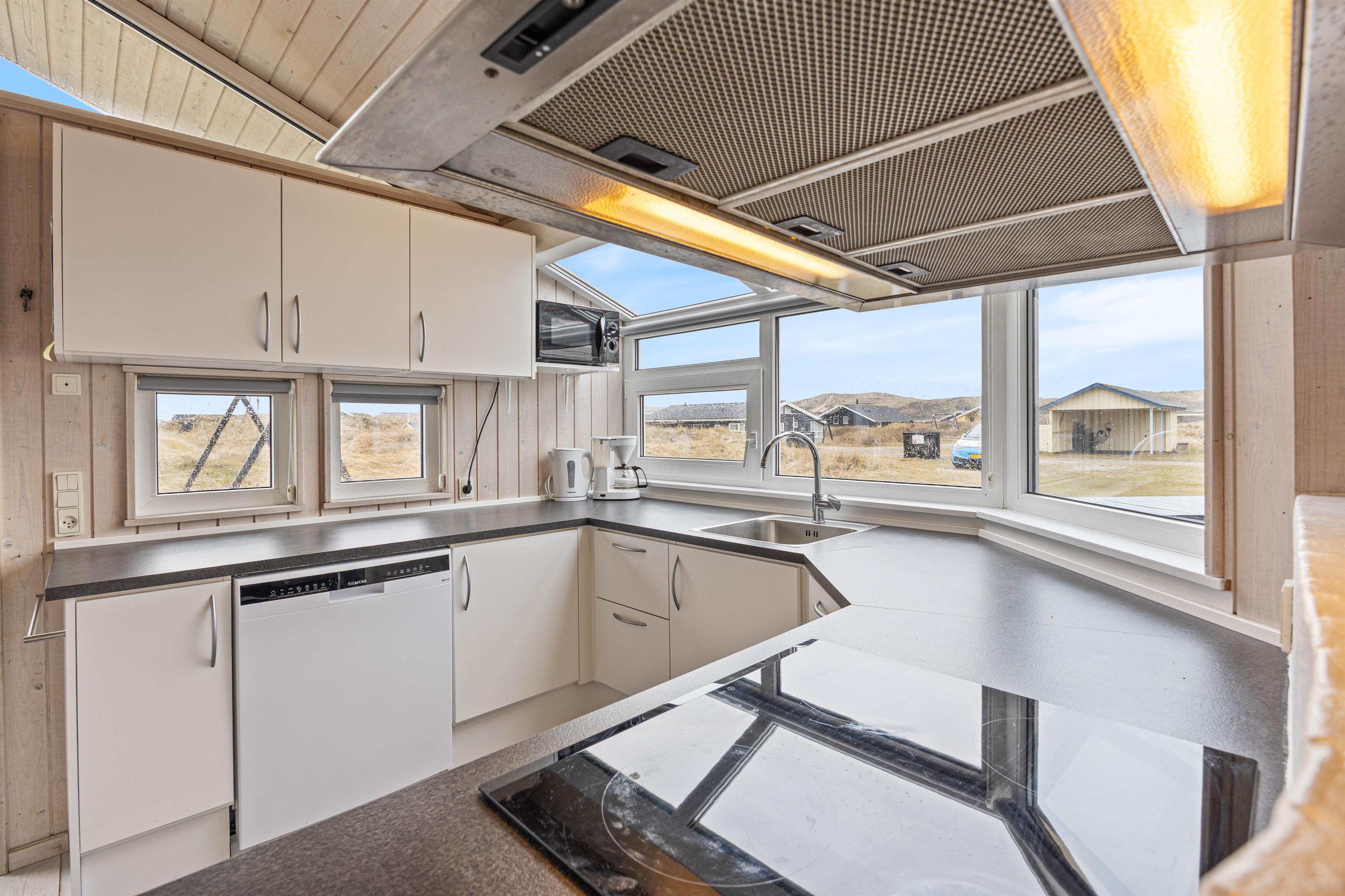 Indenfor får du en indretning, der passer perfekt til ferie i alle sæsoner. Brændeovnen skaber en hyggelig stemning på kølige dage, mens Chromecast gør det let at samle jer til en filmaften efter en aktiv dag. Når I er mange, betyder de praktiske detaljer ekstra meget: Opvaskemaskinen hjælper i køkkenet, og både vaskemaskine og tørretumbler gør det nemt at holde styr på håndklæder og overtøj, især hvis vejret viser sig fra sin mere vilde side.