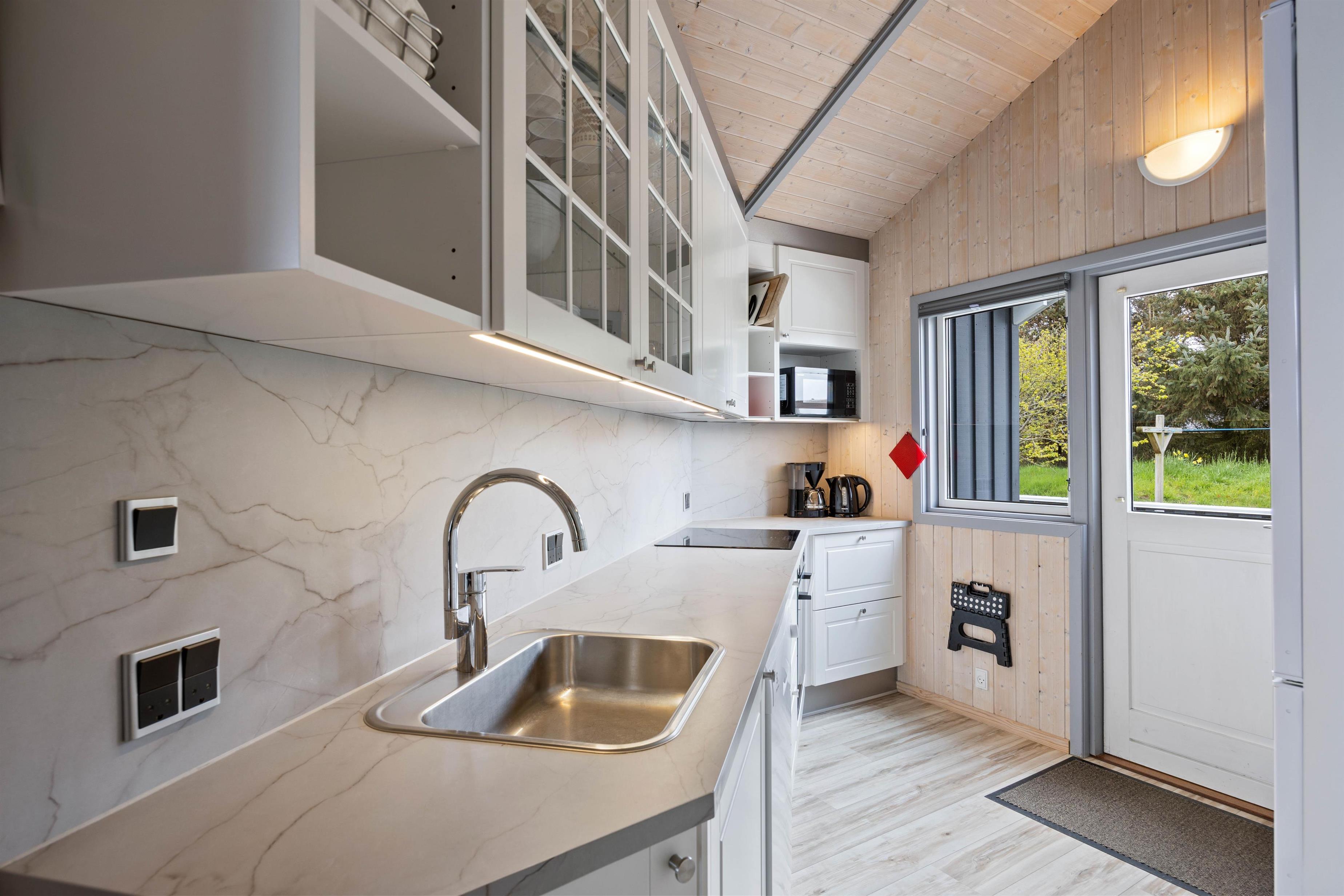 Dette moderne sommerhus er velindrettet og skaber de idelle rammer for en afslappende og behagelig ferie. Forkælelsen er helt i top, da spabadet og saunaen sørger for glæde og afslapning til hele familien.