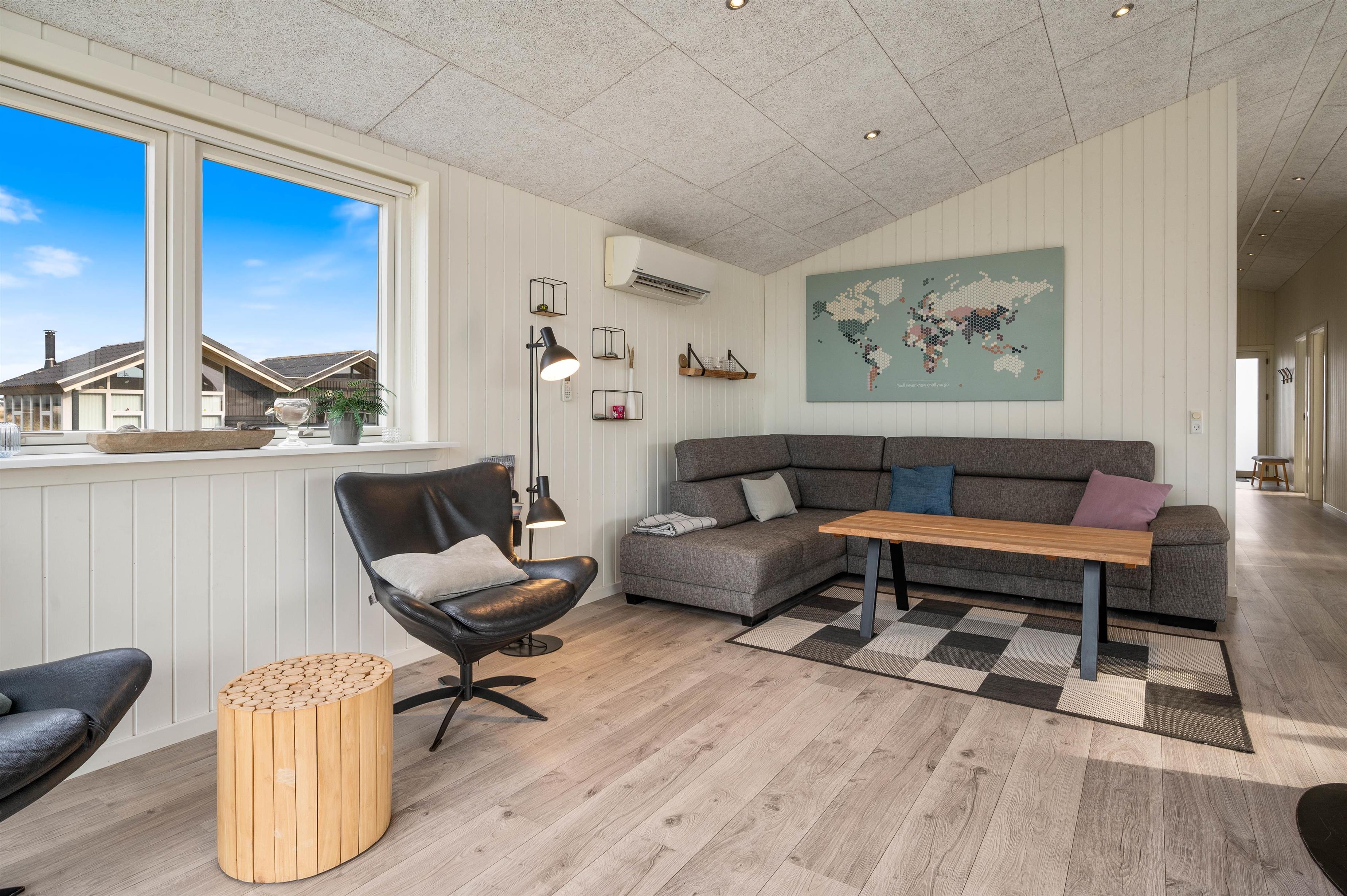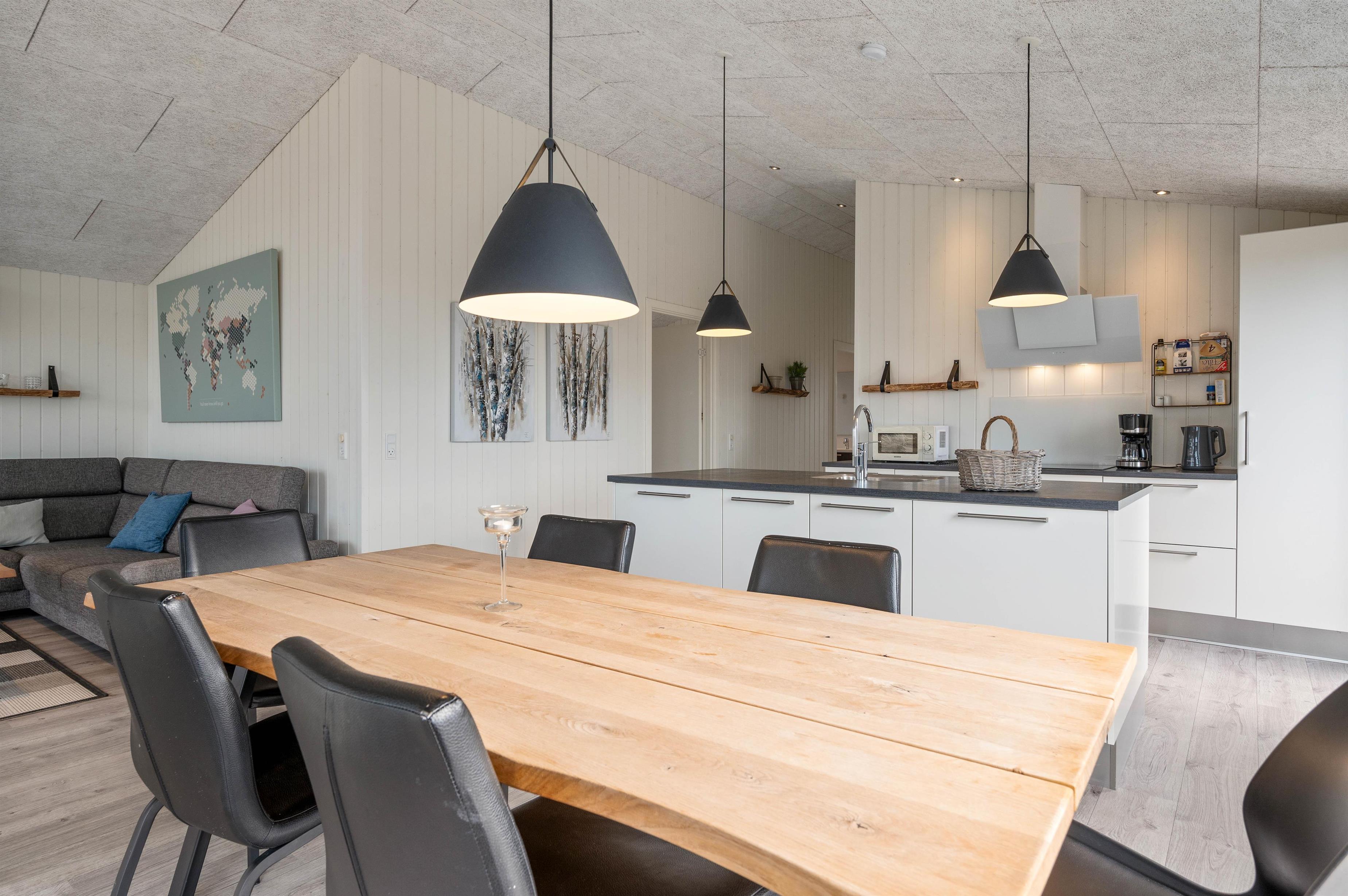 På Arvidvej 308 er der tænkt over tingene, og feriehuset fremstår lyst og indbydende allerede ved første øjekast. Så snart I træder indenfor, vil I blive mødt af den moderne indretning, og med højt til loftet og 112 m² at brede sig på, er der mere end god plads til seks personer og evt. to hunde.