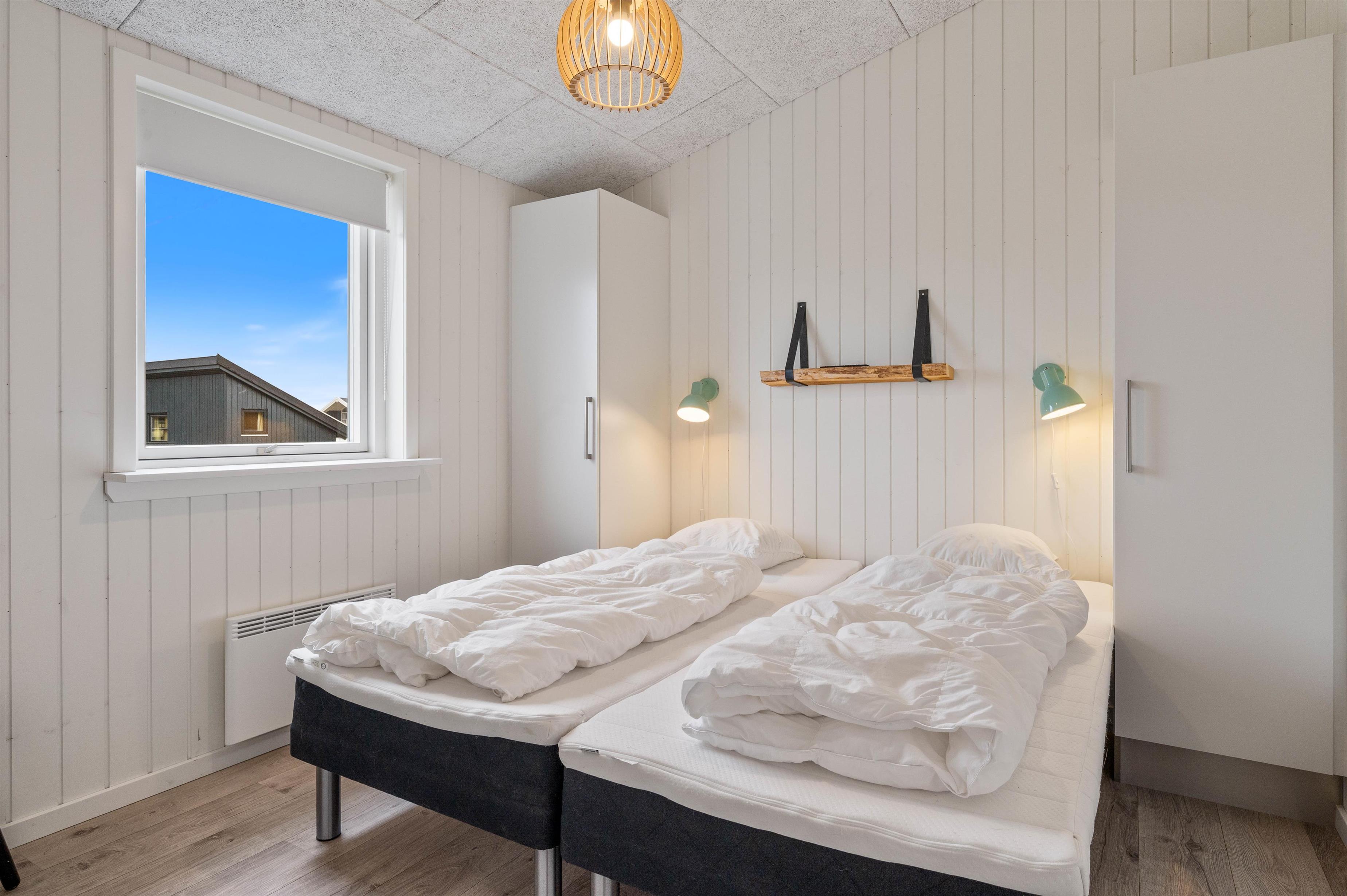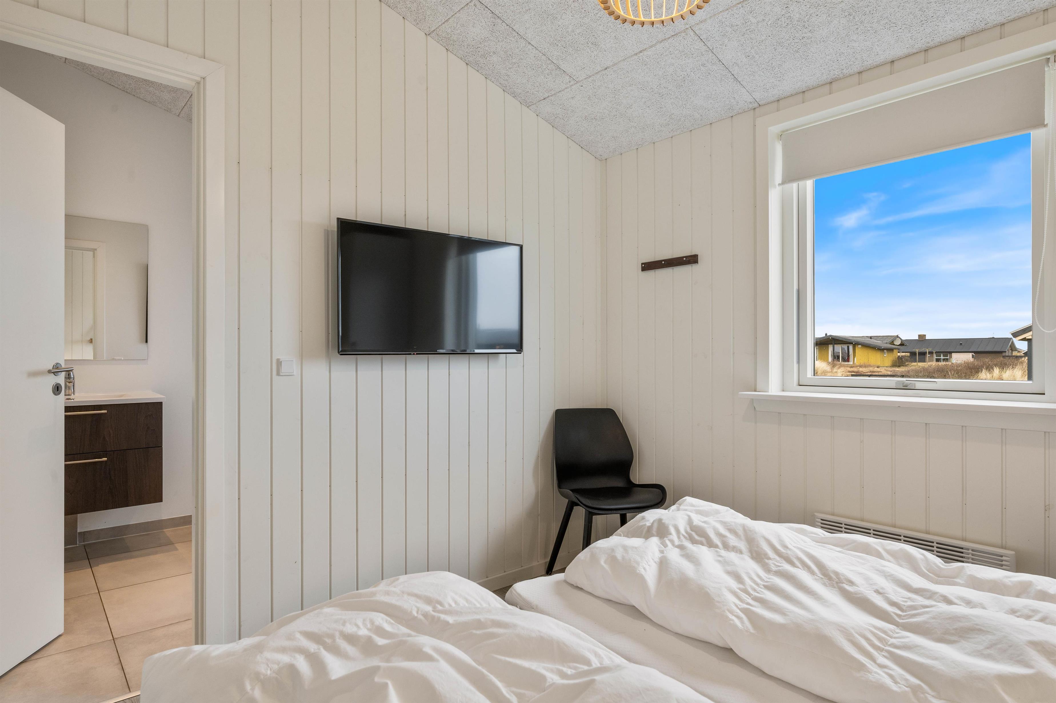 Feriehuset er udstyret med to fine badeværelser med stor bruseniche og gulvvarme. Fra det ene badeværelse har I tilmed adgang til jeres helt egen sauna – så mon ikke der skal bruges et par afslappende timer i varmen i løbet af ferien? Det andet badeværelse hører såmænd til det ene af de tre soveværelser – alle soveværelser er indrettet med komfortable dobbeltsenge og med god skabsplads.