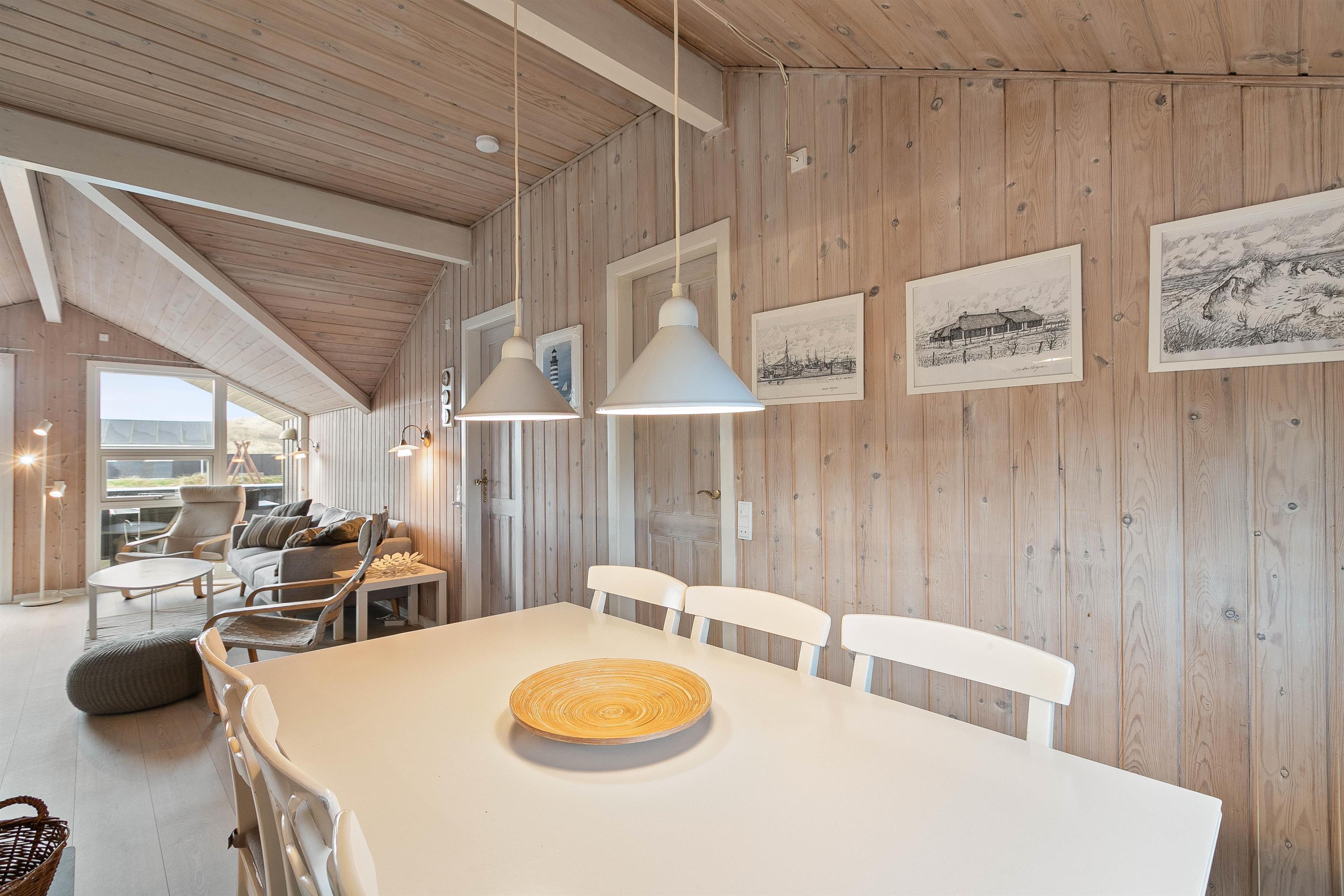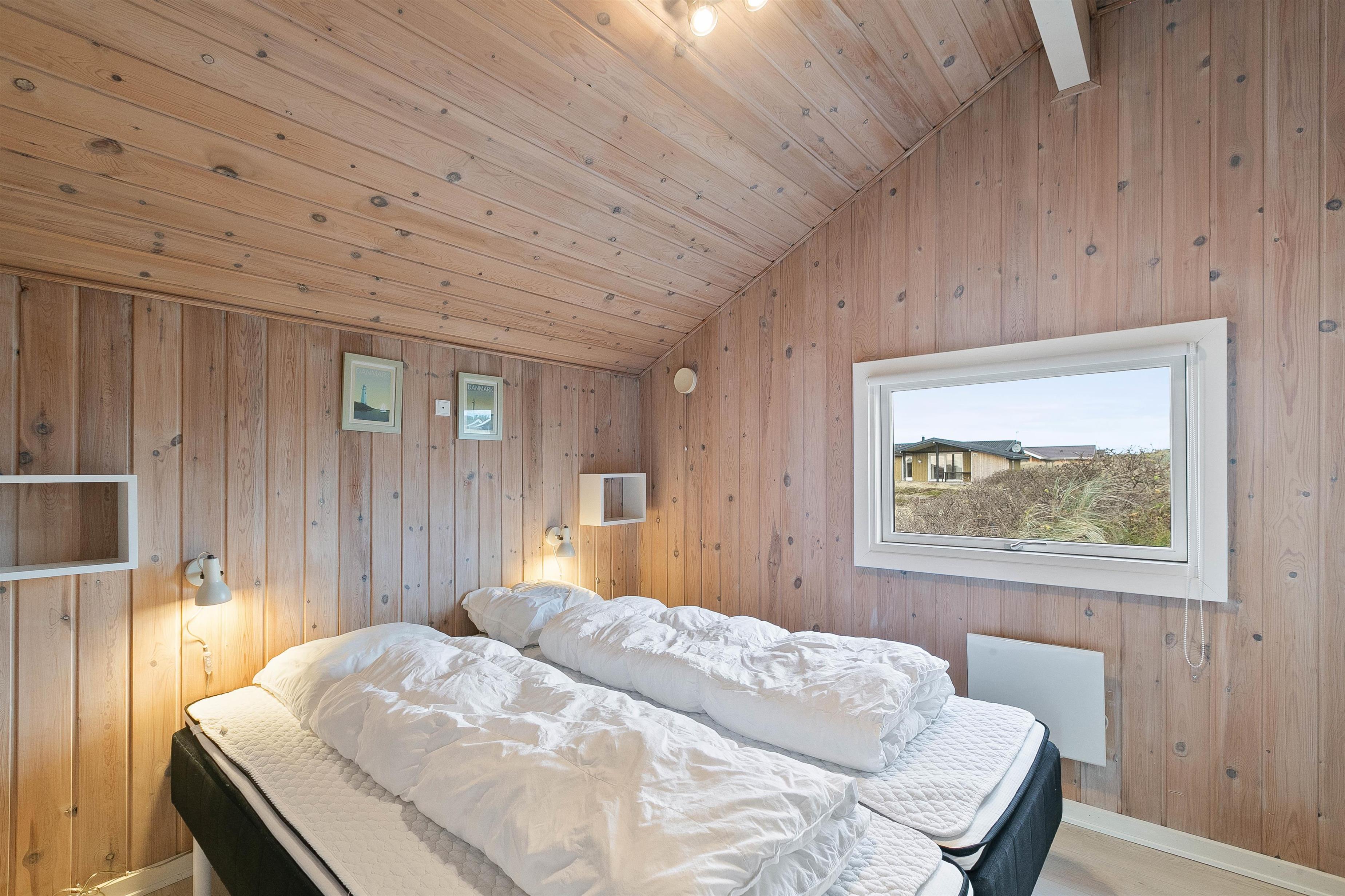 Der er plads til 6 personer her – fordelt på 3 soverum, hvoraf de to er med dobbeltsenge og et værelse er med enkeltsenge. I forbindelse med badeværelset finder I en sauna, hvor man rigtig kan blive gennemvarm - måske efter en lang dag i klitlandskabet og ved stranden.