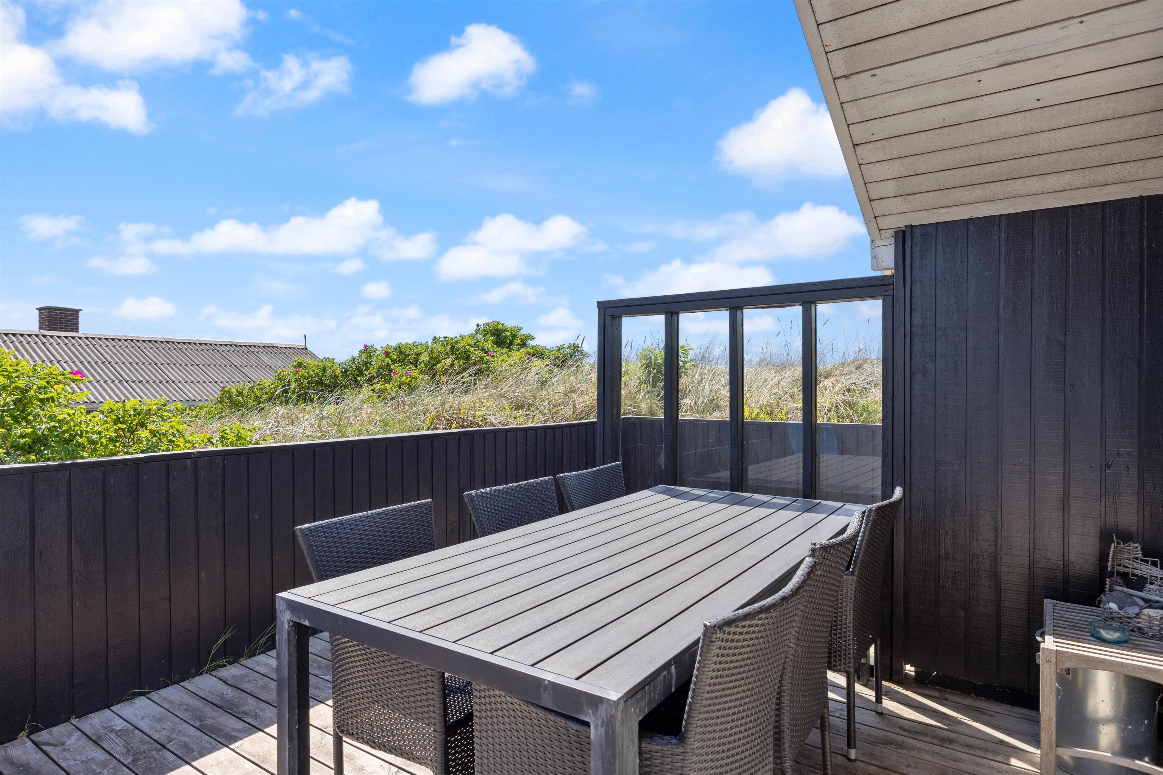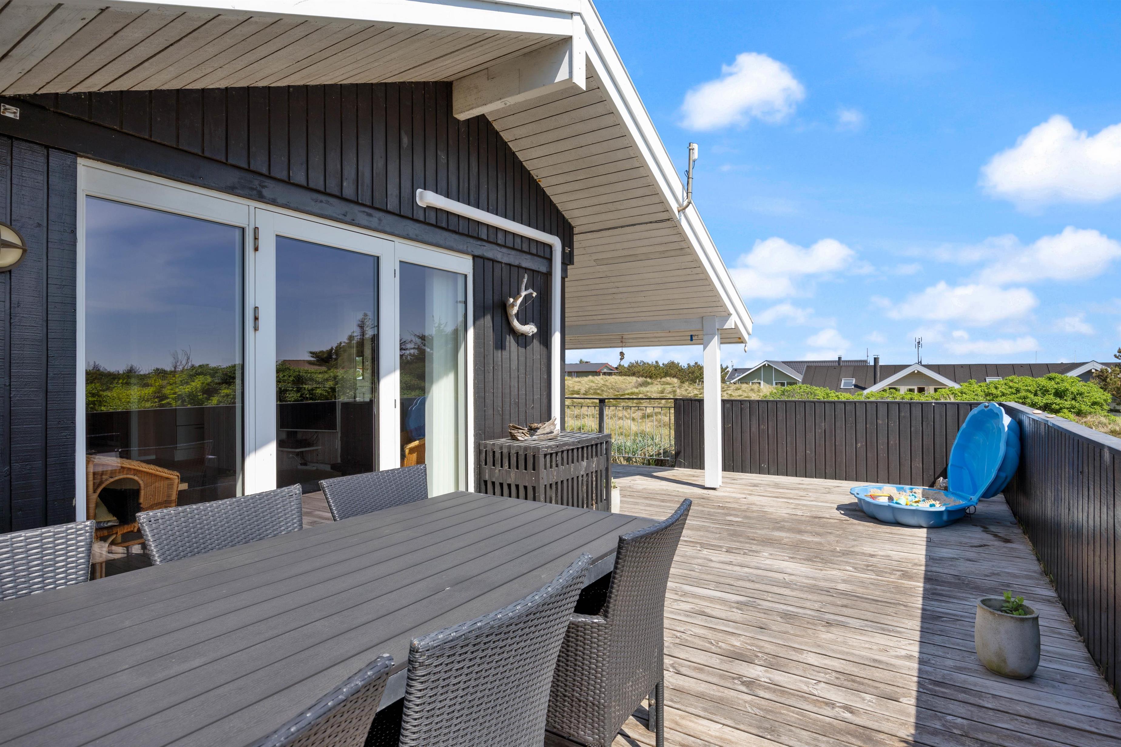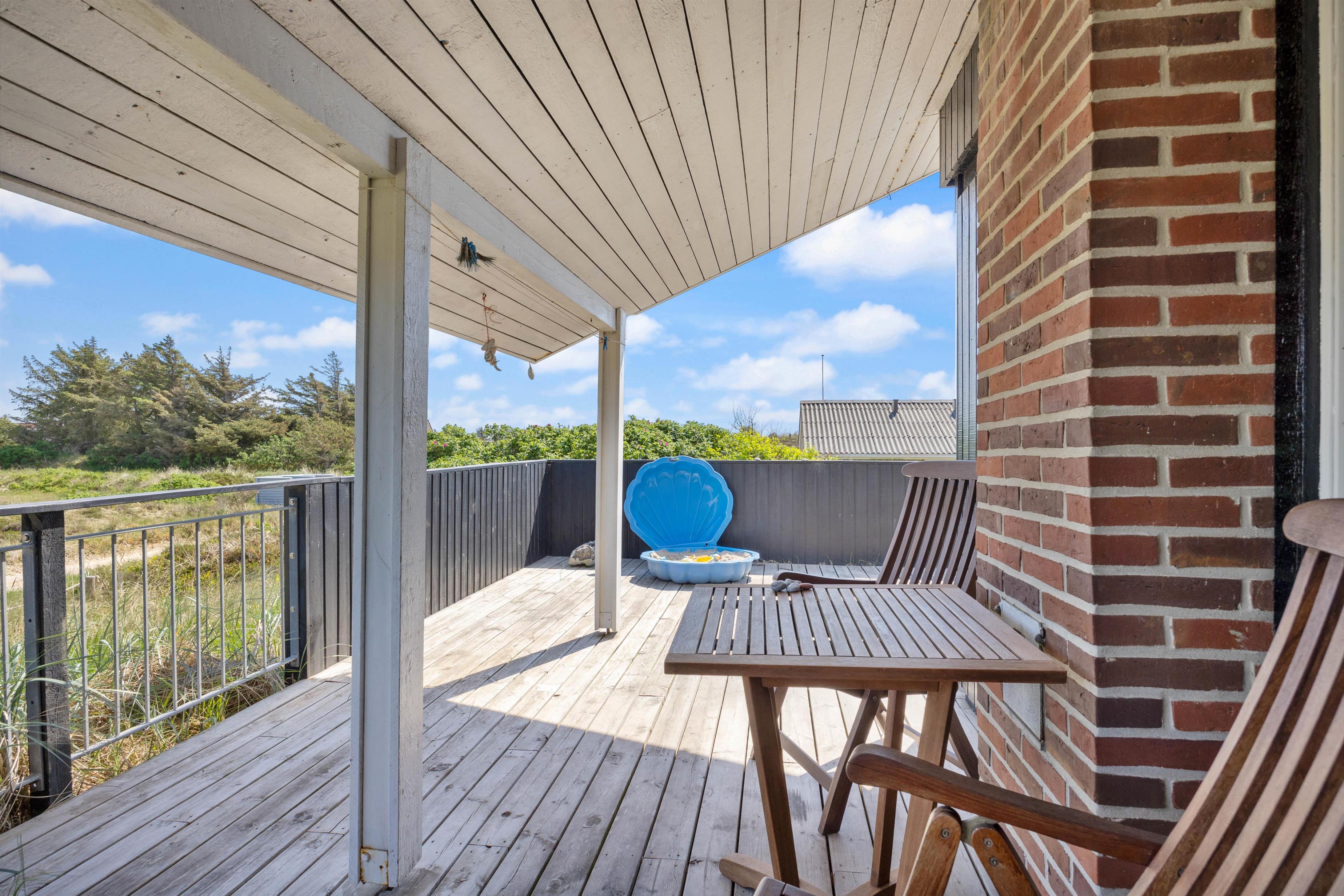 Gennem stuen når I den dejlige terrasse, hvor liggestolene står klar til at sørge for dagens afslapningssession. På den lukkede terrasse kan I også roligt lade børnene og hunden få fri leg uden at skulle holde dem under opsyn.