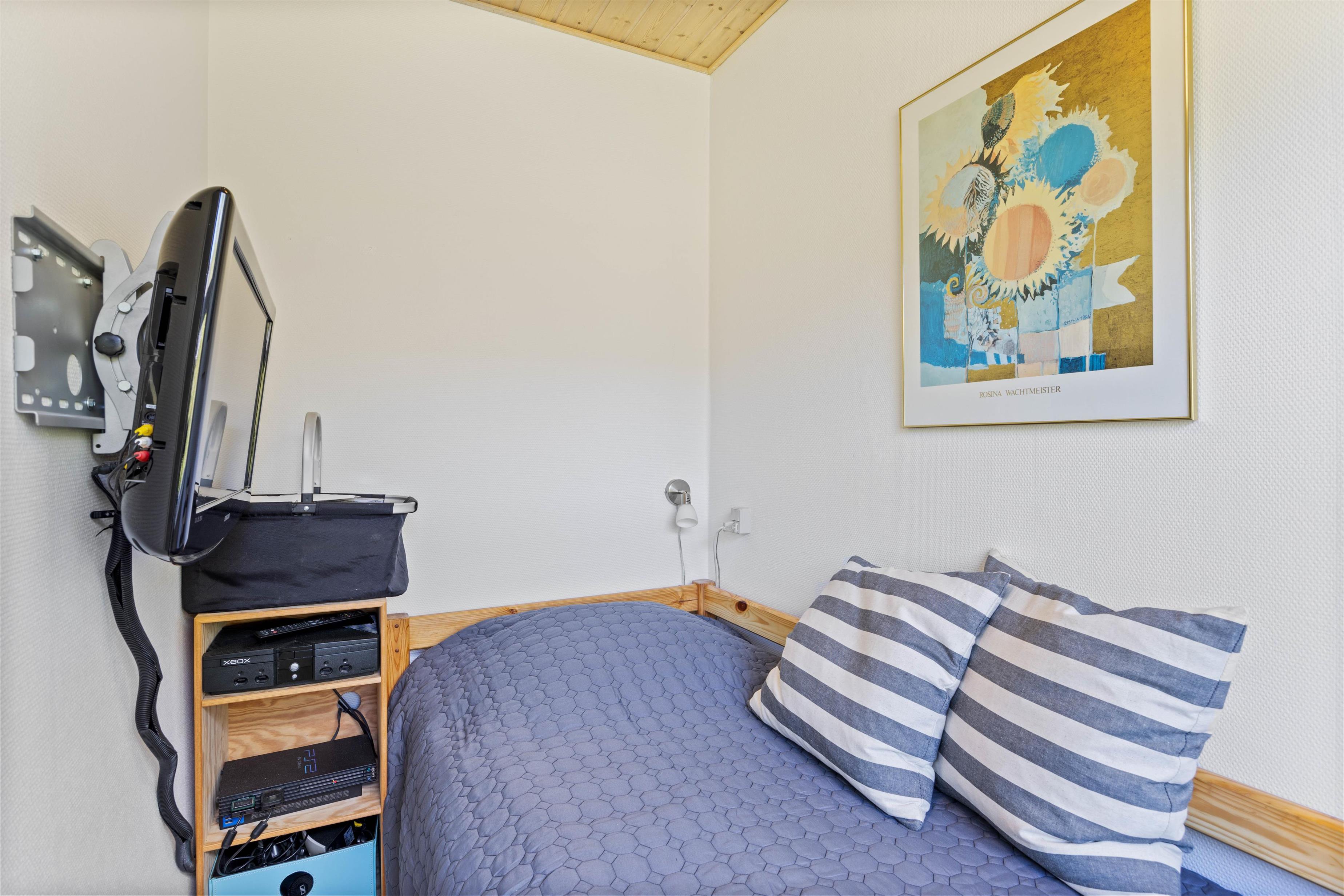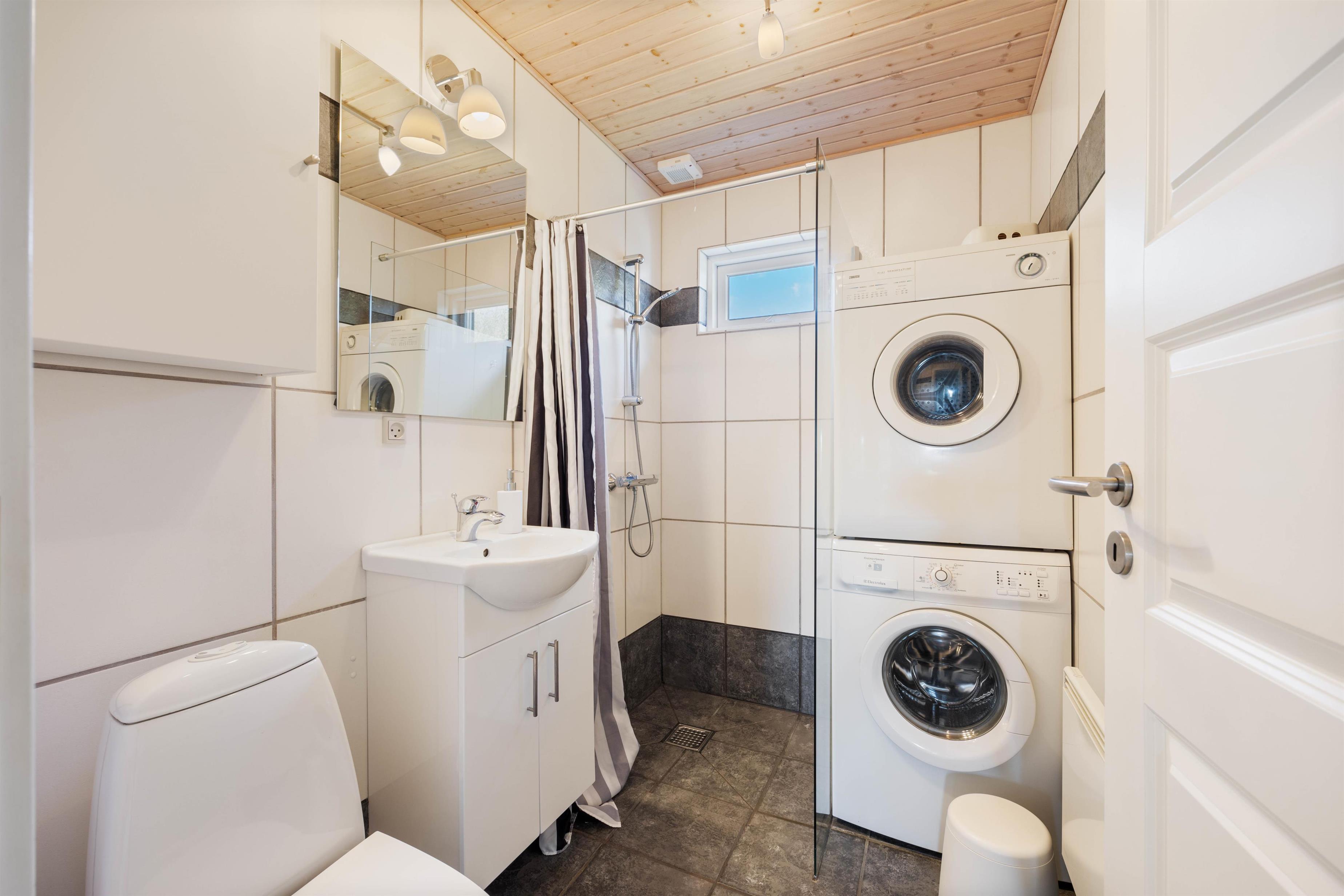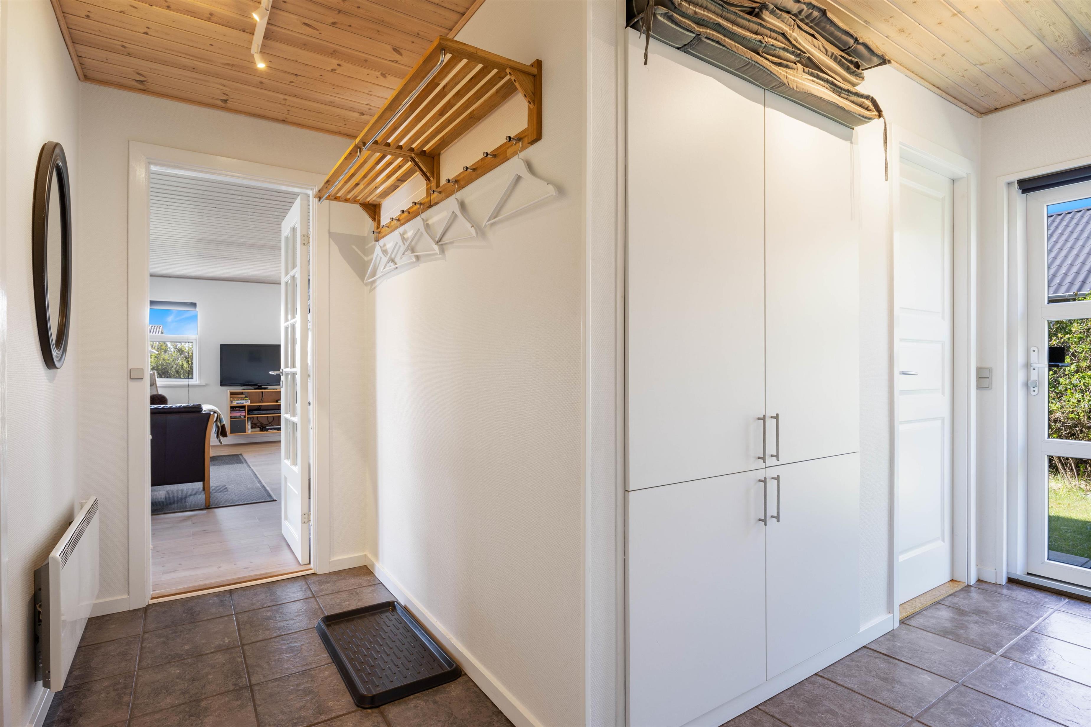 De 3 soveværelser indeholder 6 komfortable sovepladser med henholdsvis 1 dobbeltseng, 2 enkeltsenge og et par køjesenge. Her kan I hvile godt ud i den friske vesterhavsluft. I badeværelset med gulvvarme er også vaskemaskine og tørretumbler til rådighed. En energibesparende varmepumpe hjælper til med at holde forbruget på et fint niveau.