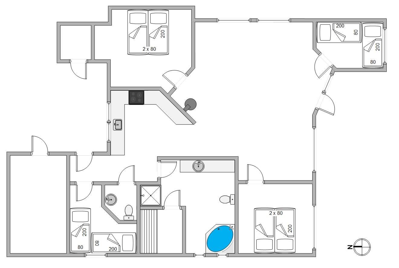 Dette sommerhus har en helt unik beliggenhed i sidste klitrække og med kun 50 meter til Vesterhavet. Der er 4 soveværelser i sommerhuset, 2 af værelserne har hver en dobbeltseng og de sidste 2 har hver 2 enkeltsenge.