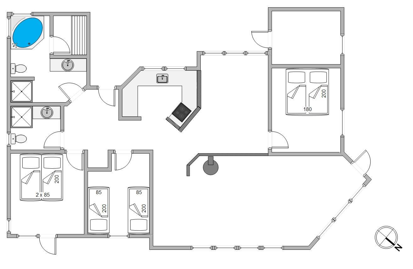 Her er det helt rigtige sommerhus til dig, der vil have masser af komfort i smukke omgivelser tæt på hav og strand. Feriehuset har plads til 6 personer i 3 soveværelser. Derudover er der ekstra madrasser på hemsen.