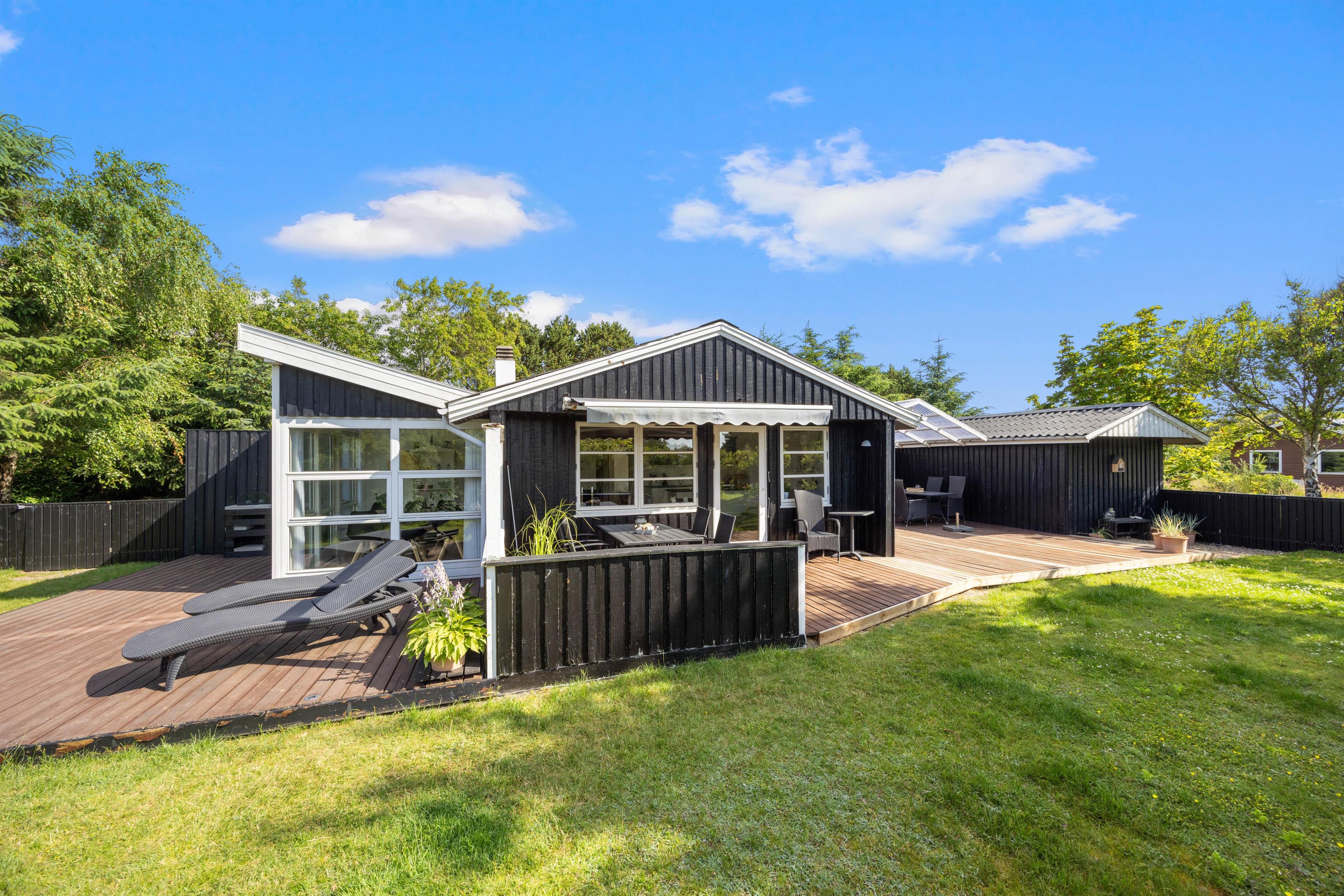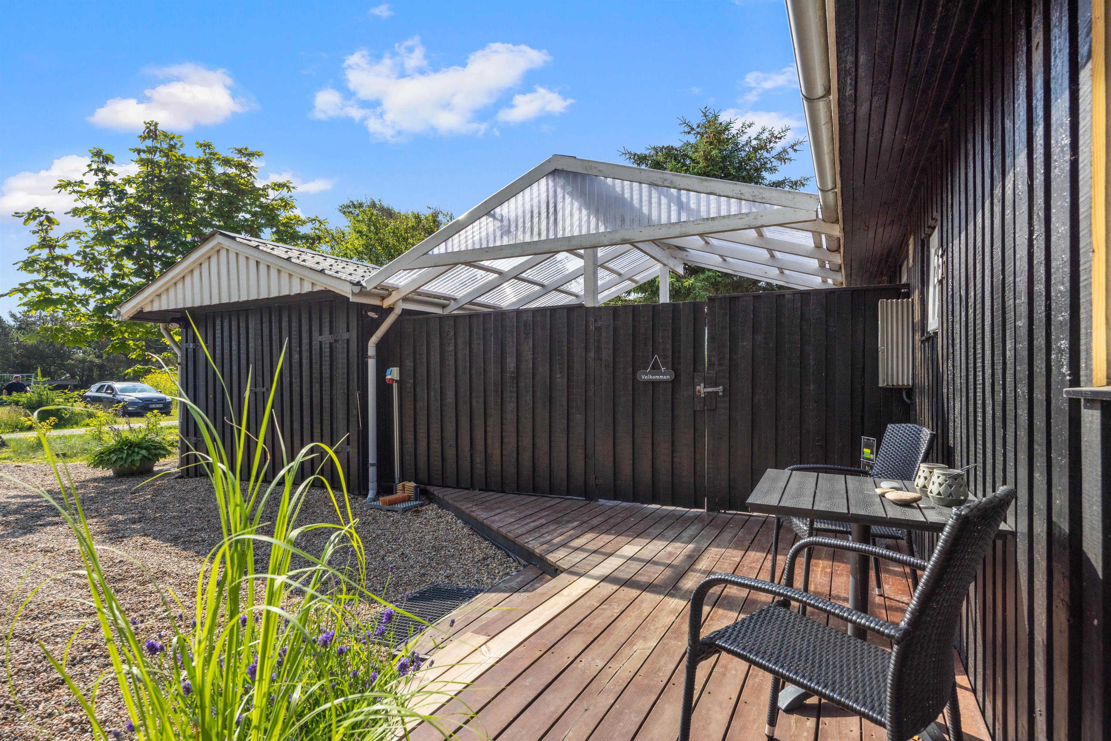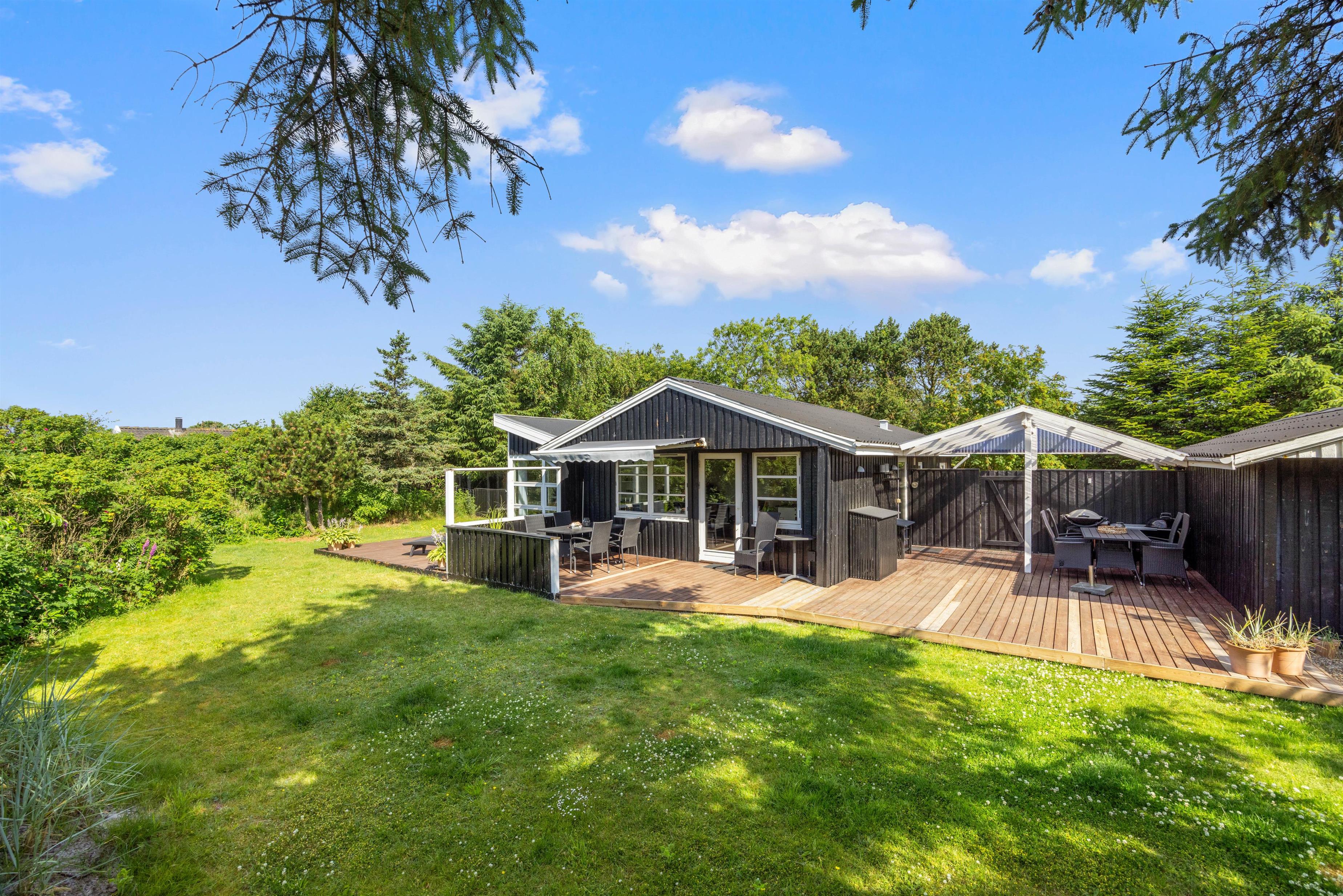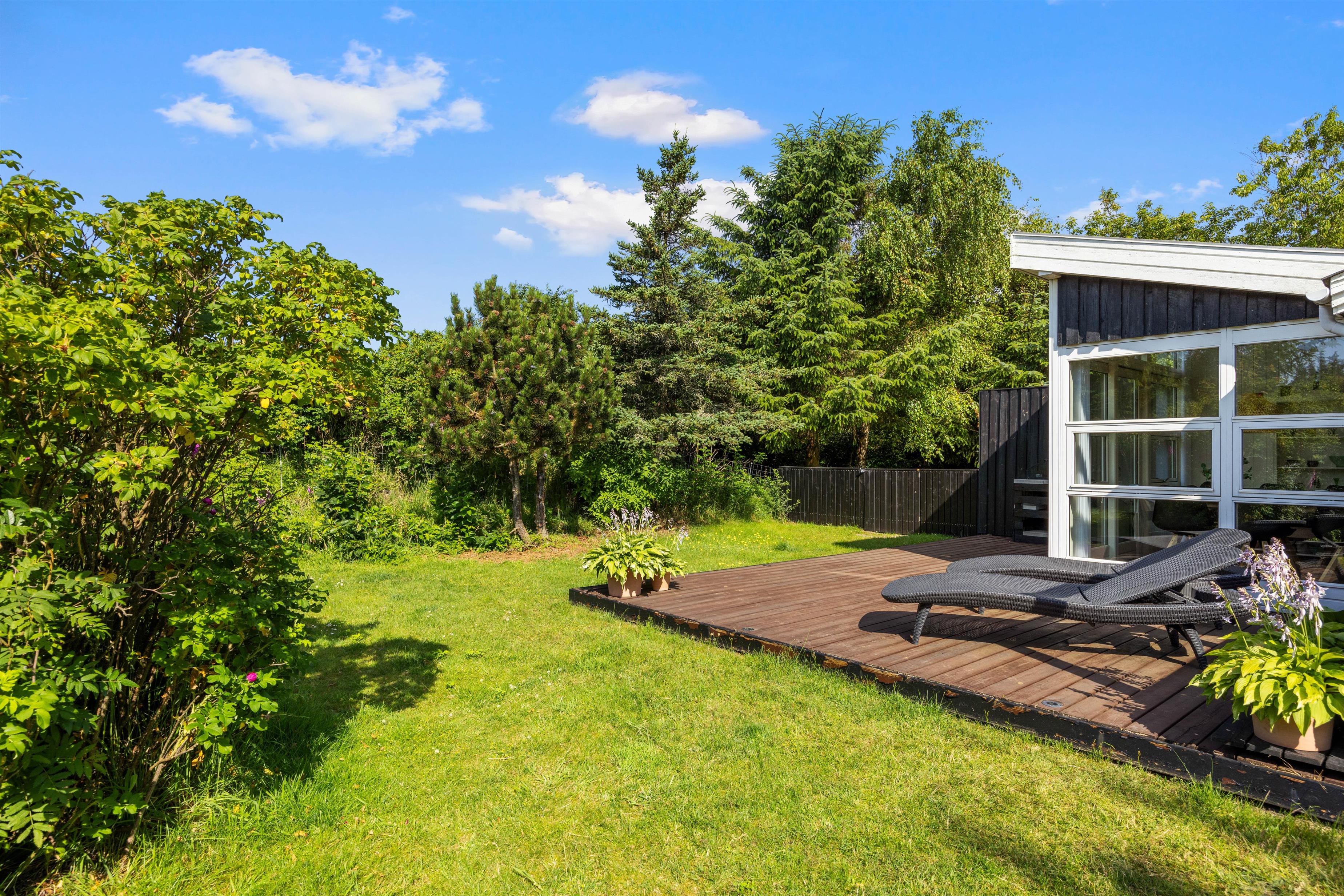 På den brede terrasse kan I nyde både vejret og naturen. Nyd solen i de komfortable liggestole, sid afskærmet i havemøblerne på en blæsende dag eller nyd aftensmaden i de sidste solstråler mod vest. Grunden er afskærmet, så I kan nyde privatlivet. Tænd op i grillen og forkæl hinanden med et lækkert grillmåltid sammen. Med cirka 1 kilometer til Vesterhavet er det oplagt med en gåtur dertil bagefter for at nyde solnedgangen. En solnedgang ved Vesterhavet er altid en oplevelse.