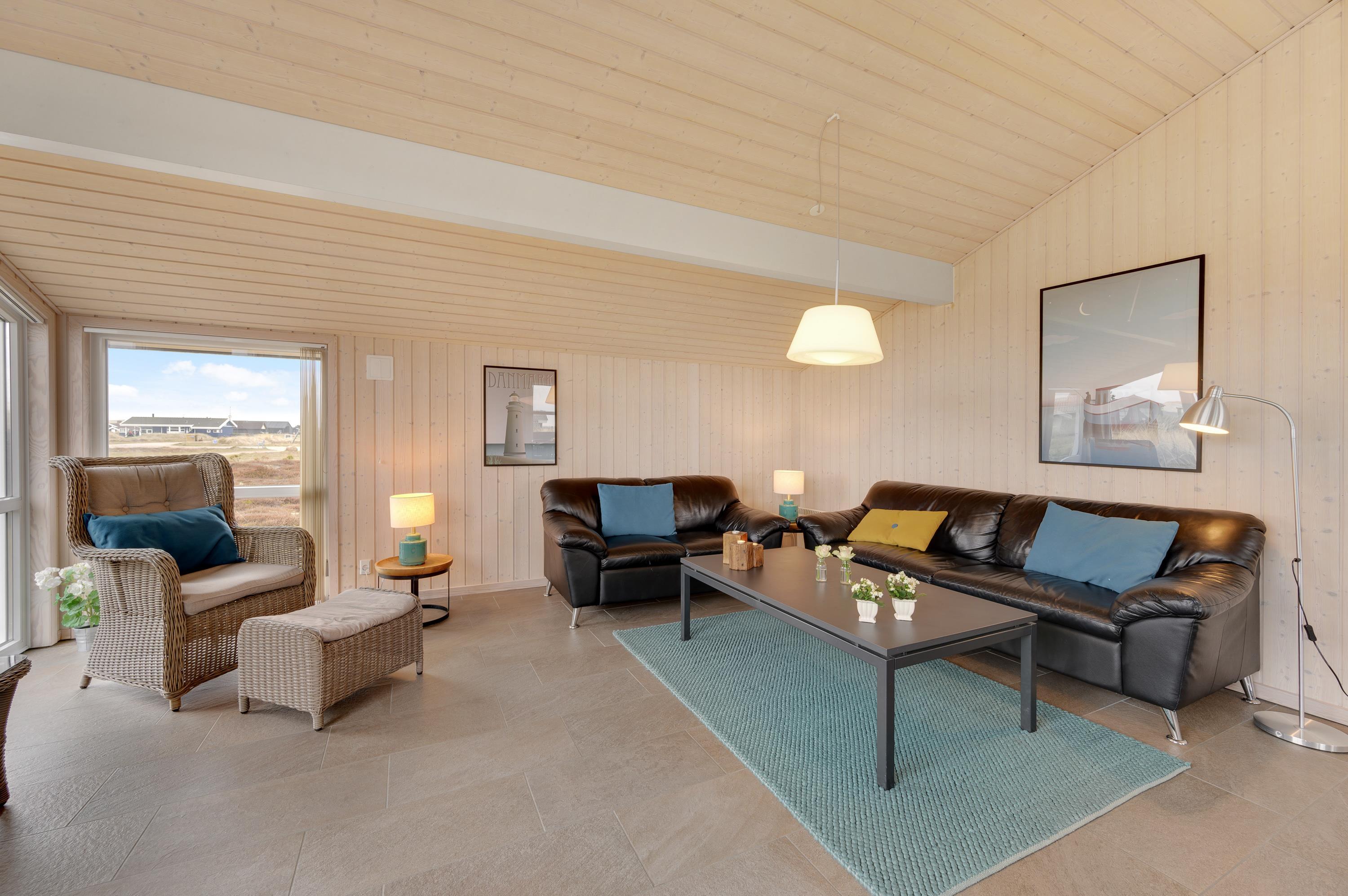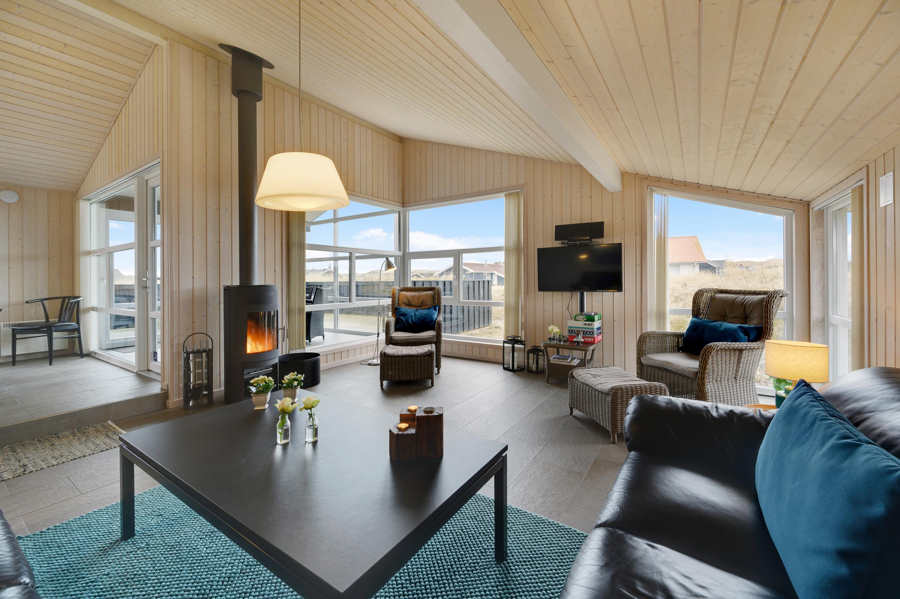 Dejligt rummeligt sommerhus med 2 fine badeværelser, sænket stue med brændeovn og klinkegulve med gulvvarme og plads til 6 personer i de 3 gode soveværelser. Sommerhuset har desuden en skøn udestue mod sydvest, hvor naturen med de flotte klitter kan nydes – også på en regnfuld dag. Vesterhavet ligger blot 300 meter fra sommerhuset, hvor I kan nyde dagen med fødderne i sandet.