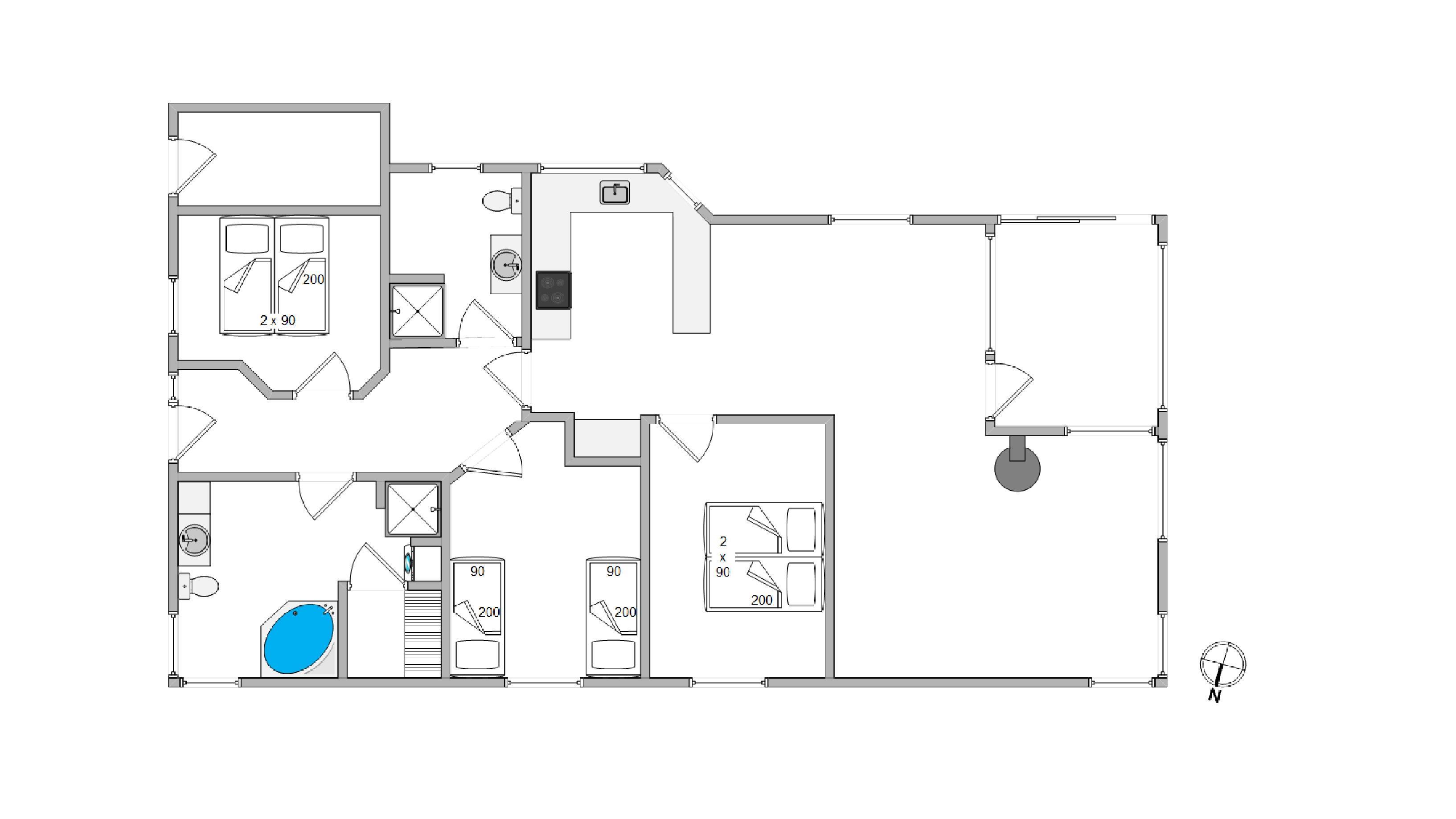 Hold en skøn ferie i dette dejlige sommerhus, som er opført i 2013. Nyd naturen året rundt i den sydvestvendte udestue, eller hyg dig foran brændeovnen med en god bog. Her er plads til i alt 6 personer i 3 rigtig gode soveværelser med gode boksmadrasser. De 2 flotte badeværelser har bruseniche og gulvvarme. I det store badeværelse er der desuden et boblebad til 2 personer og adgang til husets sauna.