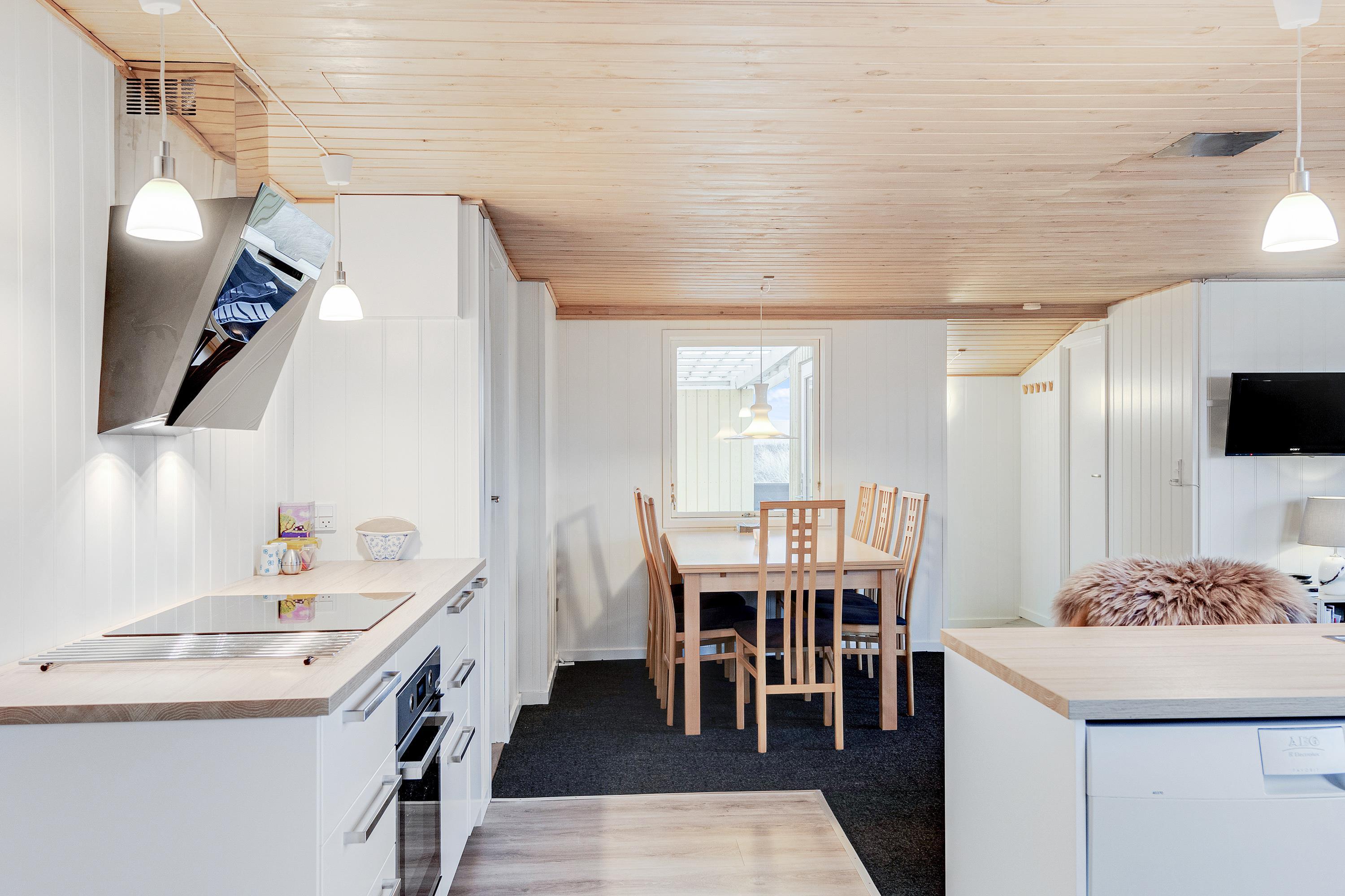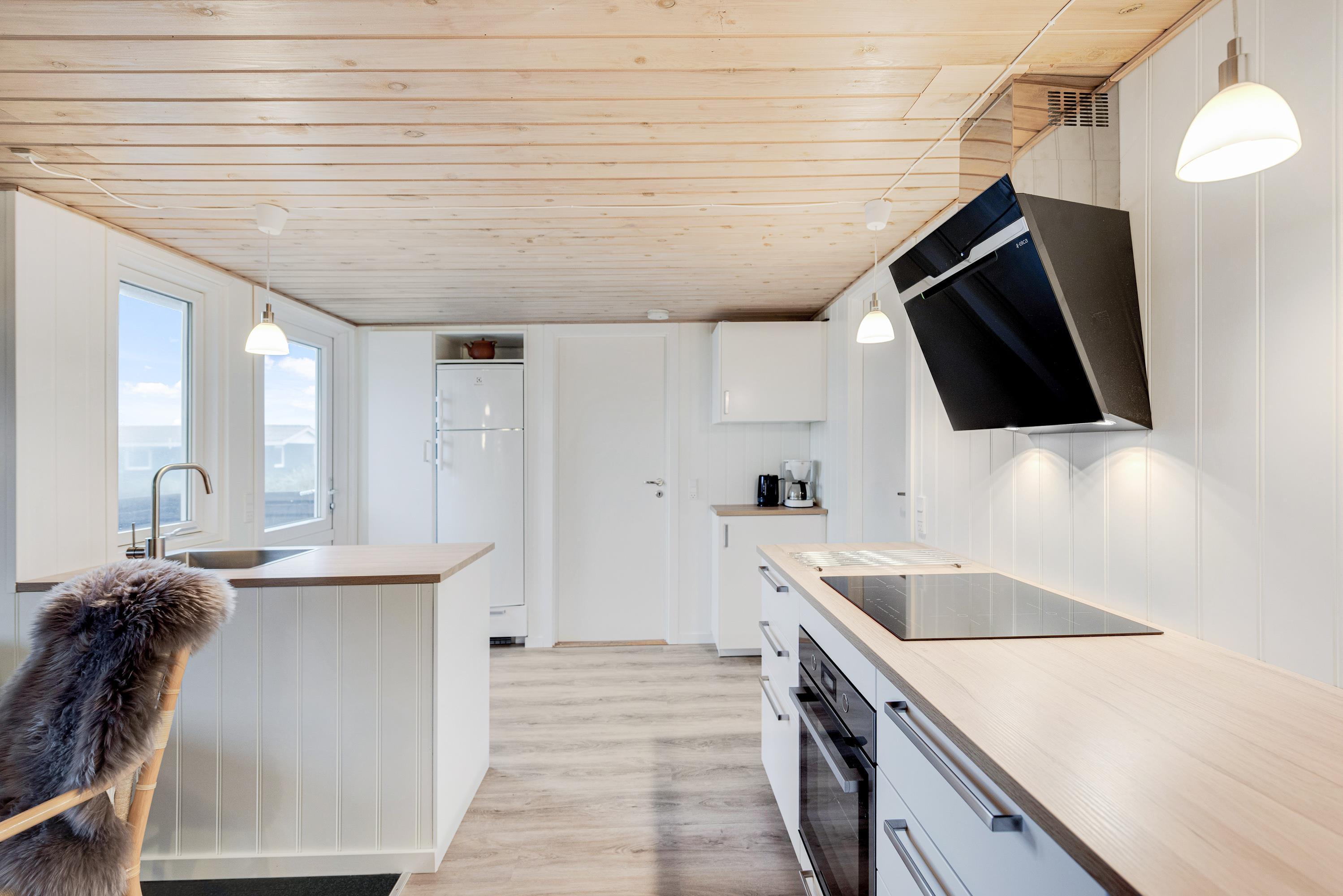 Sommerhuset på Rauhesvej 44 har plads til 6 personer. Stuen er hyggeligt indrettet med gode møbler og gulvtæpper. Her kan I hygge jer i sofagruppen omkring brændeovnen, imens I ser en film eller læser en god bog. I det åbne køkken kan I tilberede lækre måltider uden at undvære samværet med resten af gæsterne, herfra er også udgang til 2 lukkede terrasser. Især lystfiskere vil blive glade for den separate fryser på 100 liter. Ved spisebordet kan I nyde alt, hvad køkkenet frembringer af lette-, lokale- eller gourmetretter.