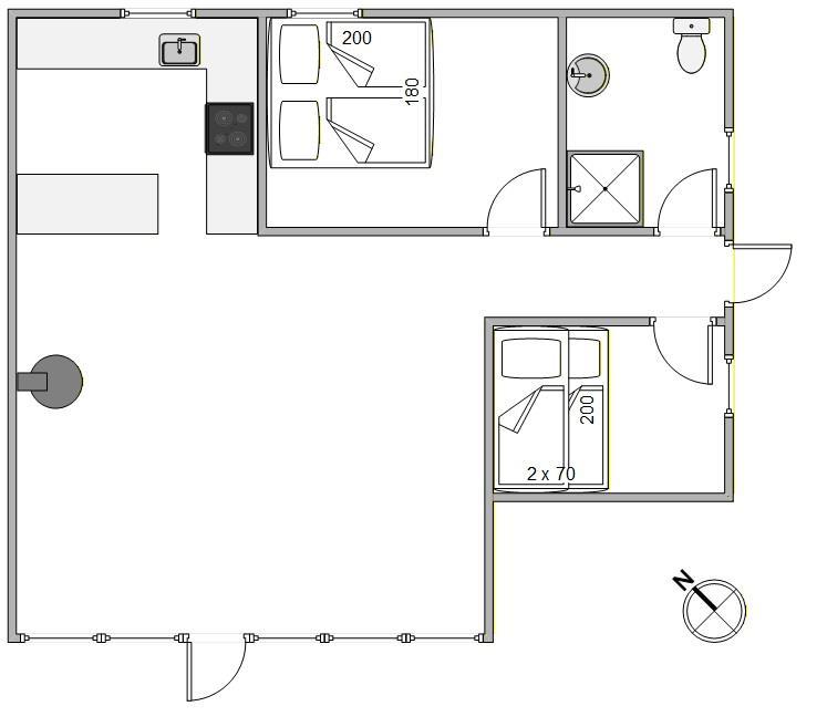 Med et boligareal på 55 m² har dette sommerhus i Bjerregård 2 hyggelige soveværelser, der giver den ideelle plads til din familie eller et vennepar. Det ene soveværelse er indrettet med en komfortabel dobbeltseng, mens det andet soveværelse har en praktisk køjeseng.