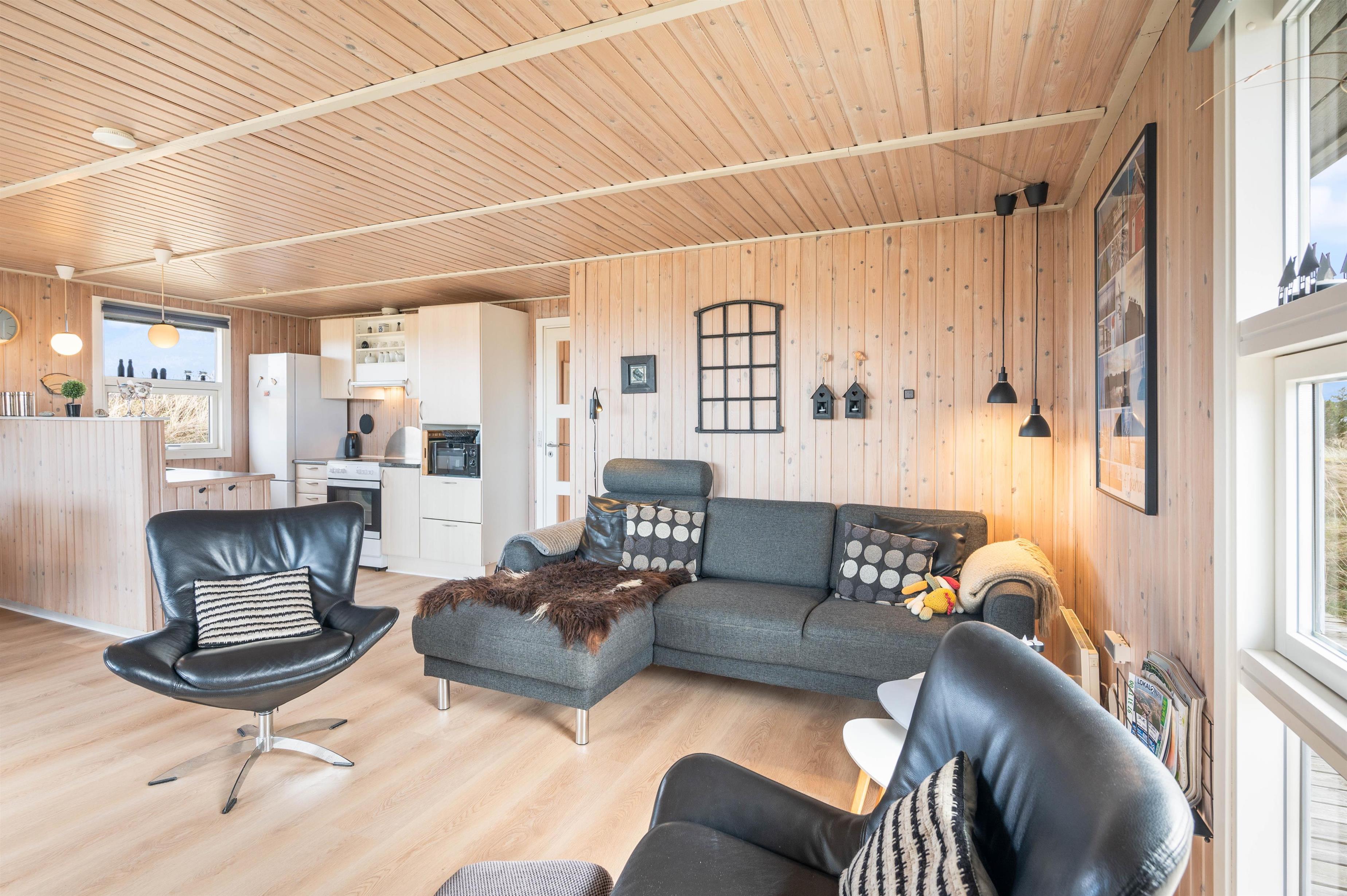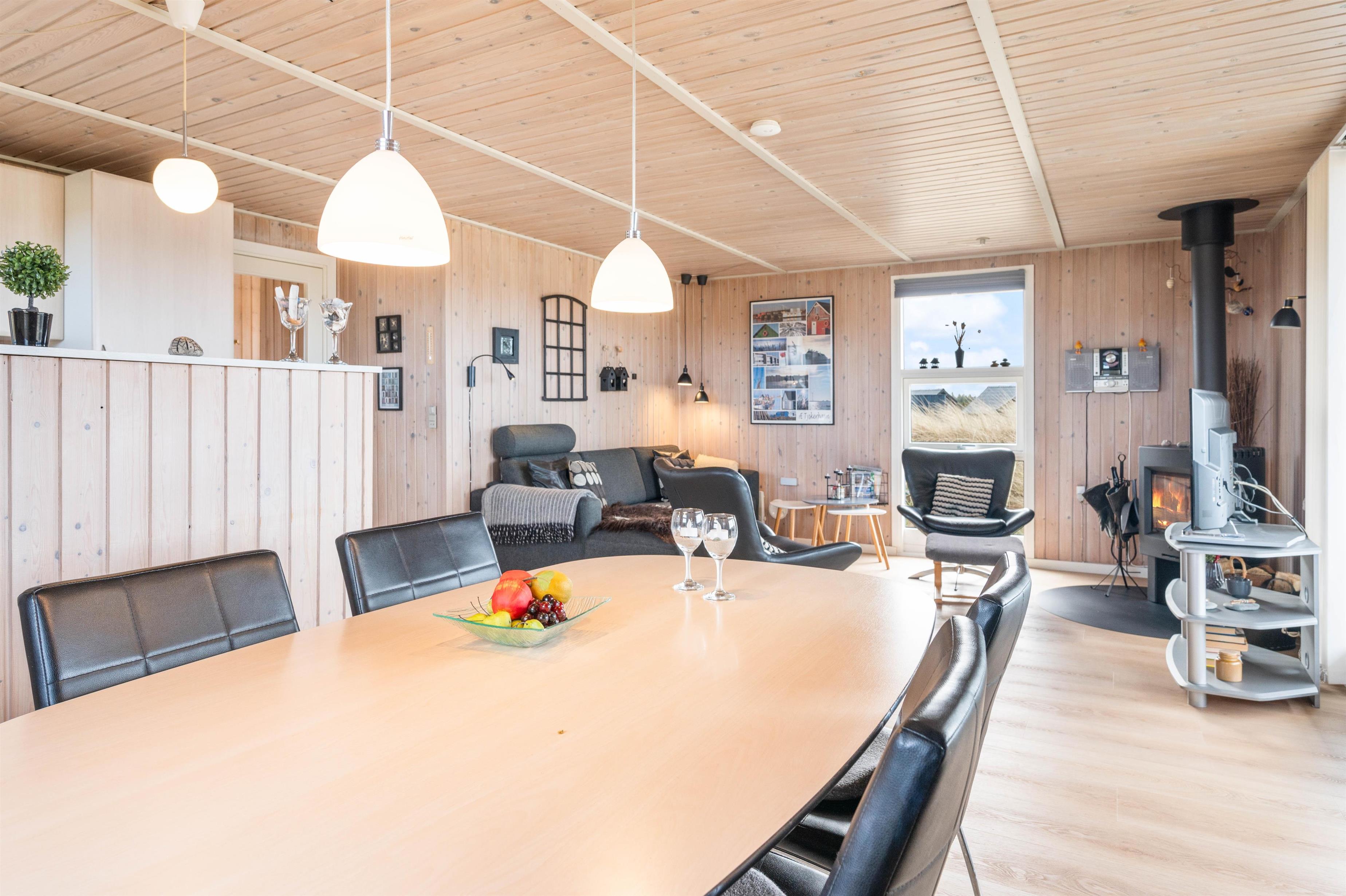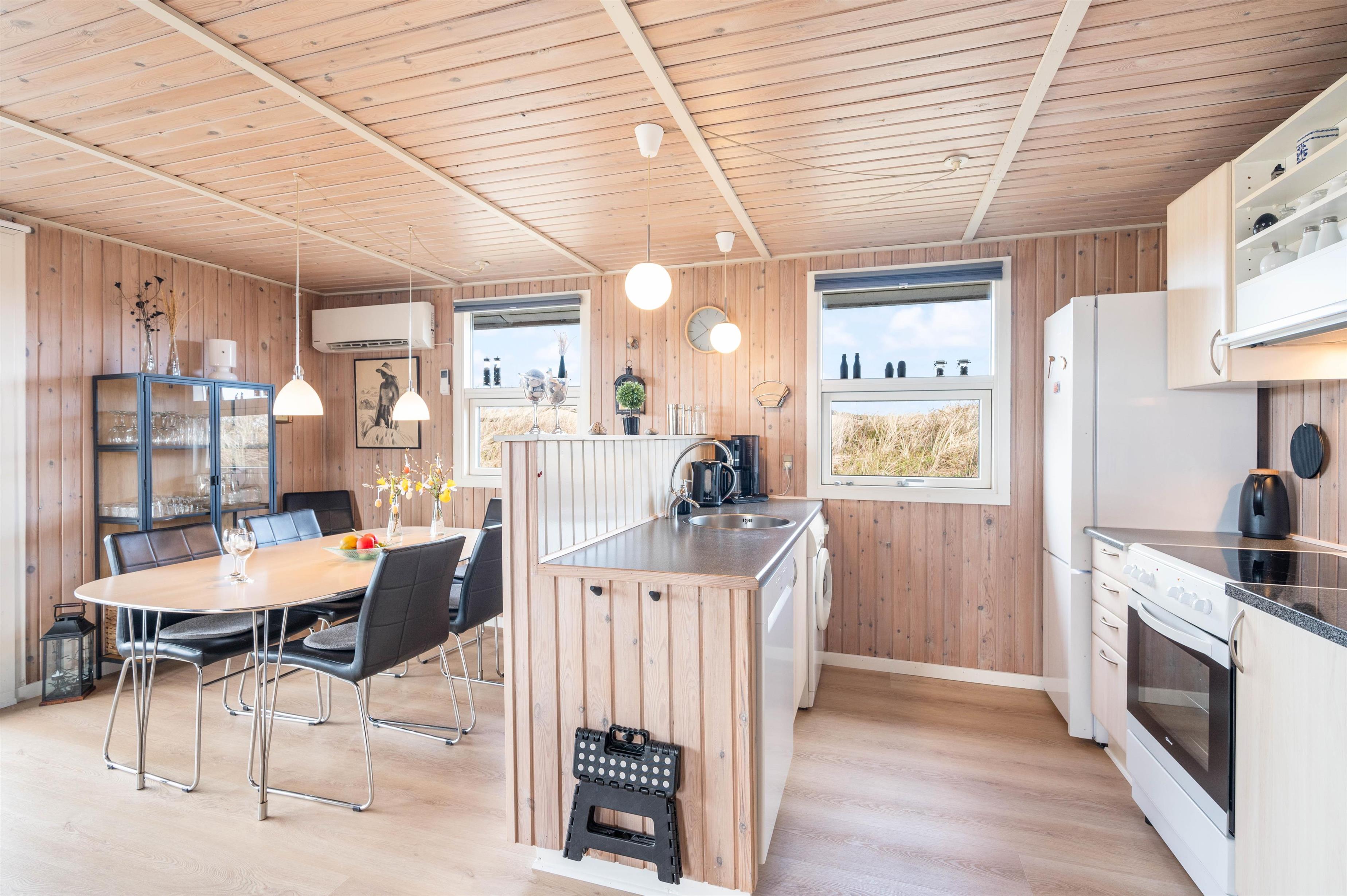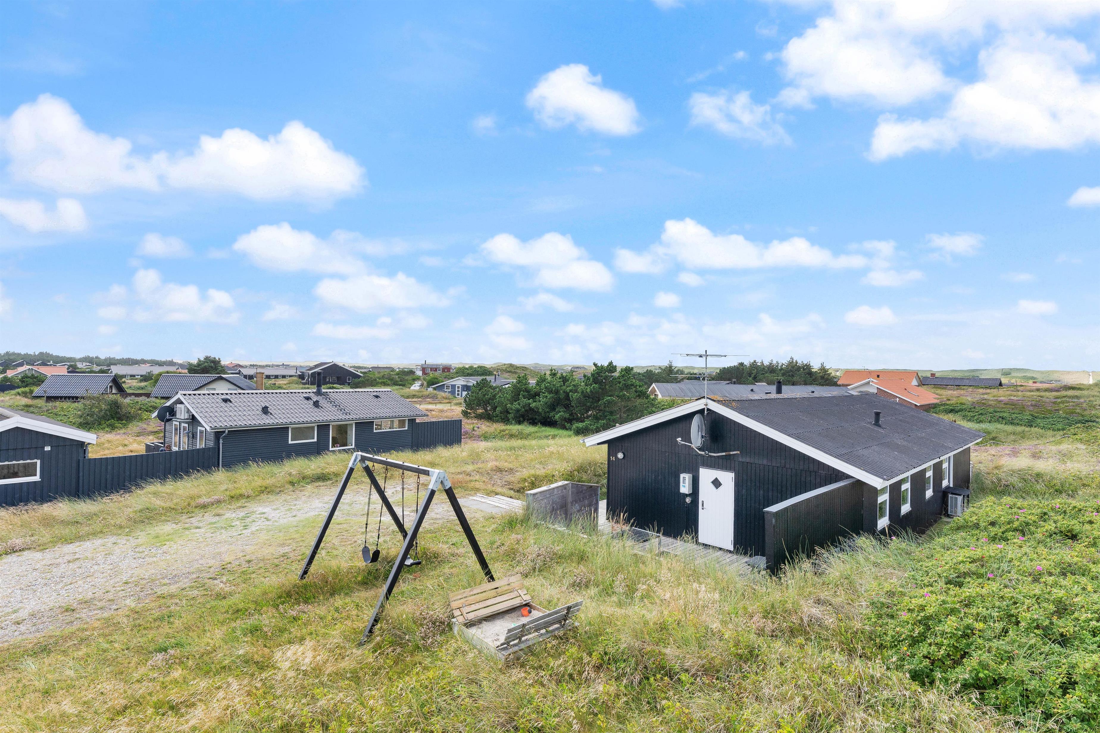 Der er terrasse mod øst, mod syd og mod vest, hvilket giver mulighed for at opholde jer udenfor det meste af dagen. Den delvist overdækkede terrasse mod vest er ideel til hyggelige grillaftener. Herfra er der skøn udsigt, der indbyder til en dejlig gåtur igennem klitlandskabet til strand og hav.