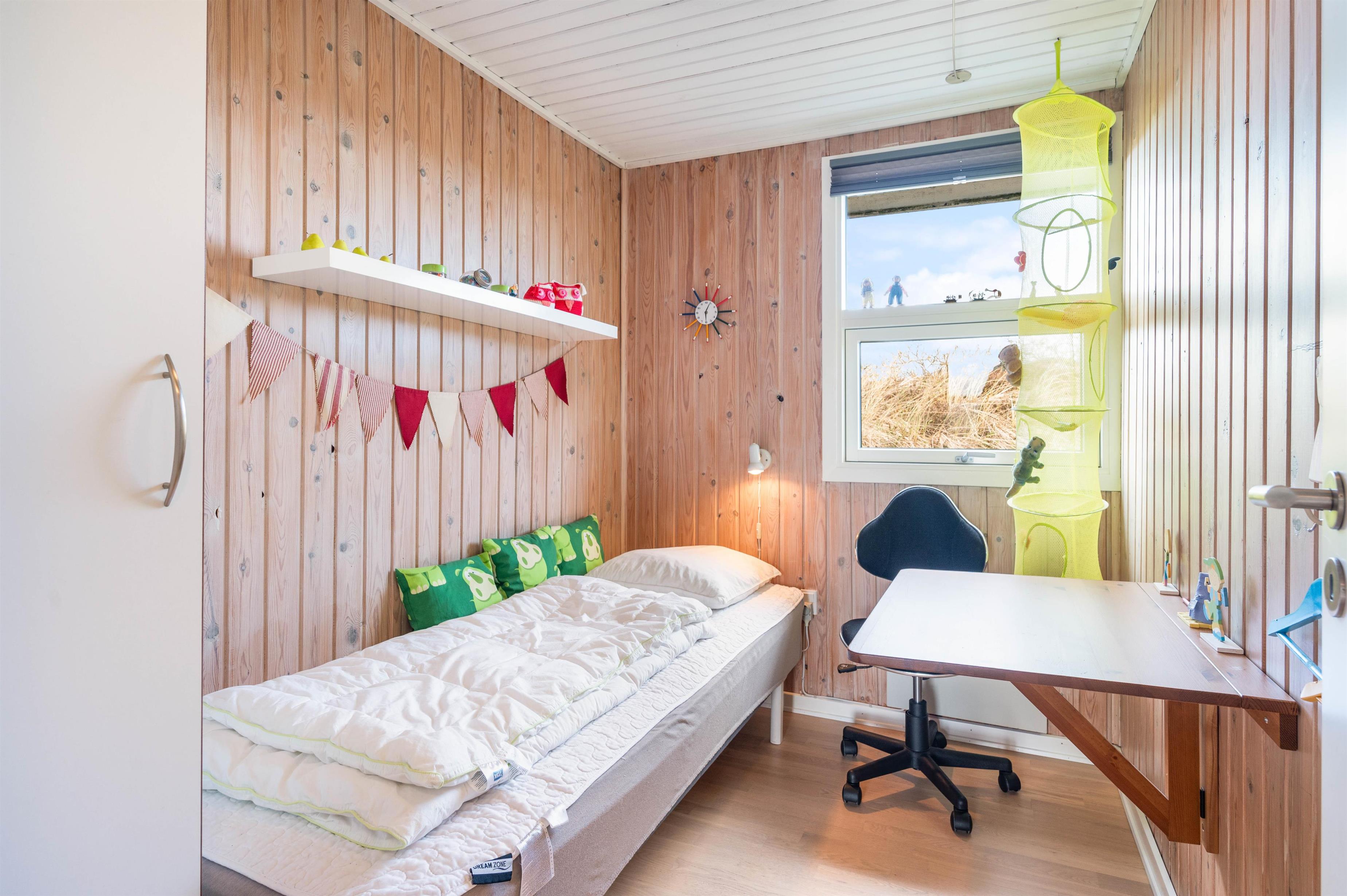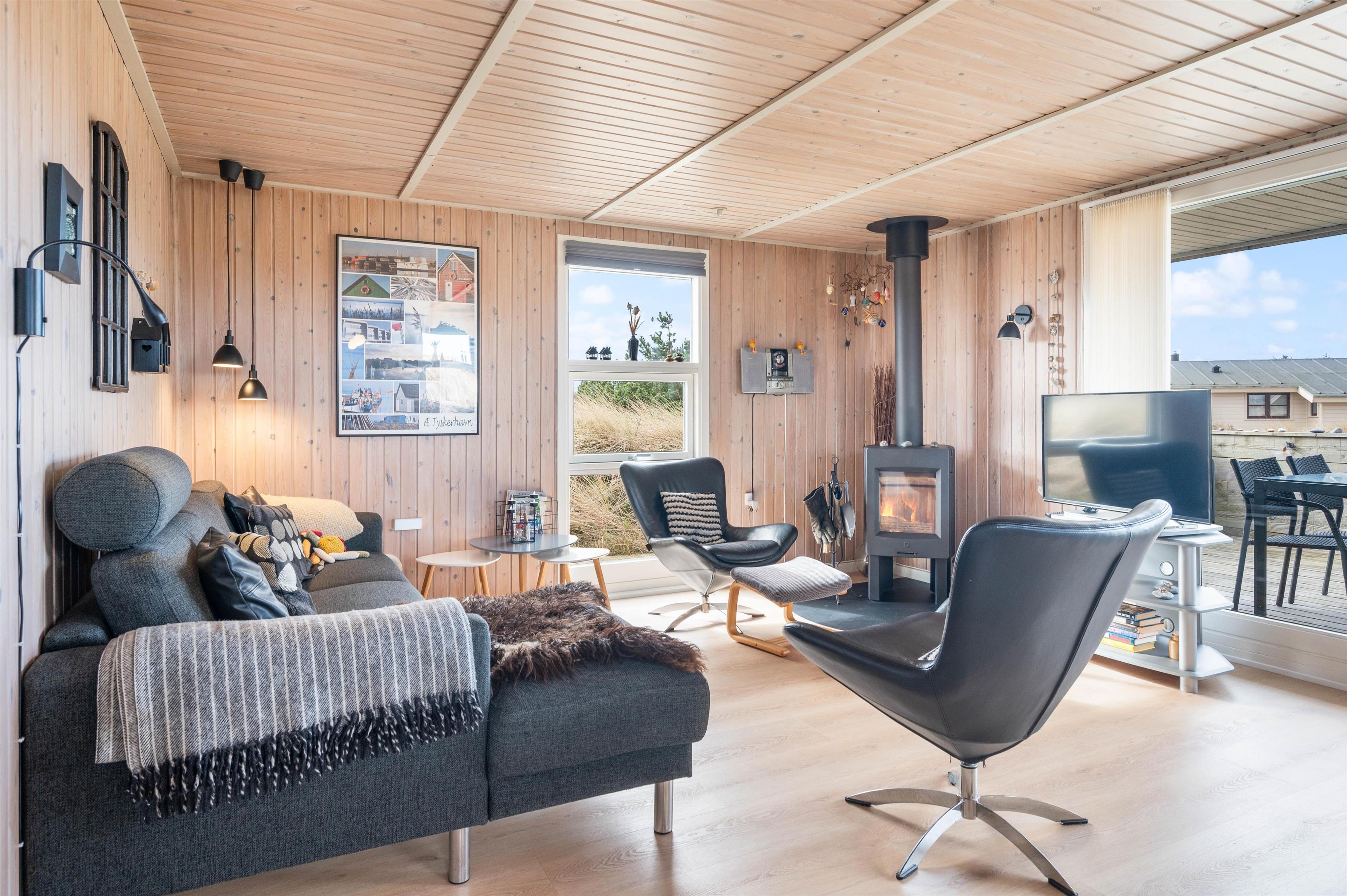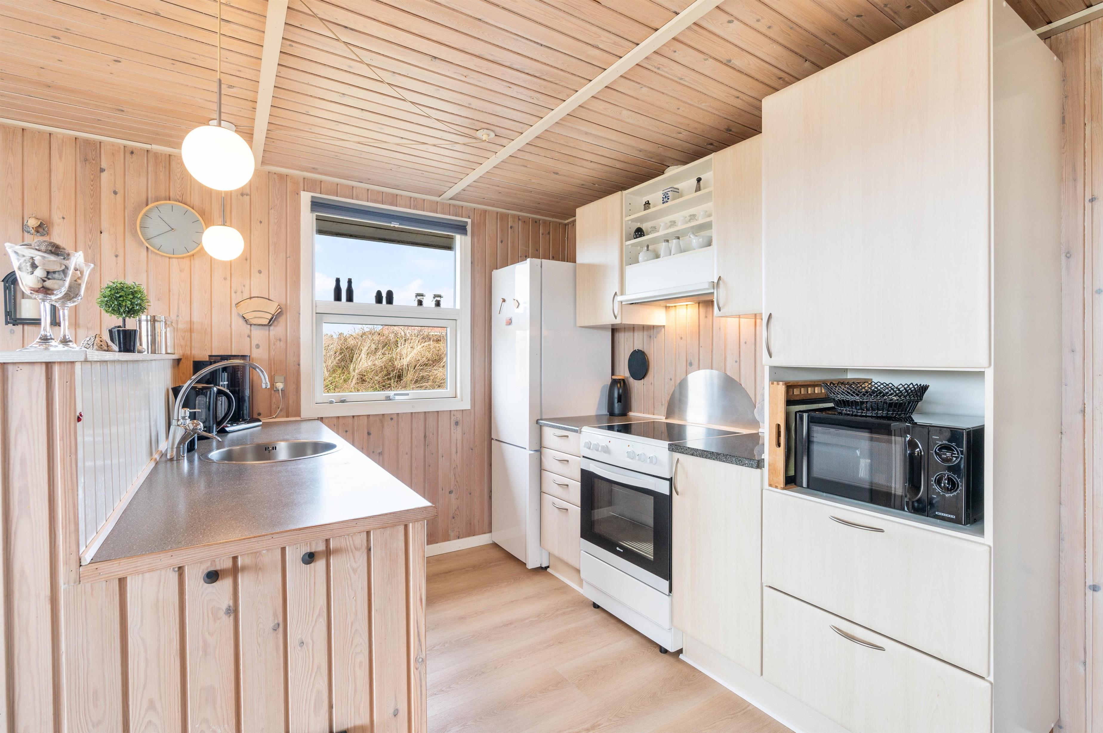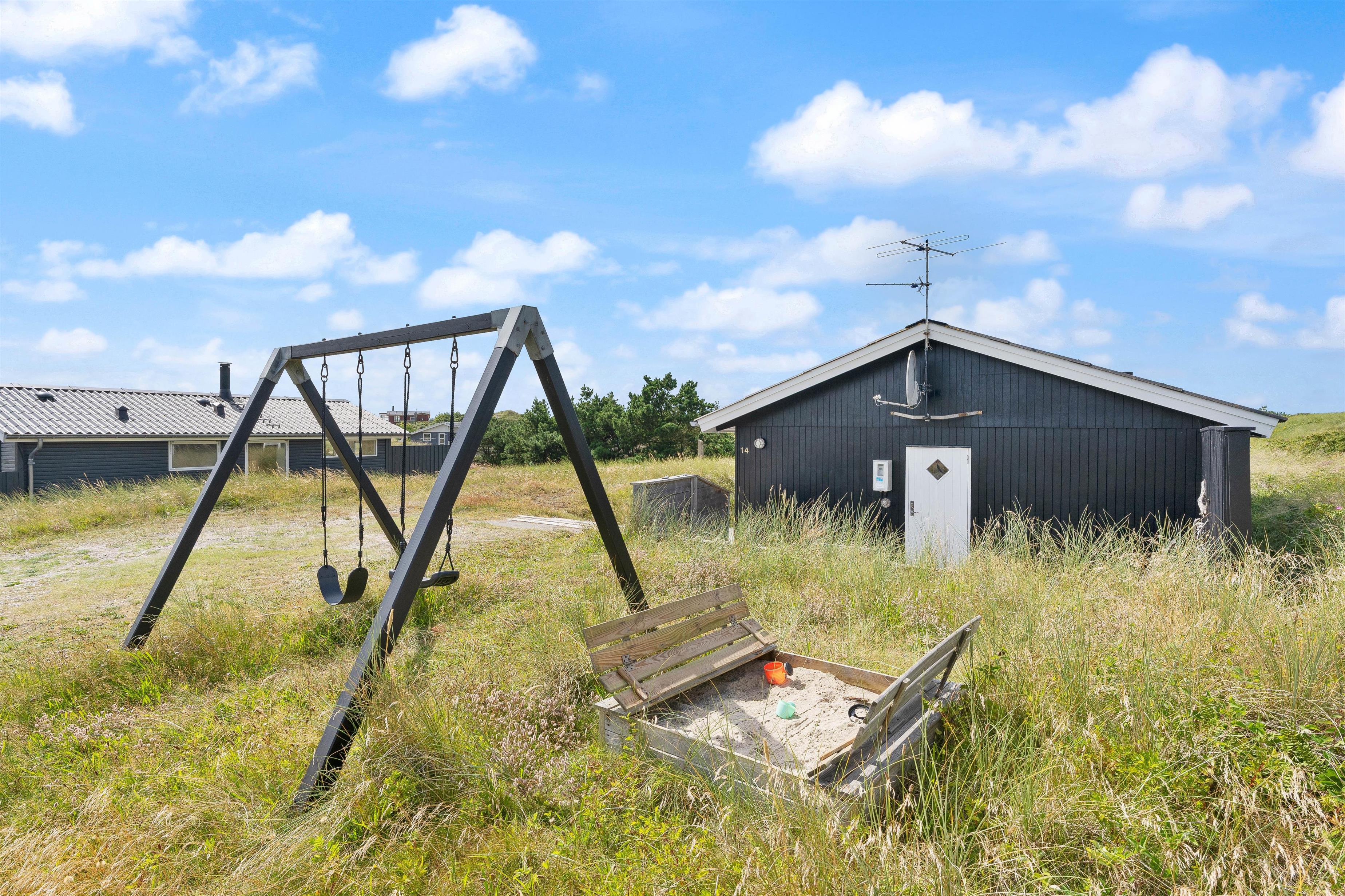 Der er terrasse mod øst, mod syd og mod vest, hvilket giver mulighed for at opholde jer udenfor det meste af dagen. Den delvist overdækkede terrasse mod vest er ideel til hyggelige grillaftener. Herfra er der skøn udsigt, der indbyder til en dejlig gåtur igennem klitlandskabet til strand og hav.