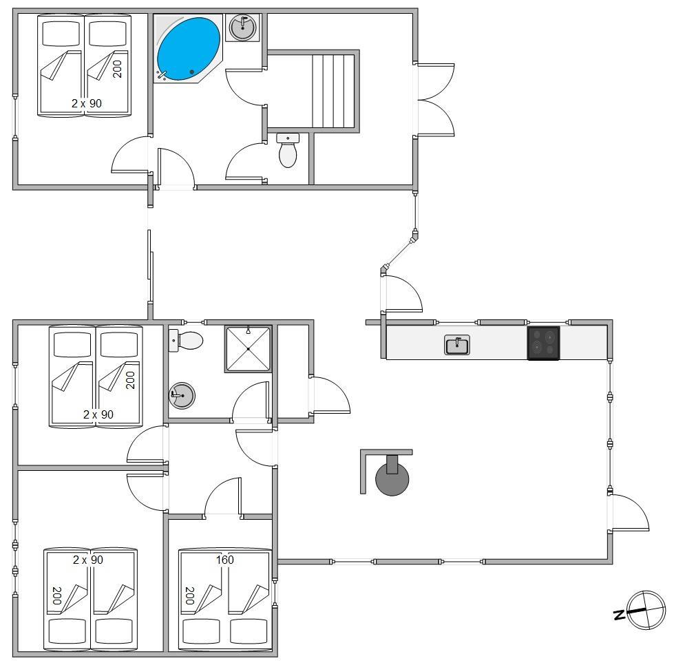 Huset råder over hele to badeværelser, hvor der i det ene er spa og sauna. Det er perfekt afslapning efter en rask tur til vandet. De 8 sovepladser er fordelt i 4 soverum med dobbeltsenge.