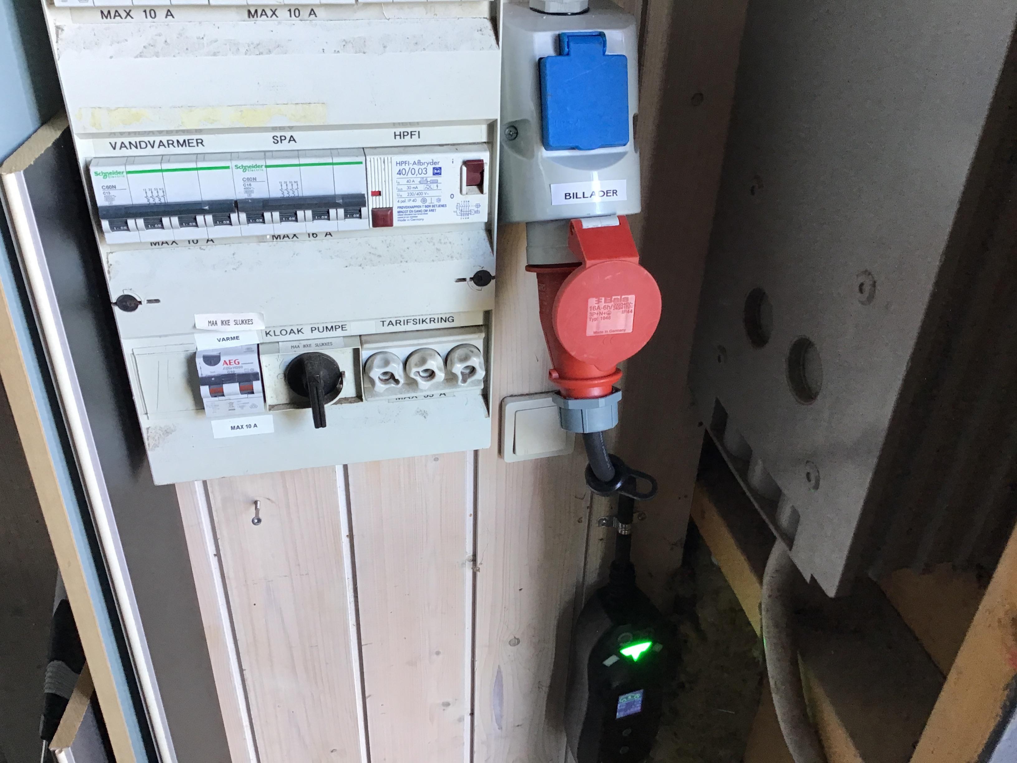 Lademuligheden for el bilen er et CEE kombistik (kraftstik), medbring eget ladekabel.